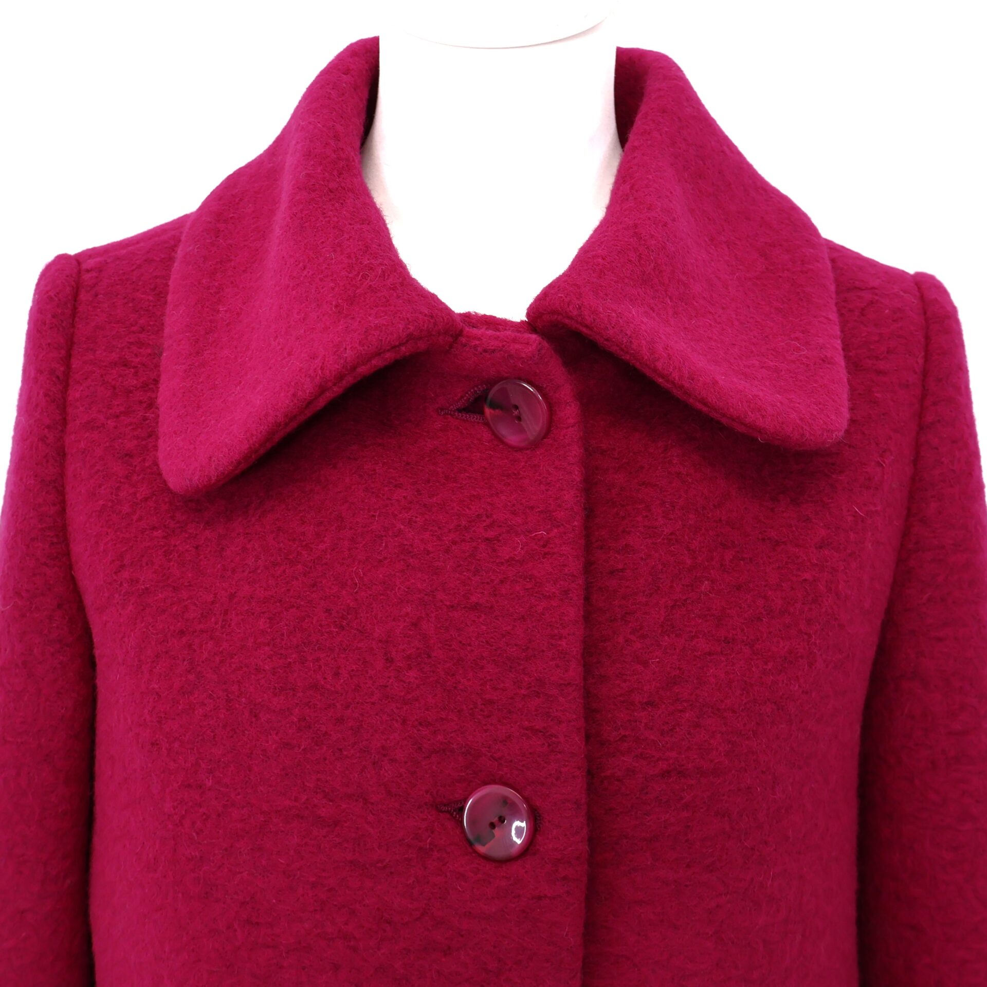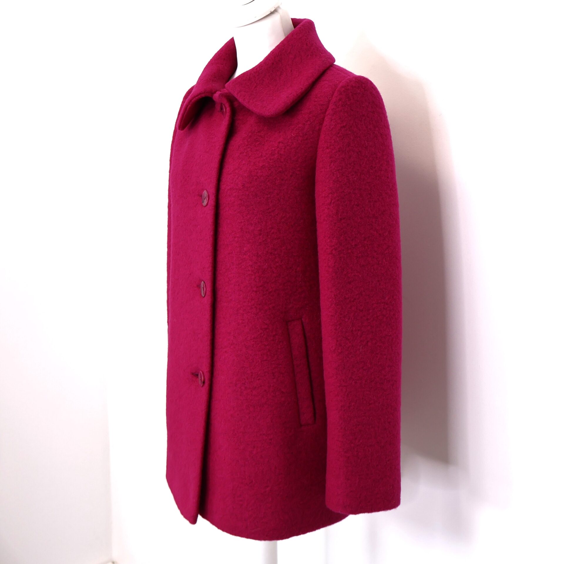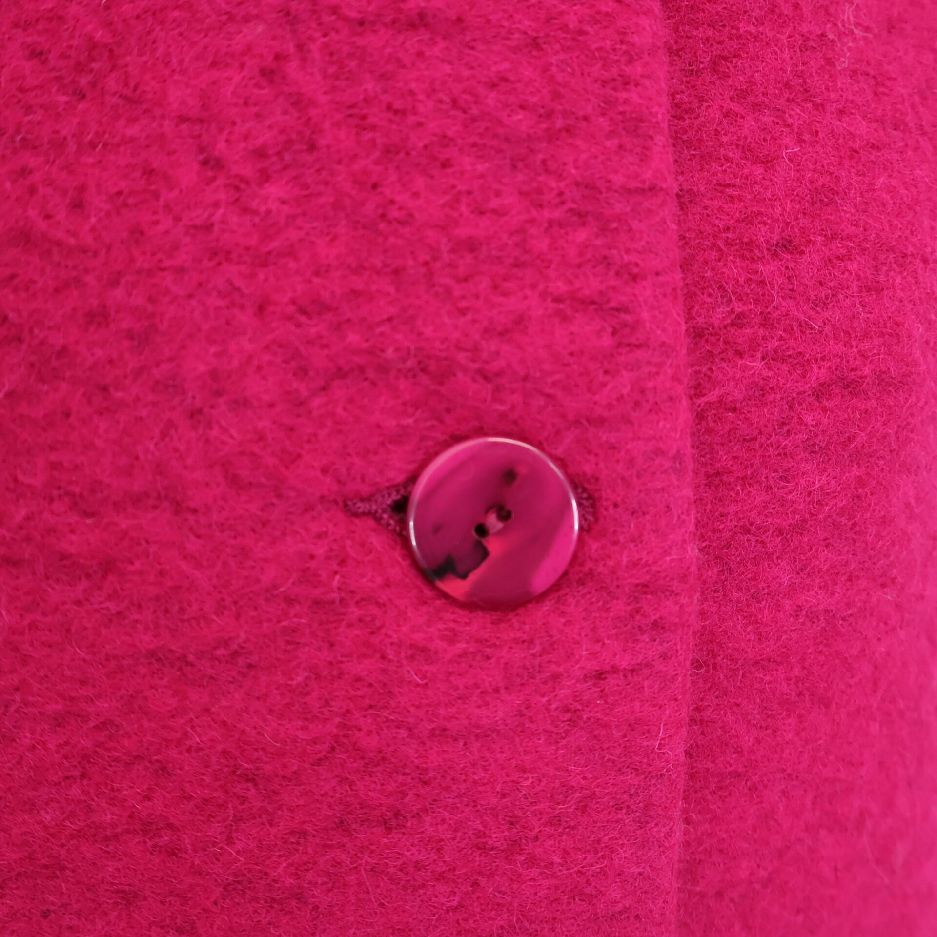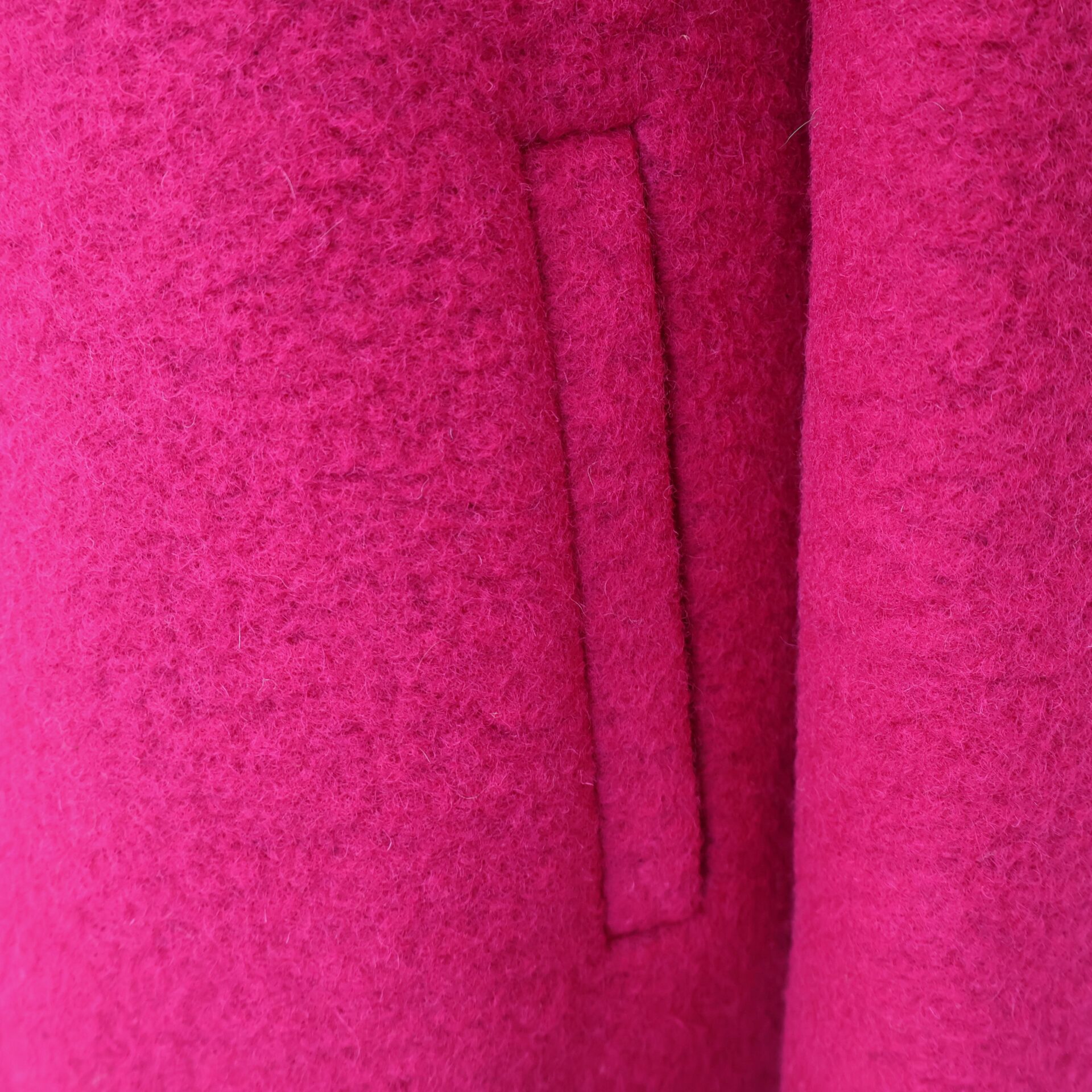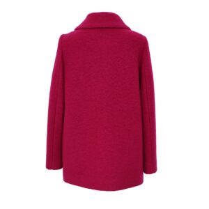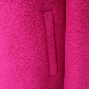 Abrigo de paño rizado de gran calidad confeccionado con lana virgen en color fucsia. Cuello solapa y manga larga. Bolsillos delanteros. Cierre frontal con botones. Forro interior. Confeccionado en taller en Salamanca.
