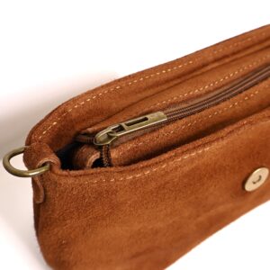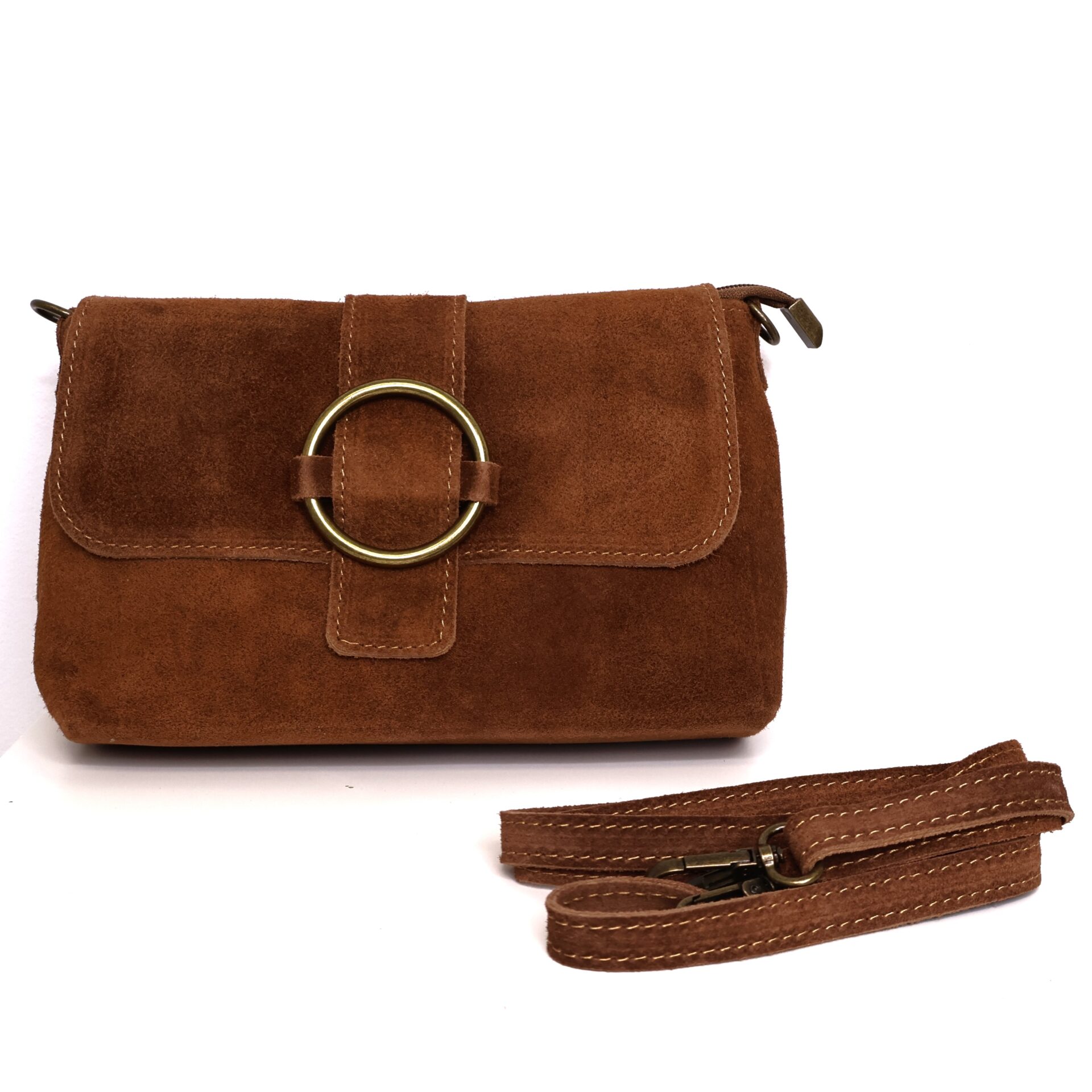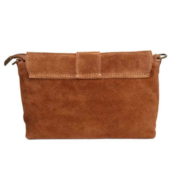 Bolso en color camel confeccionado en 100% ante natural. Con forro interior que incluye un bolsillo interior con cierre mediante cremallera. Incluye correa larga en el mismo material. Doble cierre mediante cremallera interior y corchete exterior.