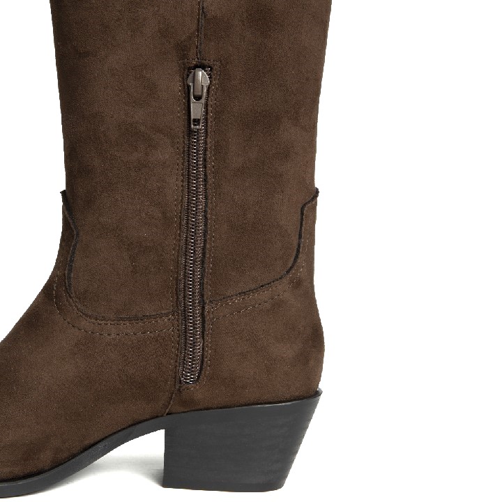 Botas cowboy de caña alta fabricadas en suave ante de color chocolate, combinan a la perfección la autenticidad del diseño western con la elegancia contemporánea. Ideales para cualquier ocasión, siente la esencia del lejano oeste con un toque de sofisticación.
