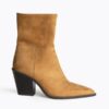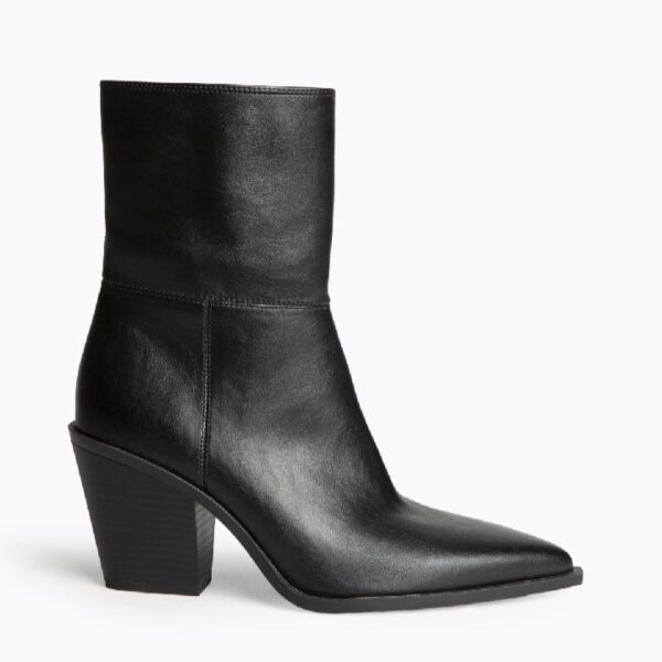 Botín de tacón alto estilo cowboy de piel en color negro. Detalle de cosido en la caña. Cremallera en el lateral interior.