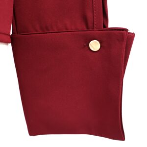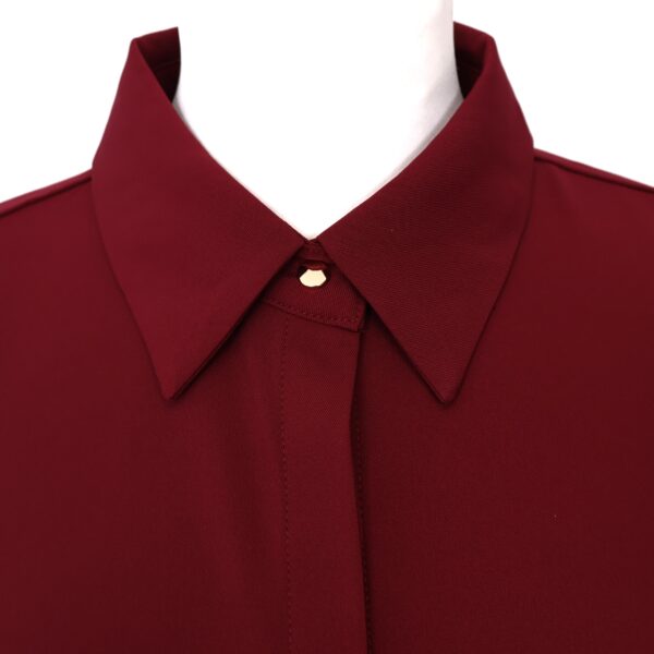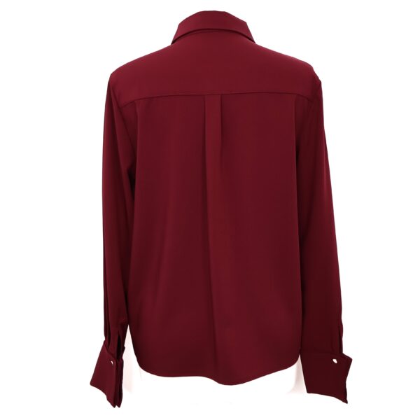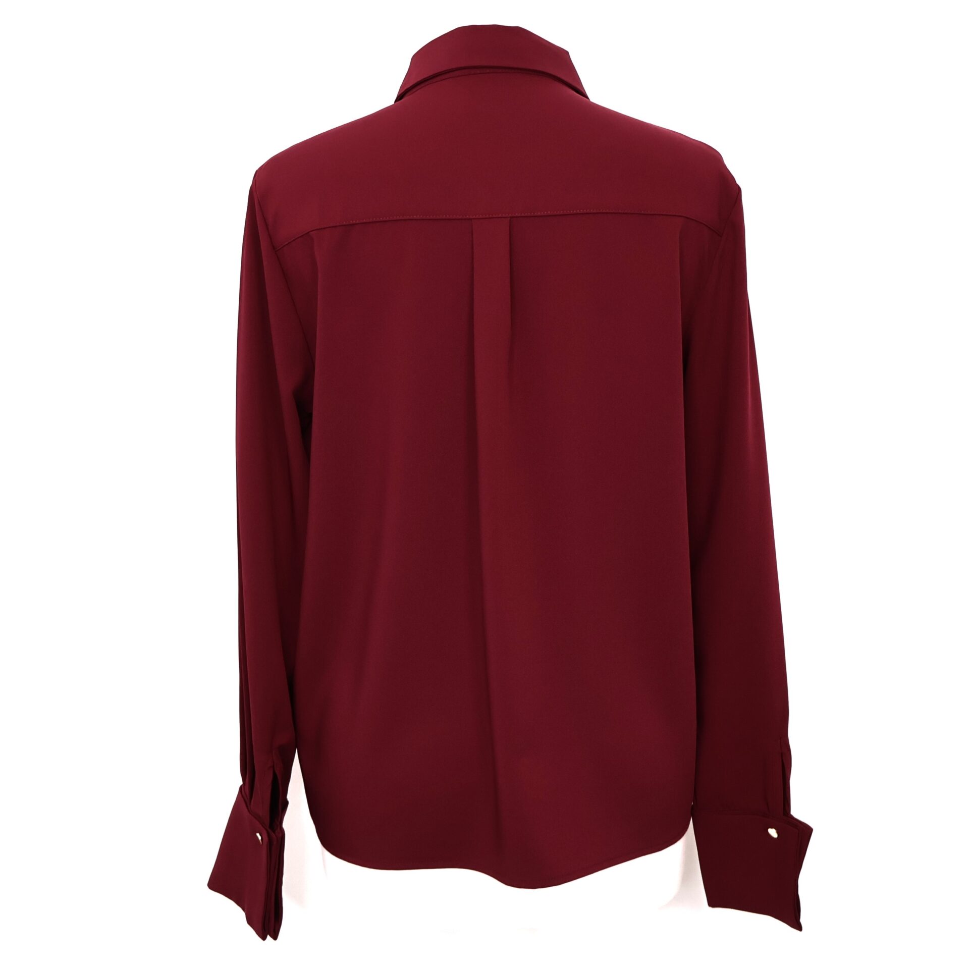 Camisa de manga larga de color burdeos. Con cuello camisa y abotonada de arriba a bajo. Botón interior en los puños y exterior dorado decorativo.