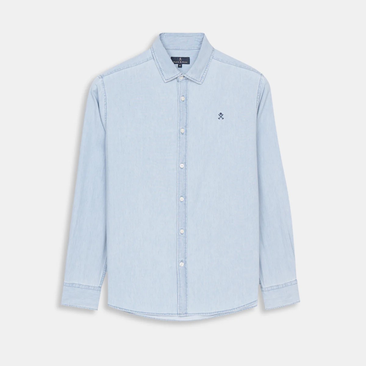 • Acabados: Cuello con ballenas extraíbles, botones de nácar y bordado HandN en pecho