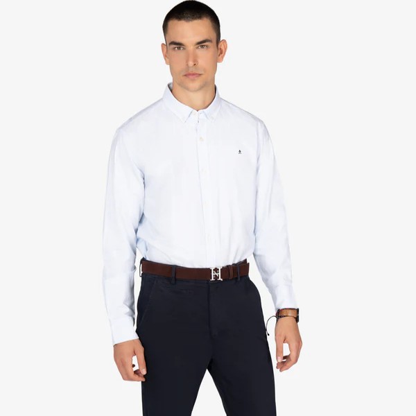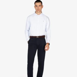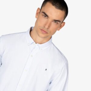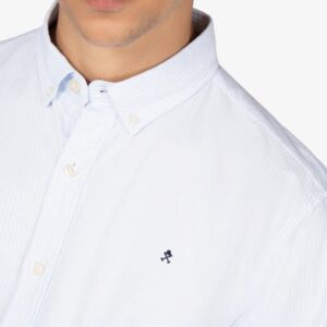 Esta camisa, un básico imprescindible, se ha confeccionado en 100% algodón suave y transpirable, con el clásico diseño de rayas. Disponible en cuatro colores versátiles, es perfecta para añadir un toque de estilo atemporal a tu vestuario. El emblema de la marca, bordado en el pecho, aporta un detalle distintivo y elegante.
