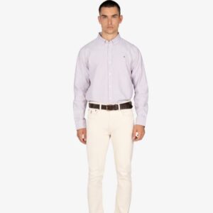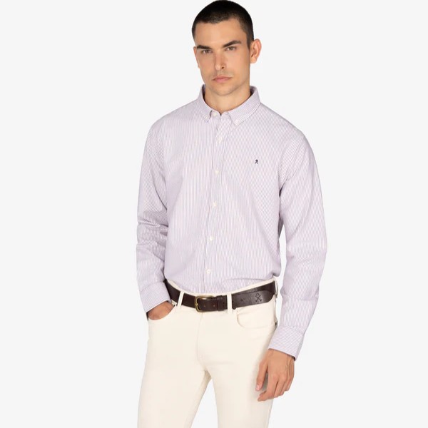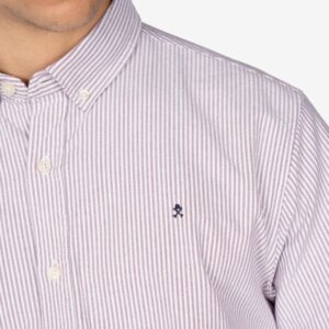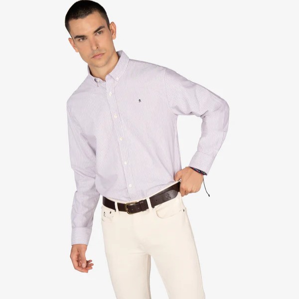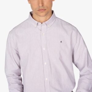 Esta camisa, un básico imprescindible, se ha confeccionado en 100% algodón suave y transpirable, con el clásico diseño de rayas. Disponible en cuatro colores versátiles, es perfecta para añadir un toque de estilo atemporal a tu vestuario. El emblema de la marca, bordado en el pecho, aporta un detalle distintivo y elegante.