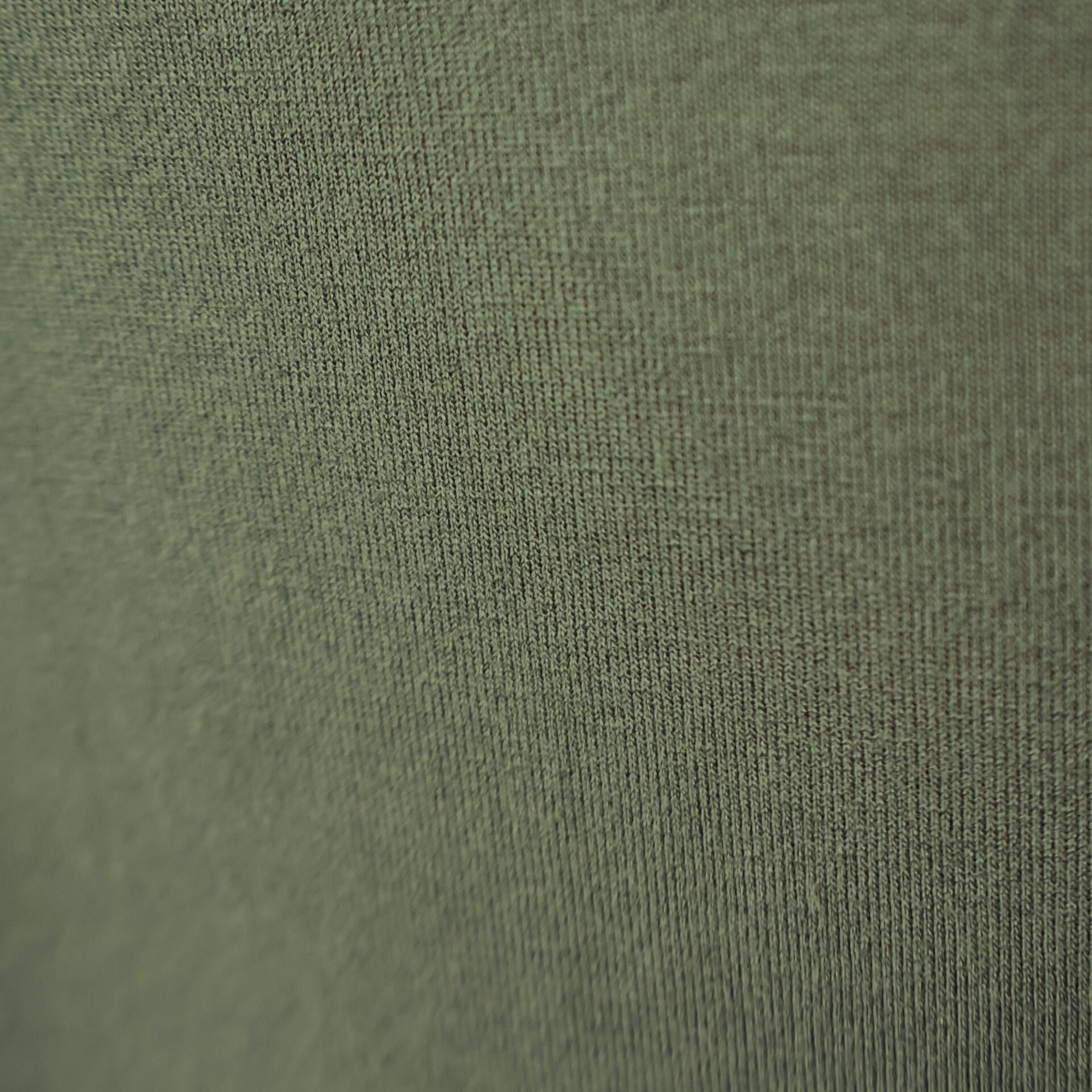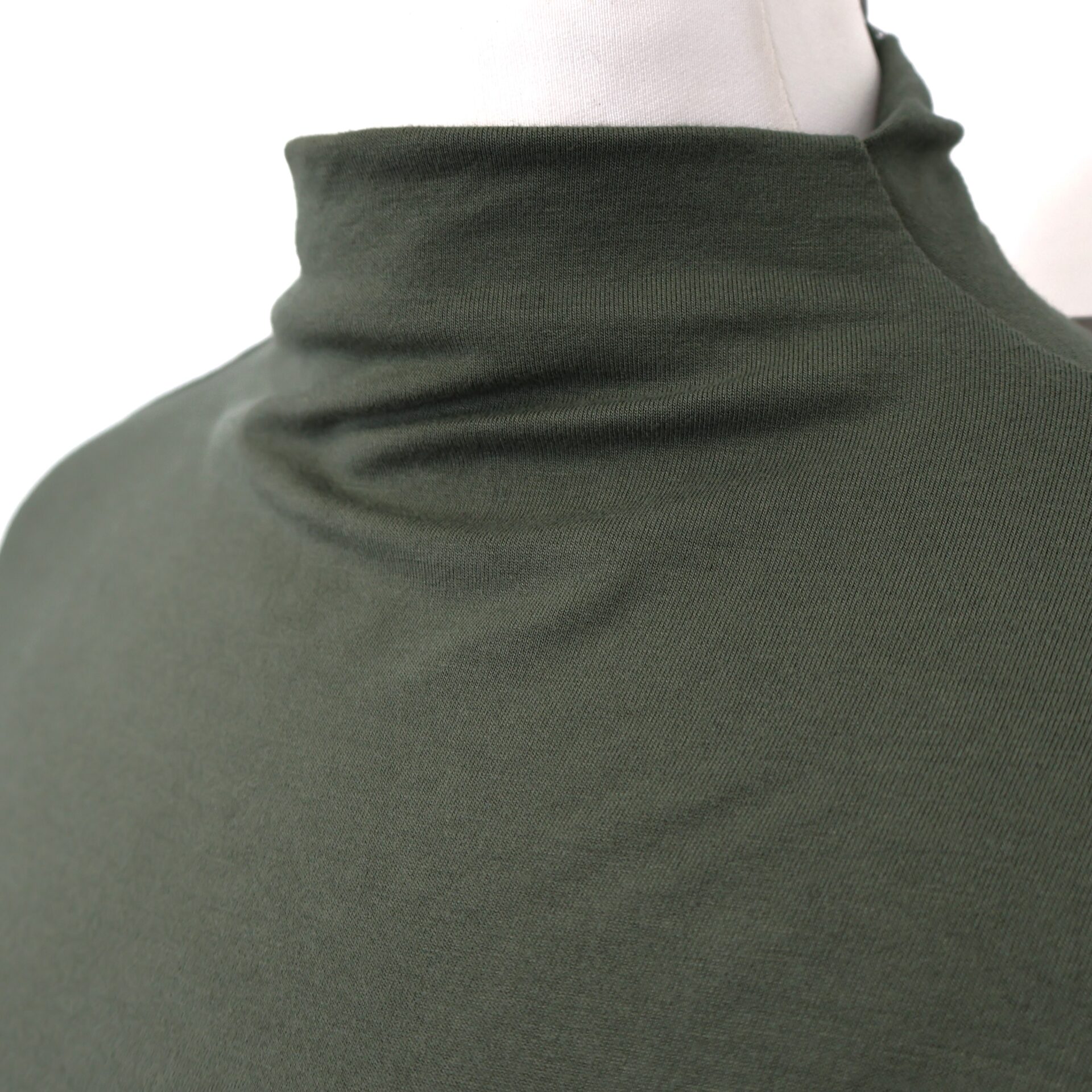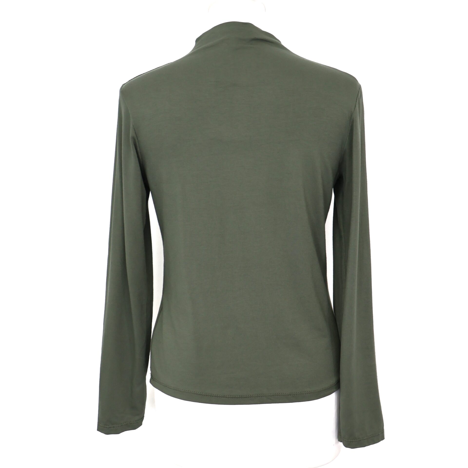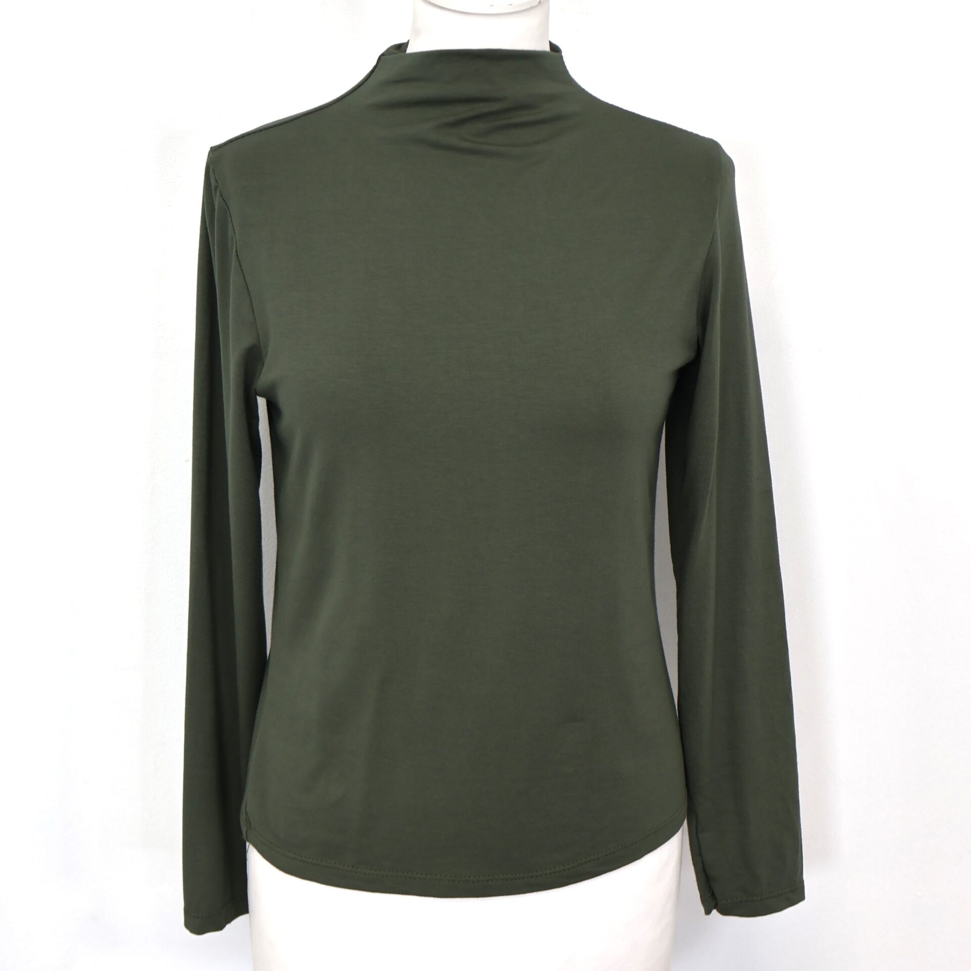 Camiseta básica de manga larga y cuello subido en color verde kaki de tejido elástico.
