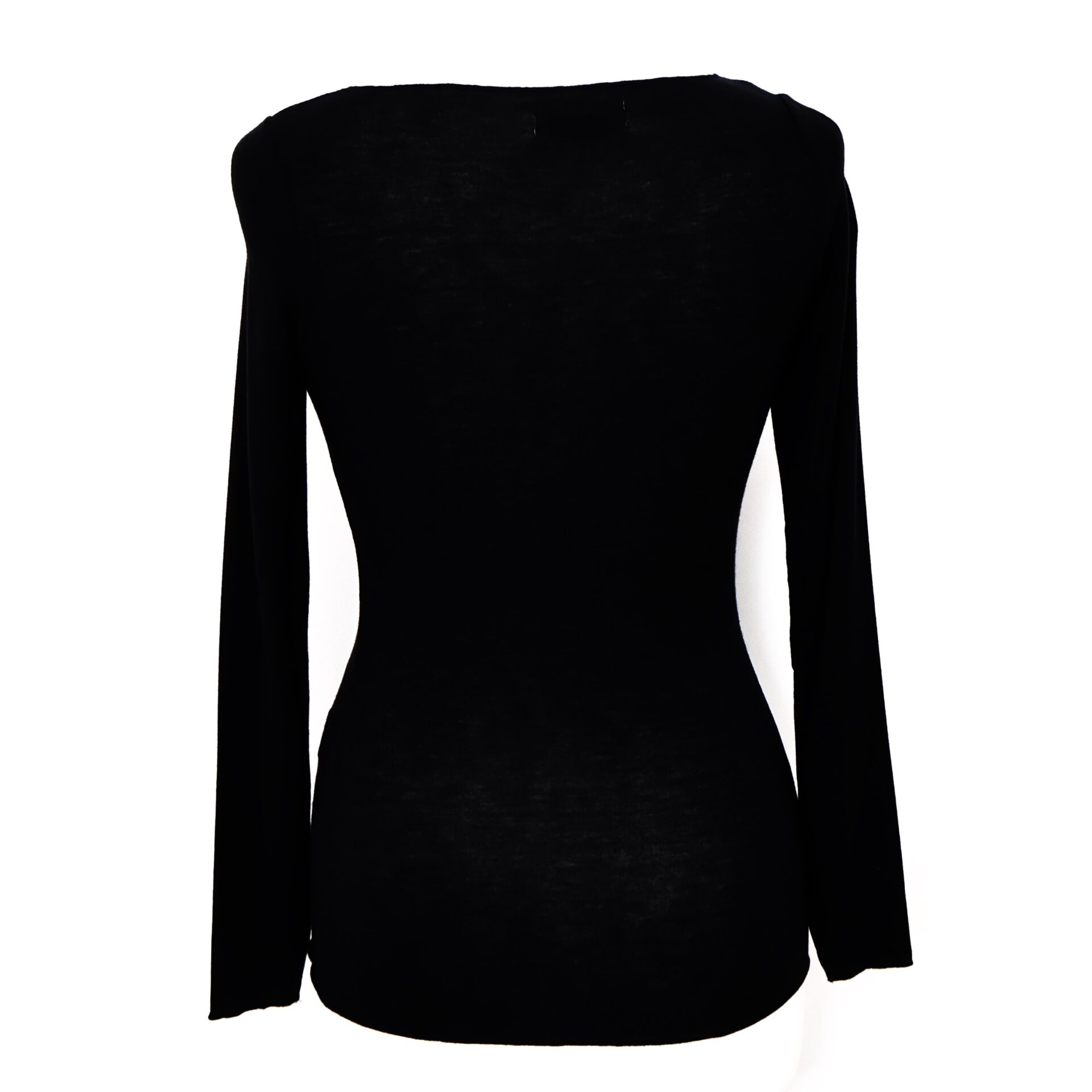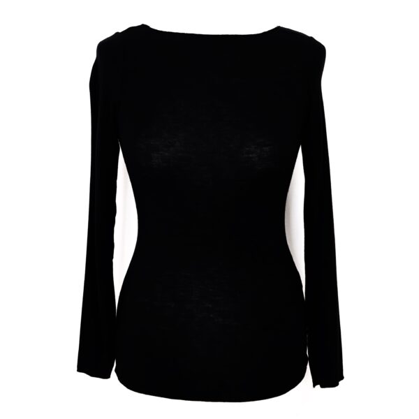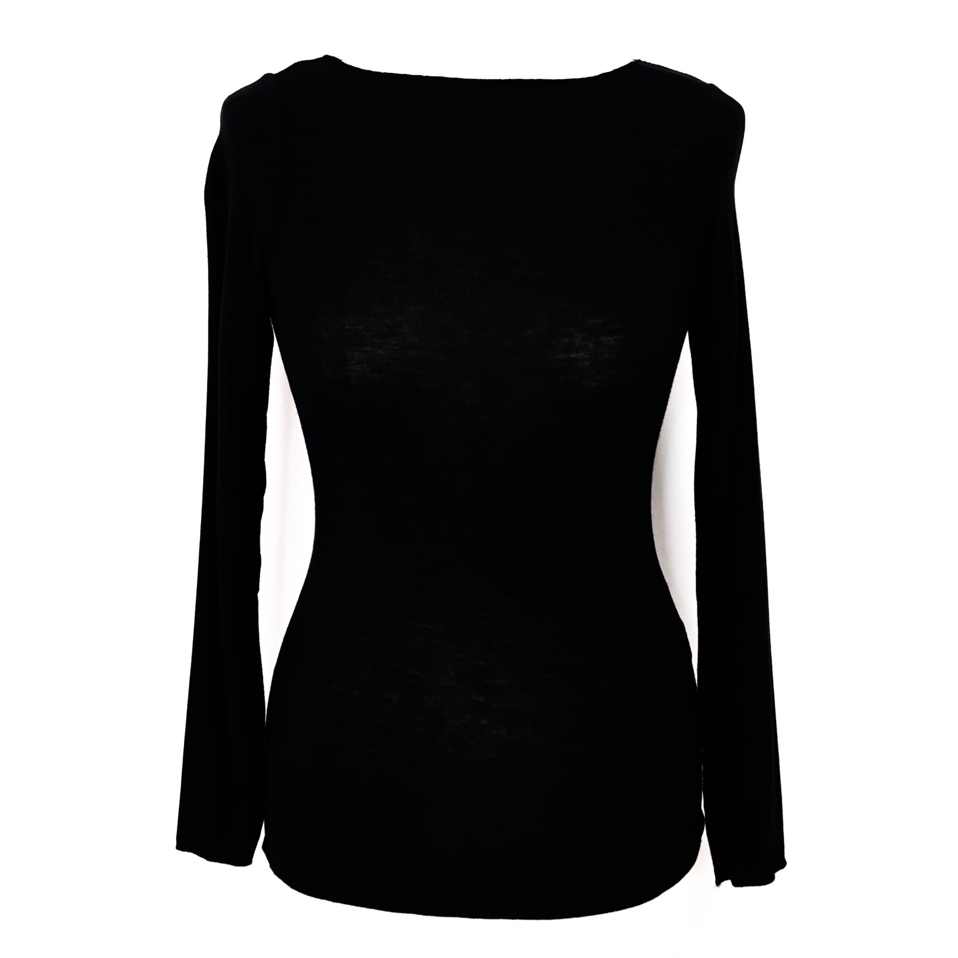 Camiseta básica de manga larga en color negro de tejido elástico. Cuello barco.