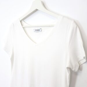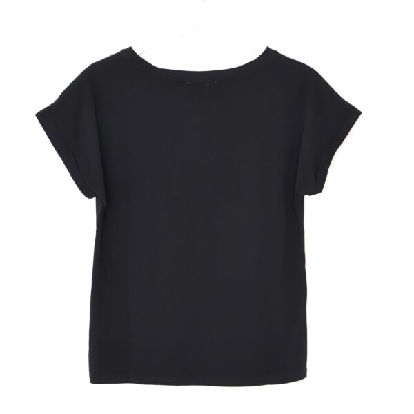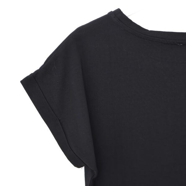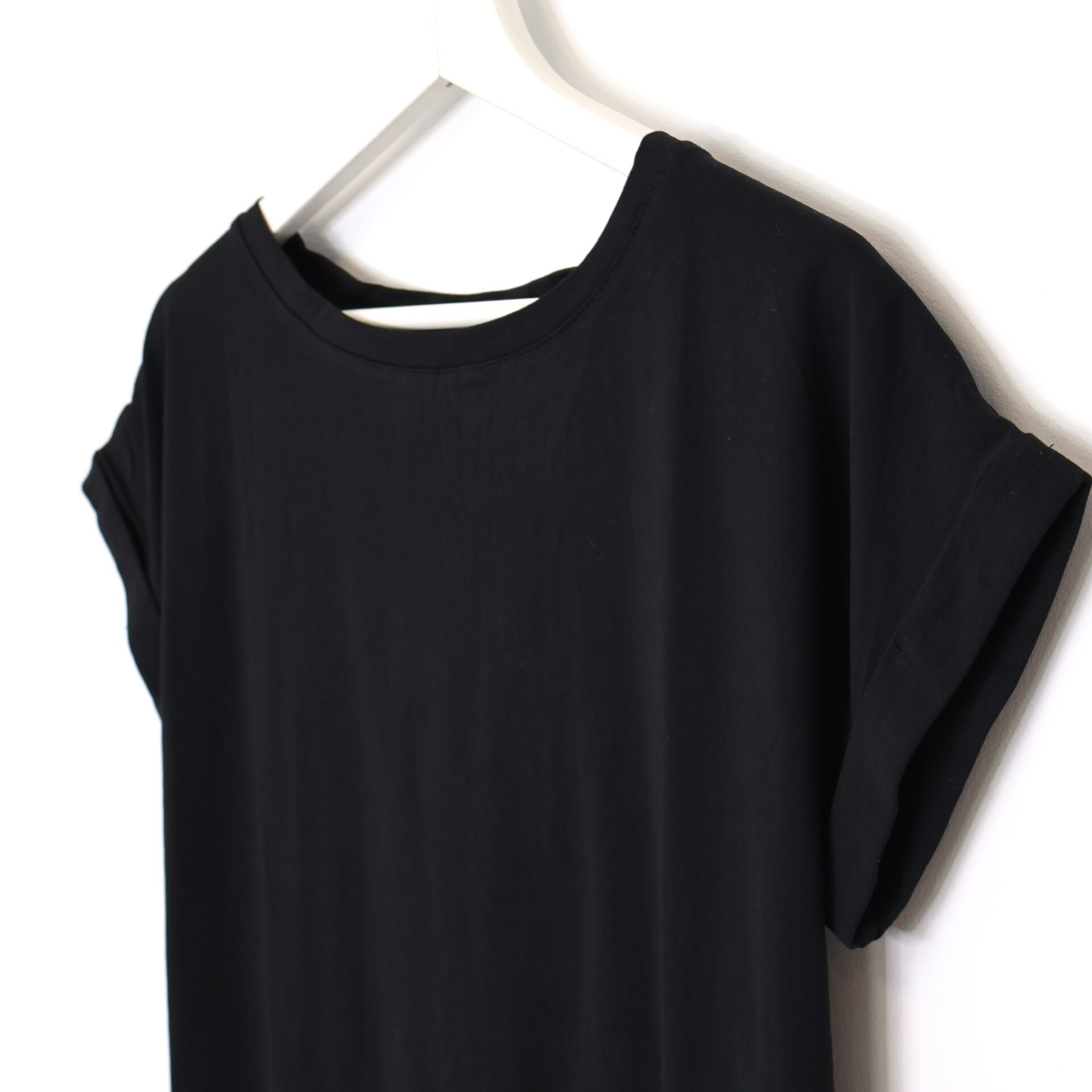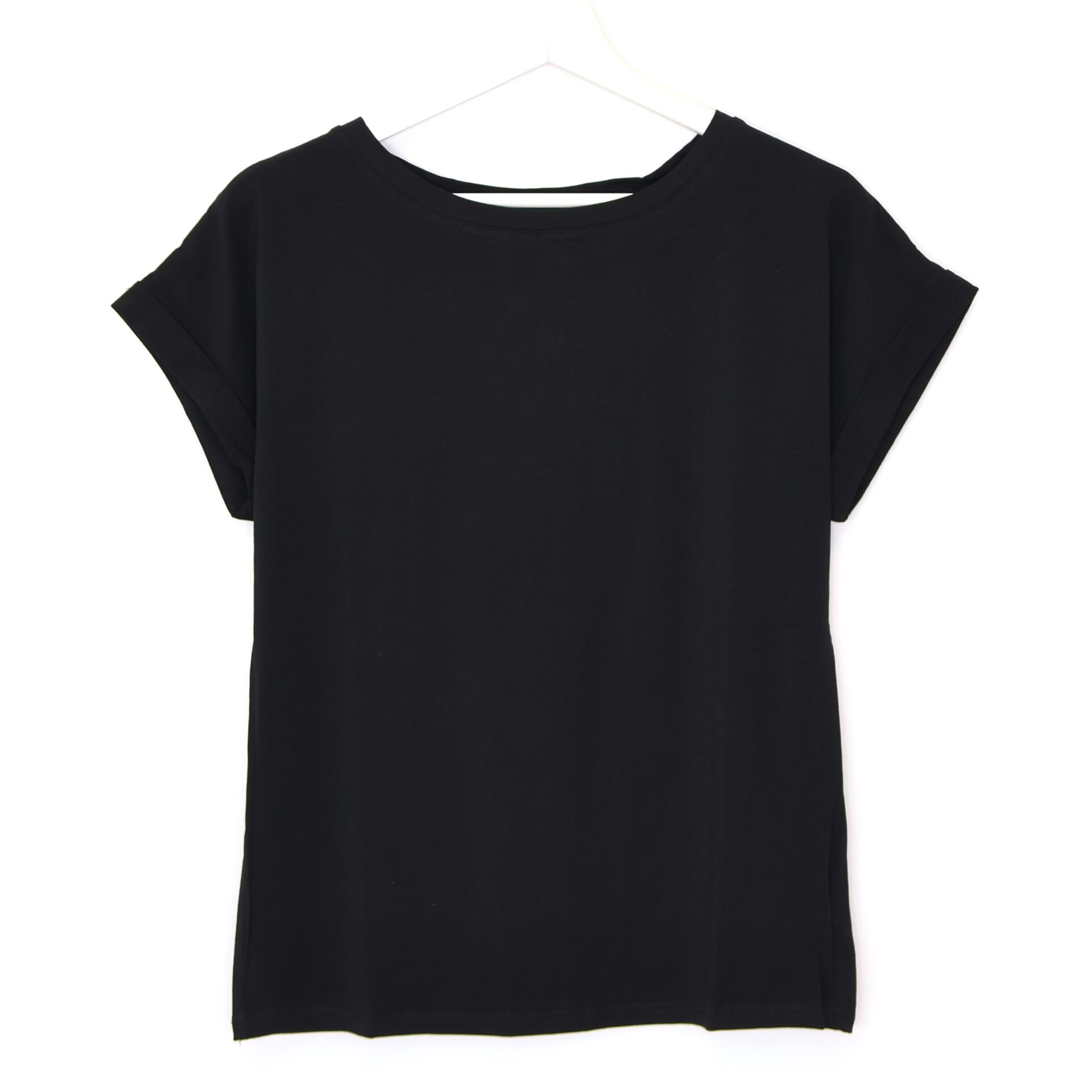 Camiseta básica con cuello redondo de manga corta y caída en color negro.