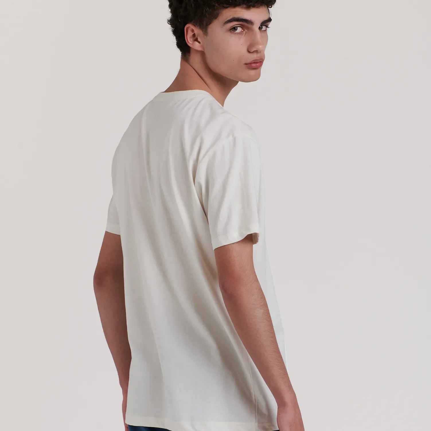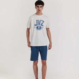 Camiseta de hombre confeccionada 100% en algodón . Print con diseño distintivo y plasmado engomado en el pecho. Cuello redondo y manga corta.