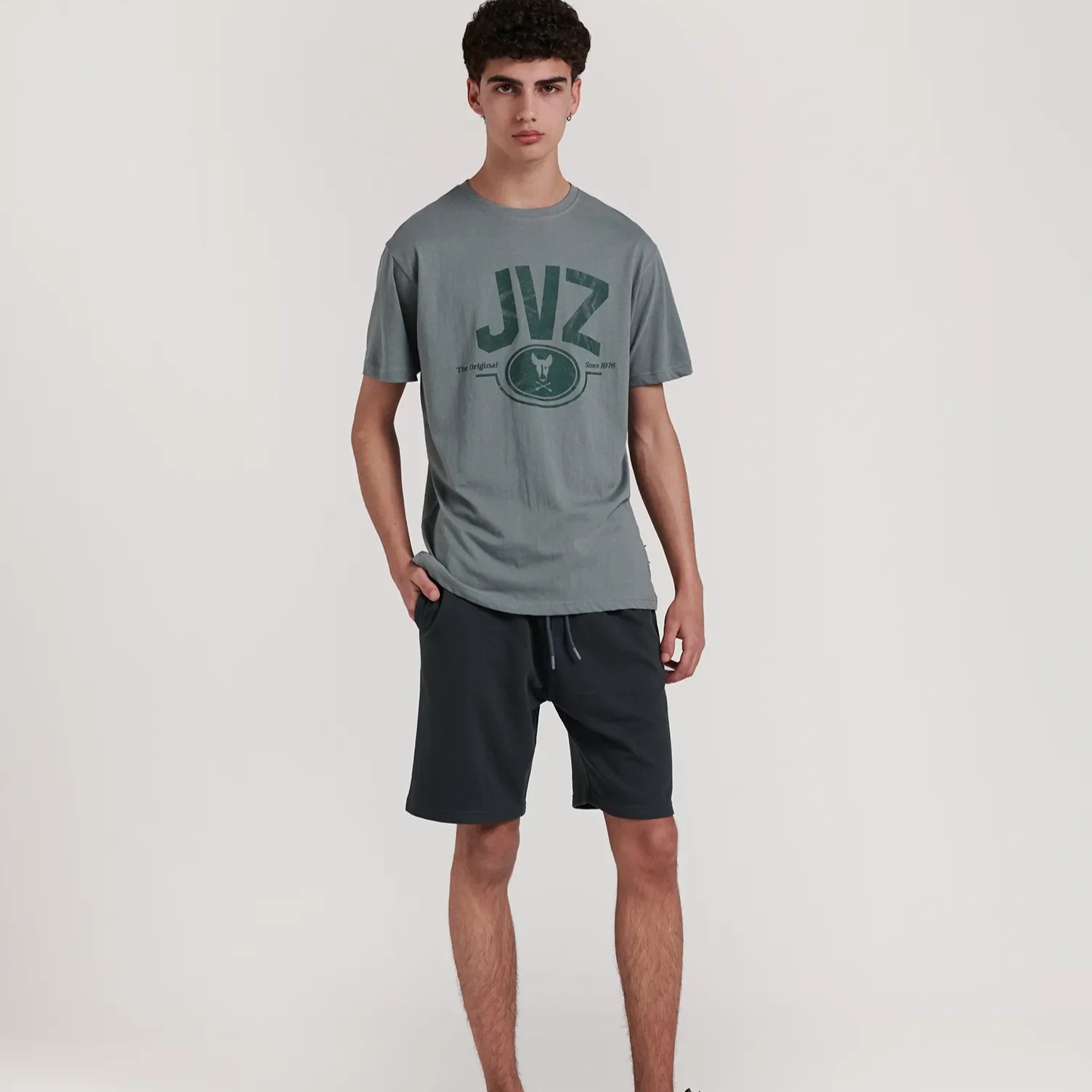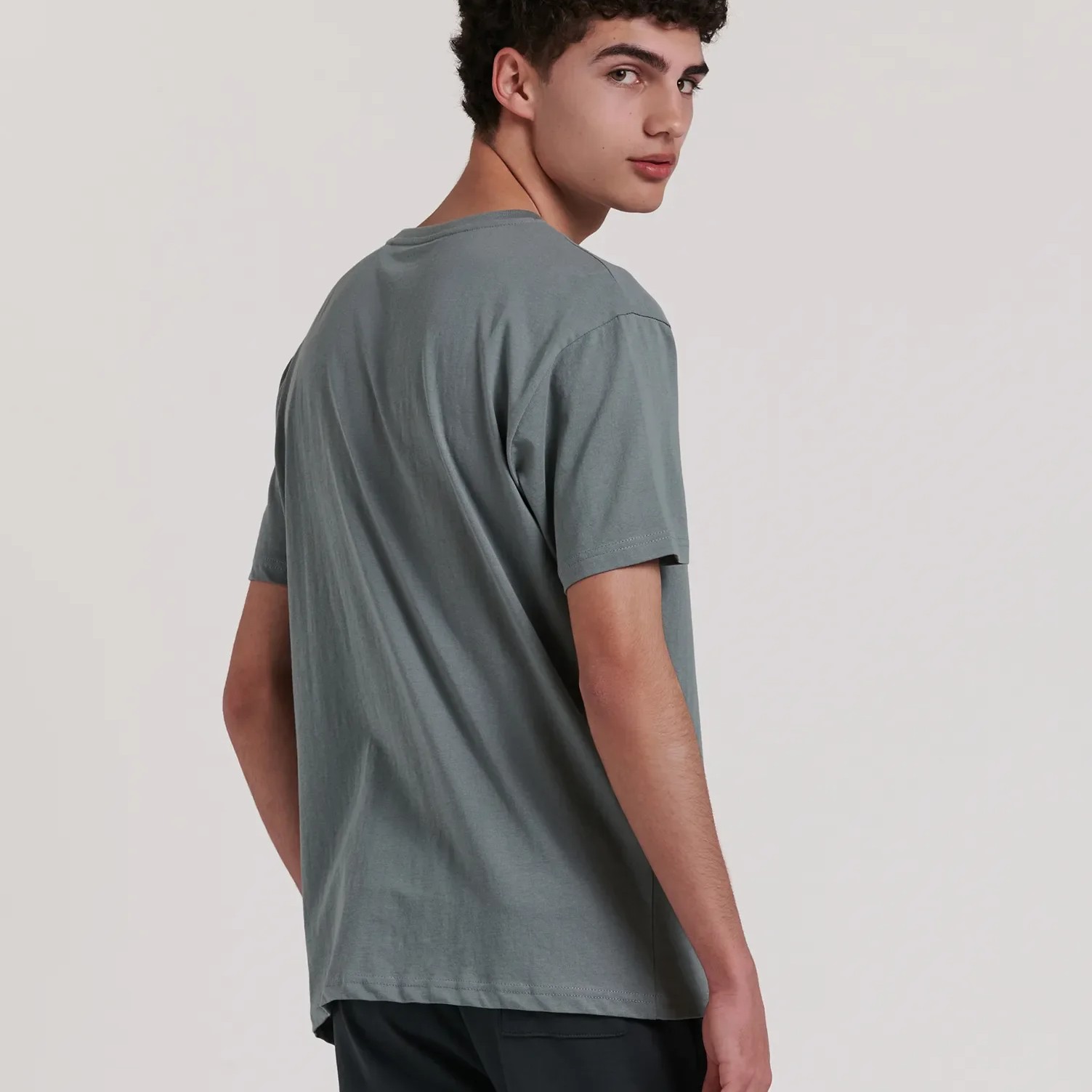 Camiseta de hombre confeccionada 100% en algodón . Print con diseño distintivo y plasmado engomado en el pecho. Cuello redondo y manga corta.