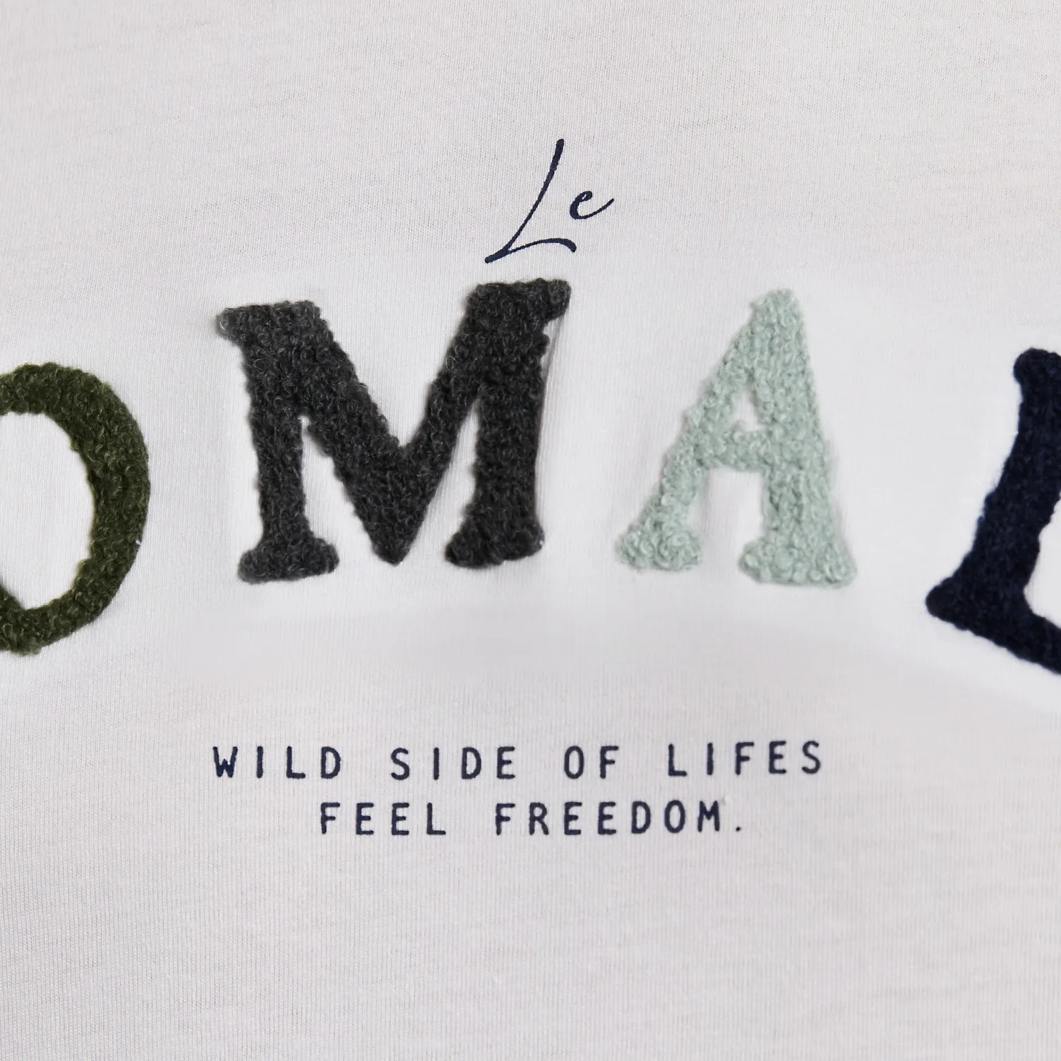 Camiseta de hombre confeccionada 100% en algodón. Cuello redondo y manga corta. Detalle bordado en el pecho en material de felpa.