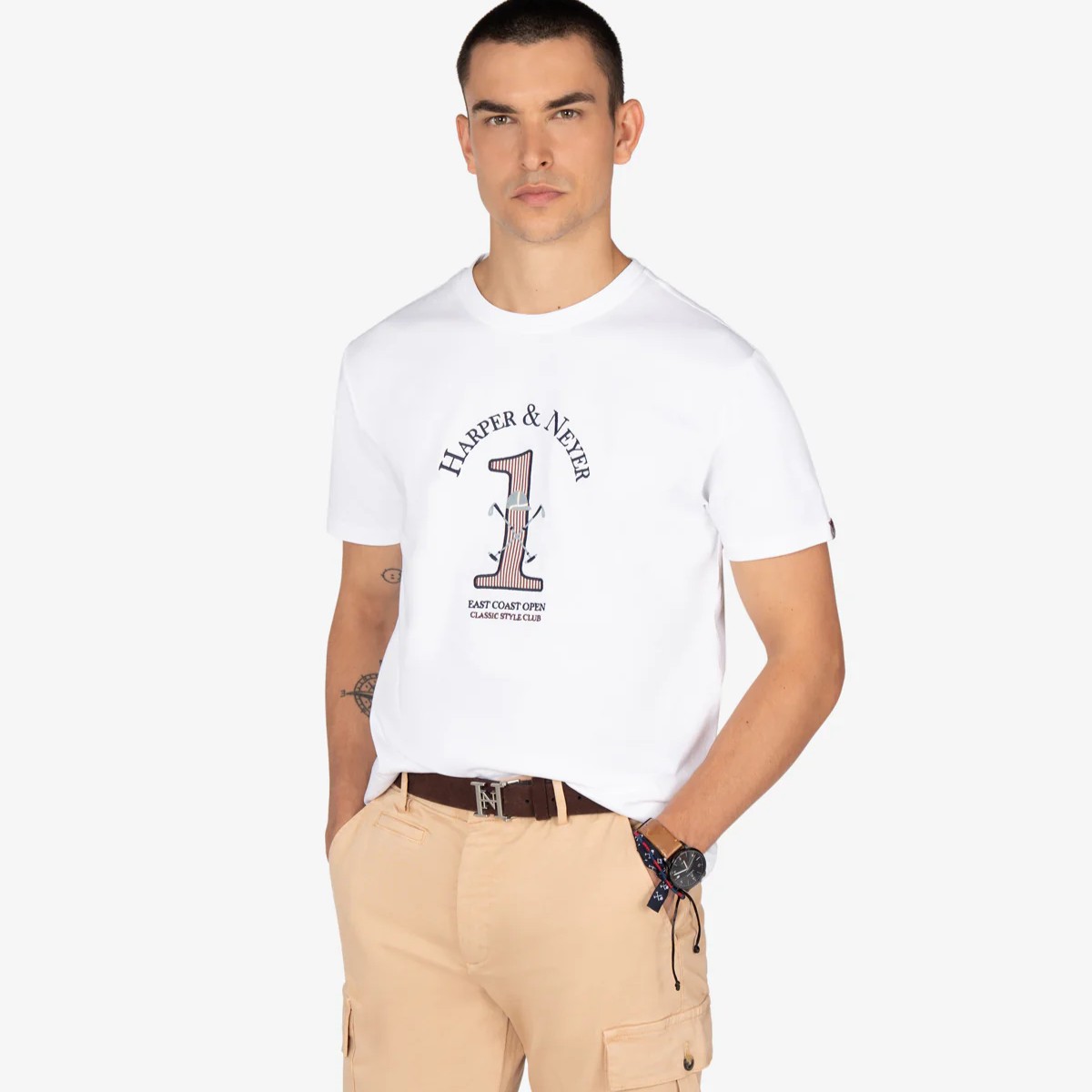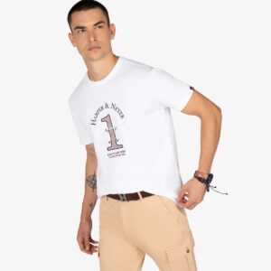 Camiseta de manga corta con estampado frontal. Gráfico de estilo universitario y corte regular. El algodón de alta calidad aporta confort y durabilidad. Ideal para destacar con un look relajado pero cuidado.