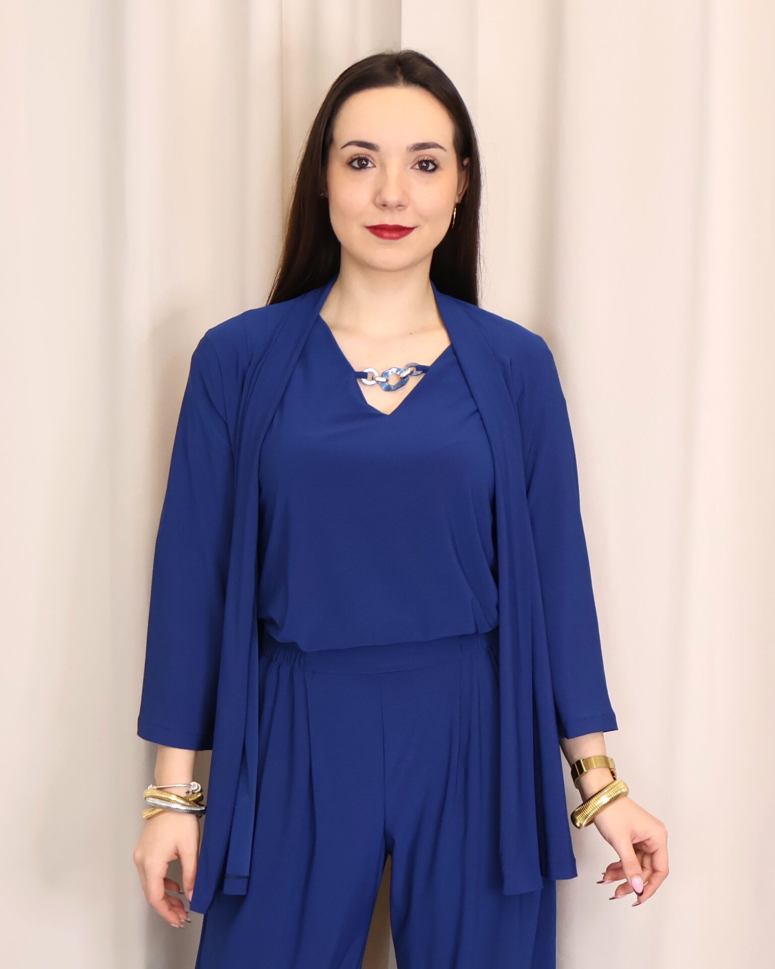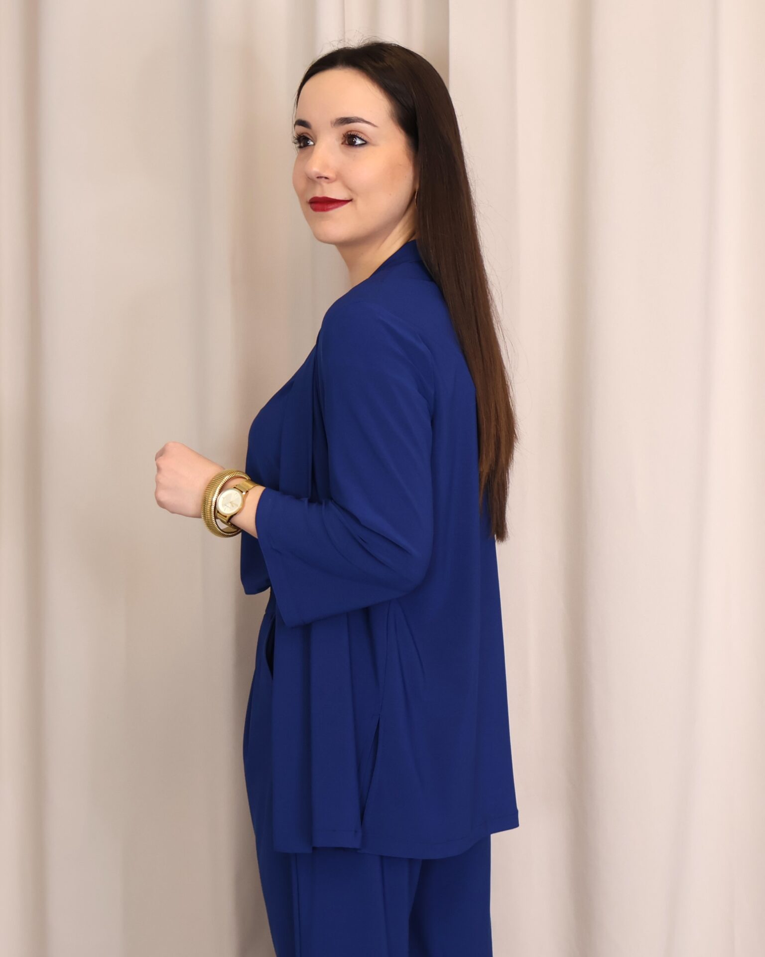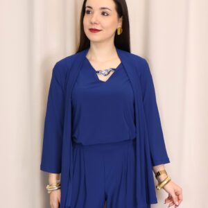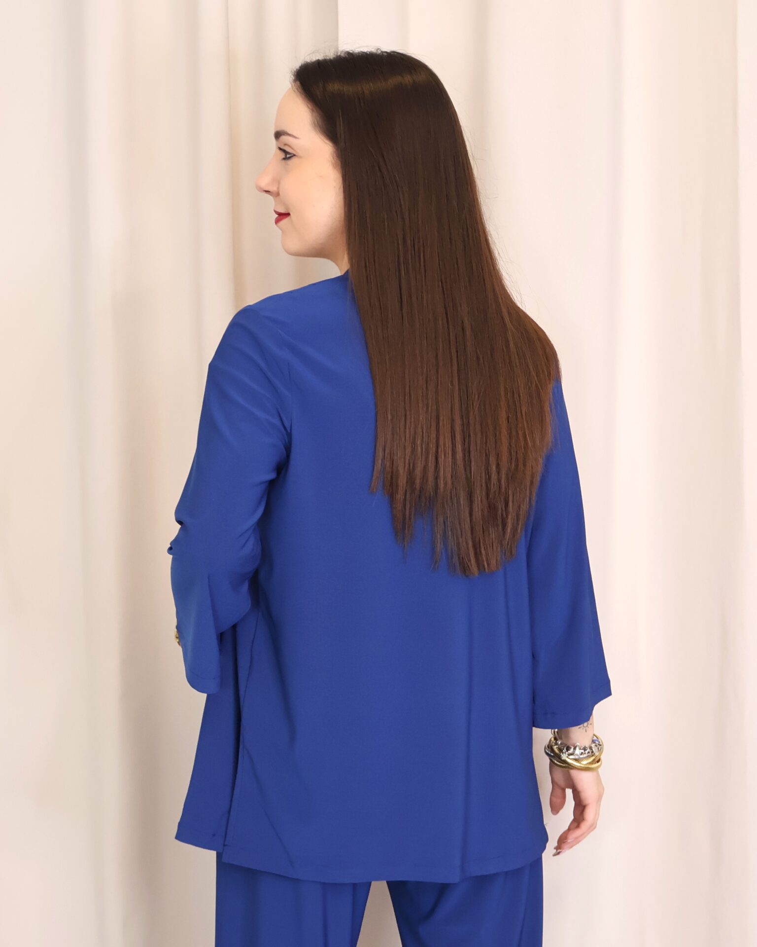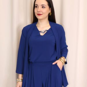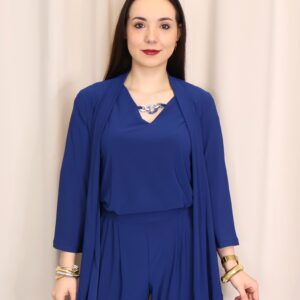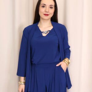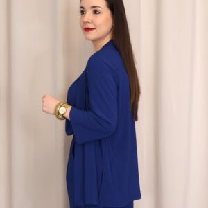 Chaqueta abierta confeccionada en un tejido suave y fluido en elegante color azul índigo, ideal para aportar un toque sofisticado a cualquier look. Su diseño ligero y sin cierre la convierte en una prenda cómoda y fácil de combinar. Cuenta con manga francesa (3/4), que aporta un aire actual y favorecedor, perfecta para entretiempo. Su caída fluida estiliza la silueta, convirtiéndola en una opción versátil tanto para looks casuales como más arreglados.