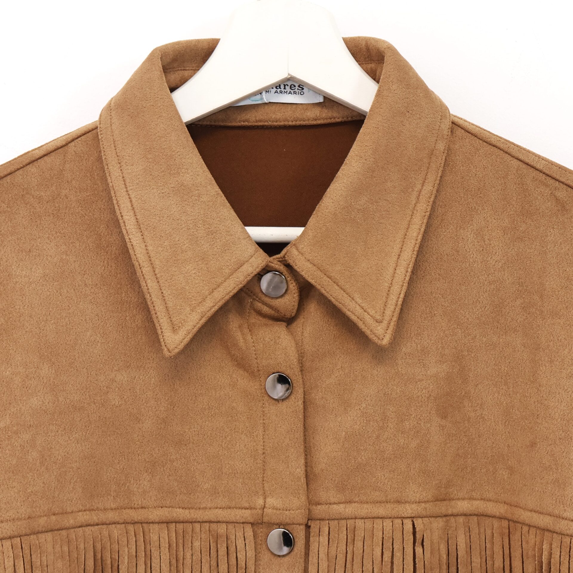 Chaqueta Flecos Ante Camel