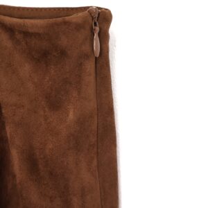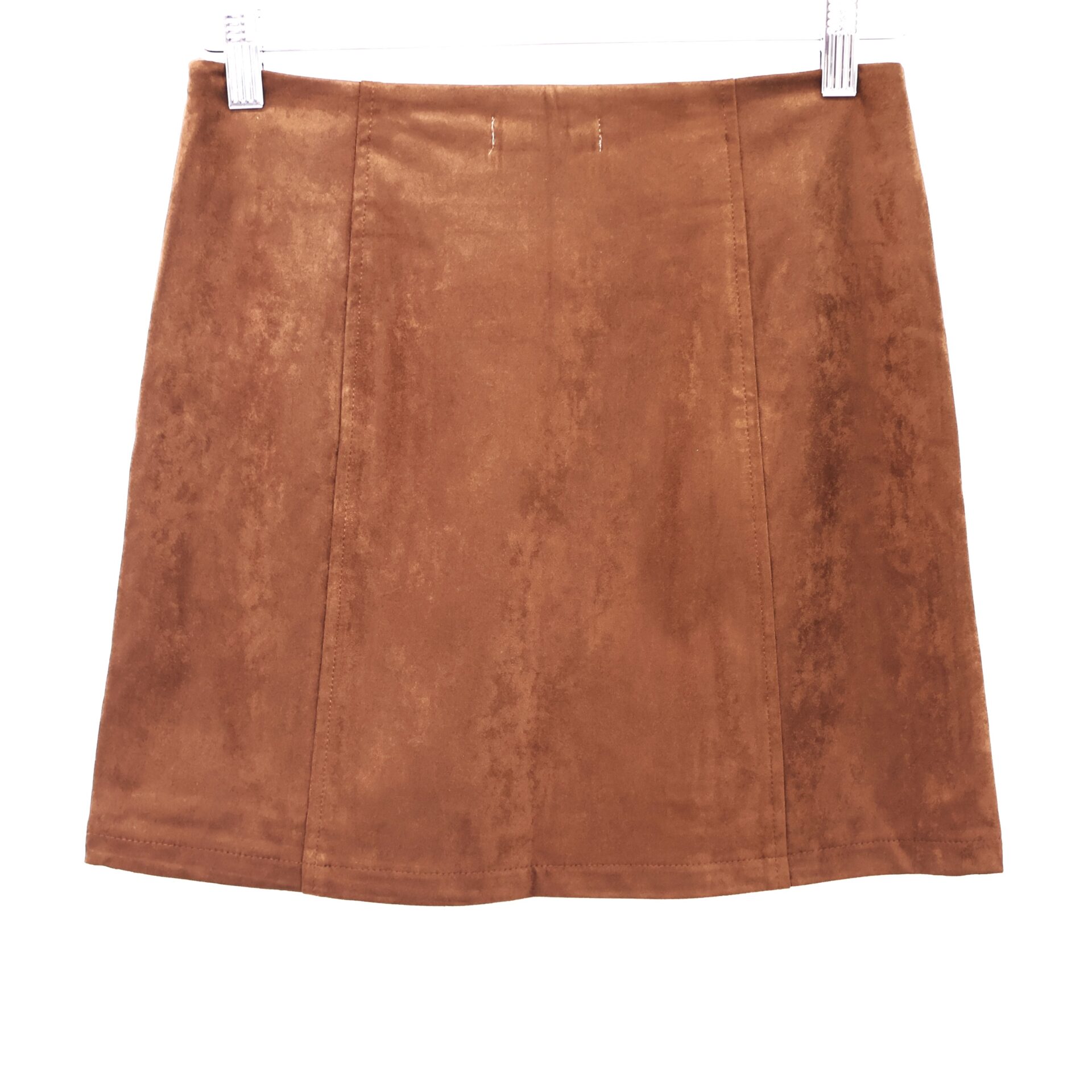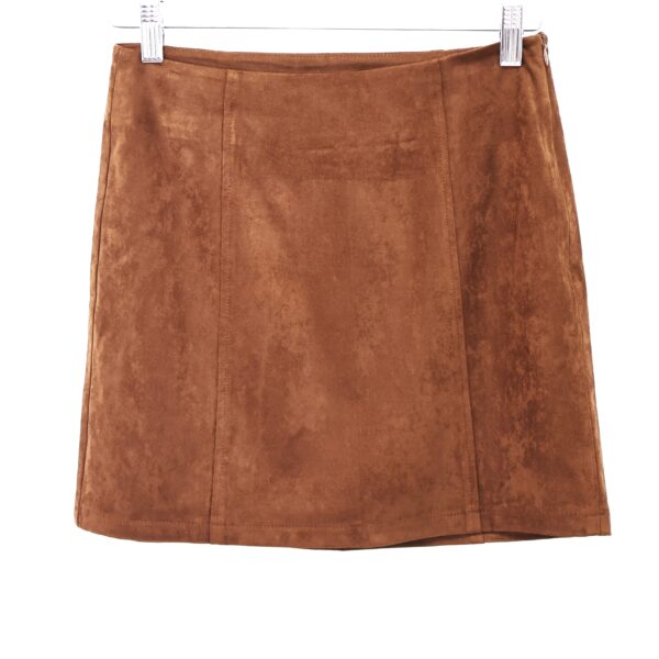 Falda mini confeccionada en ante en color camel. Con forro interior y cremallera lateral invisible.