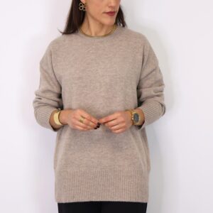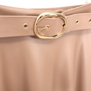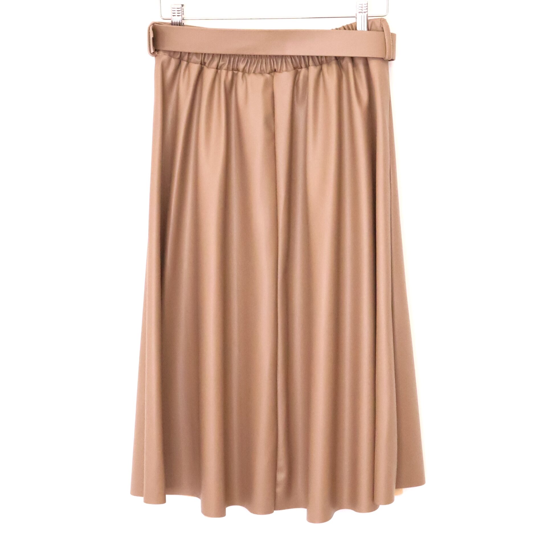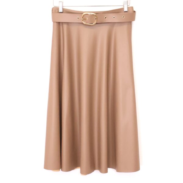 Falda de corte midi confeccionada en piel sintética en color taupe. Cintura elástica gracias a la goma en la parte trasera. Cinturón incluido en el mismo color y tejido.