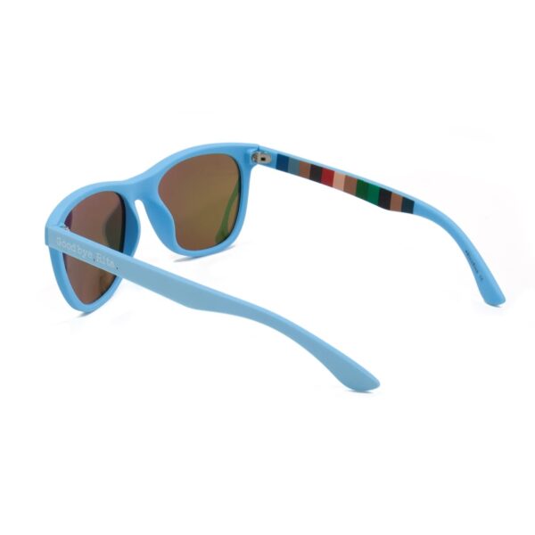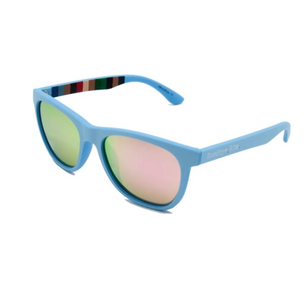 Fabricadas en Tr90 engomado. Son livianas y con una increíble resistencia. Color azul con los colores que identifican a Goodbye, Rita. en el interior de las varillas |