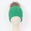 Gorro confeccionado en tejido de punto con líneas verticales y pequeñas listas de ochos decorativas. Pompón de pelo natural desmontable.