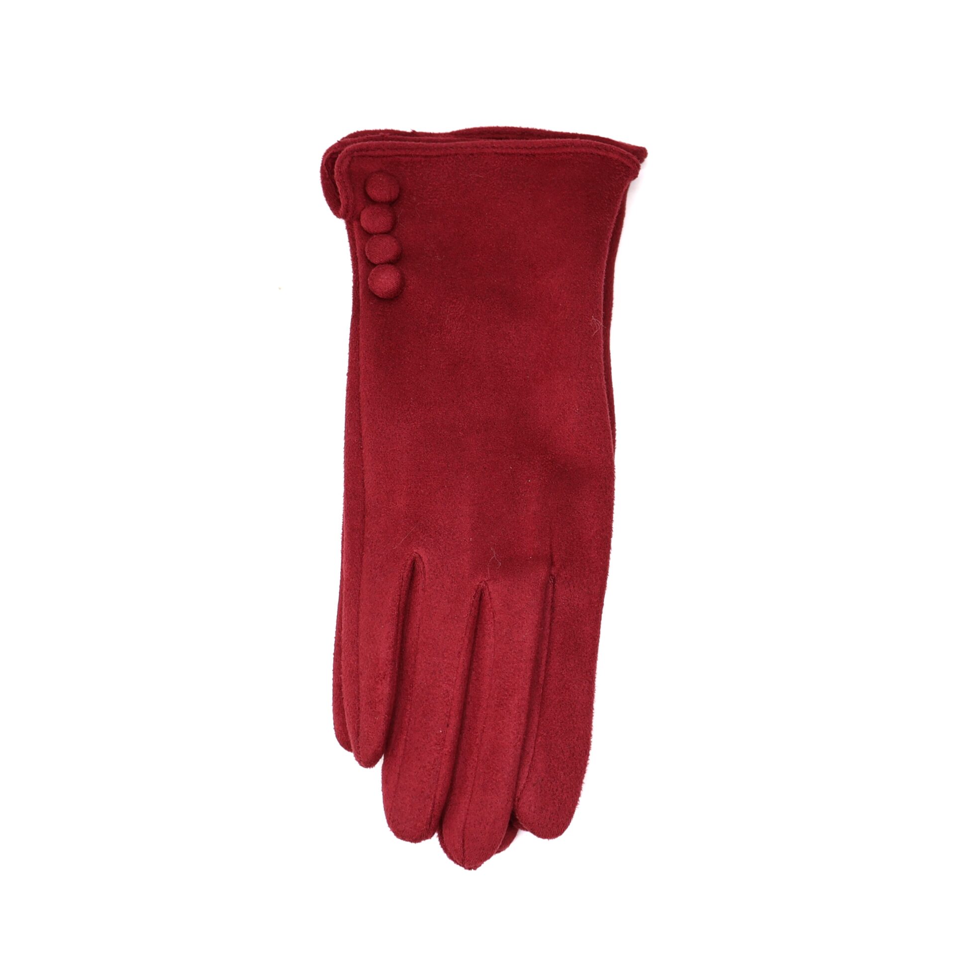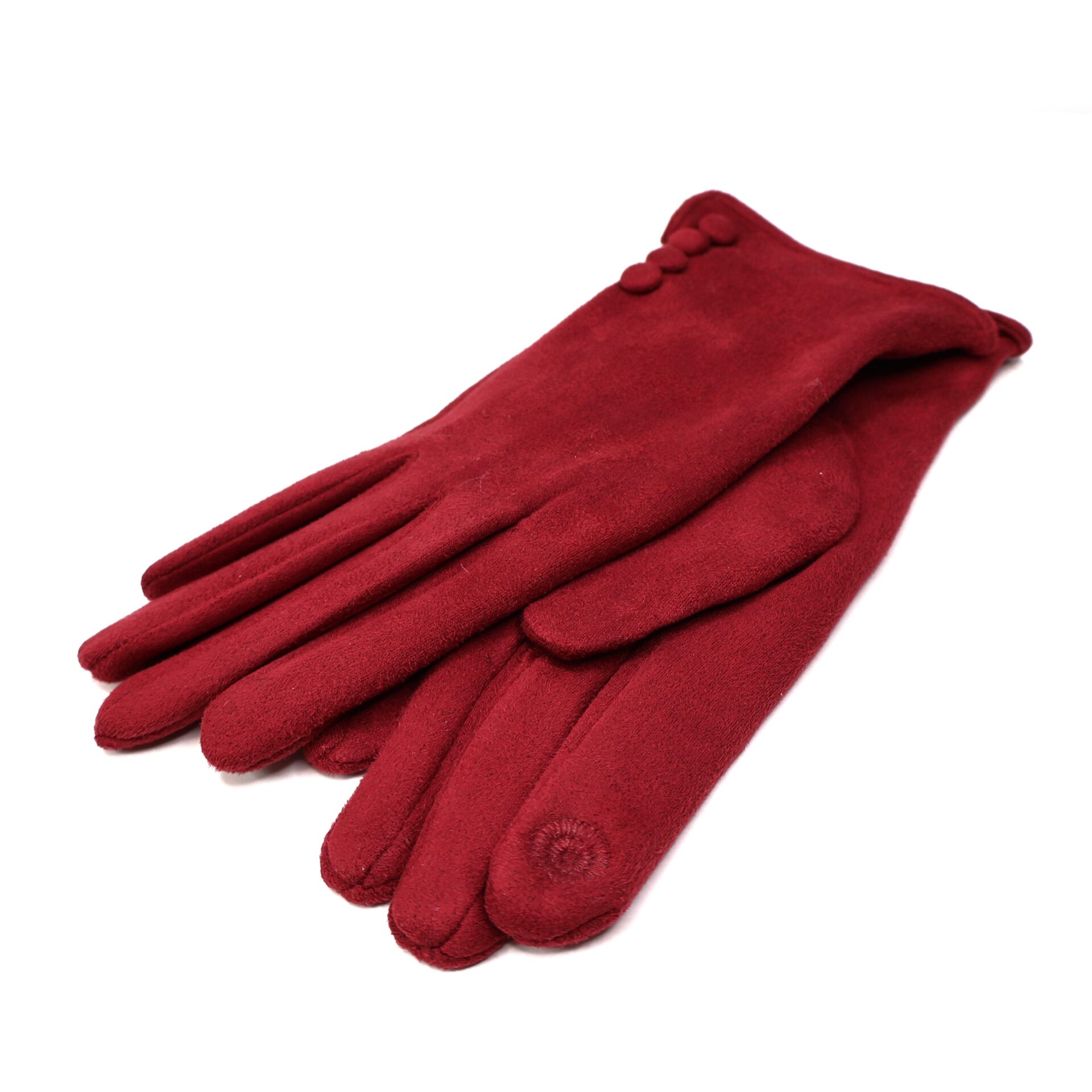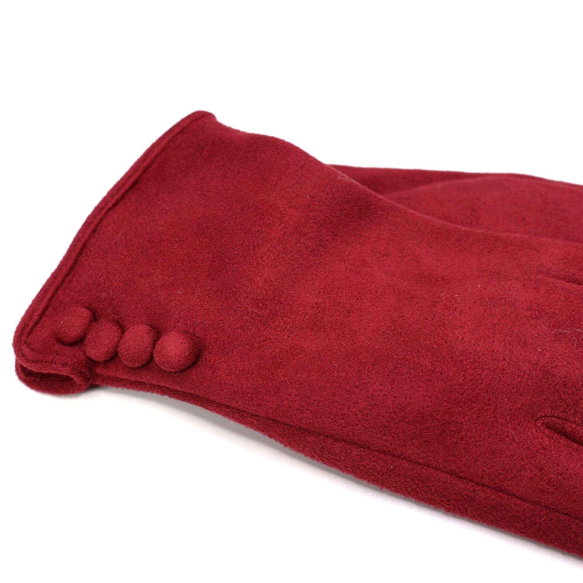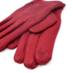 Guantes de mujer en color burdeos que ofrecen una combinación ideal de confort, calidez y sofisticación. Con detalles de botones perfectos para añadir un toque chic a tu look de invierno. Ideal para usar tanto en ocasiones casuales como en eventos más formales, combinando fácilmente con abrigos, bufandas y otros accesorios.