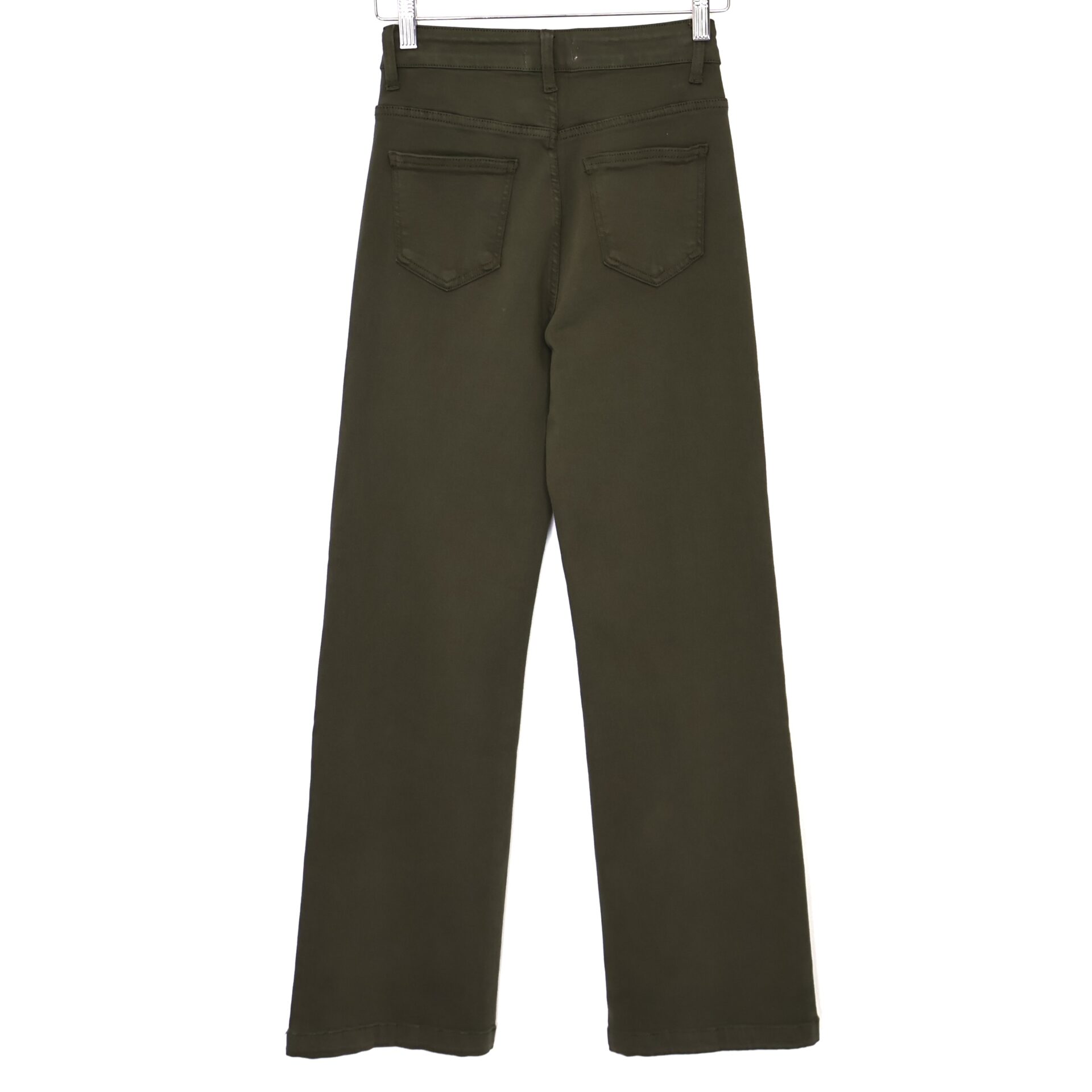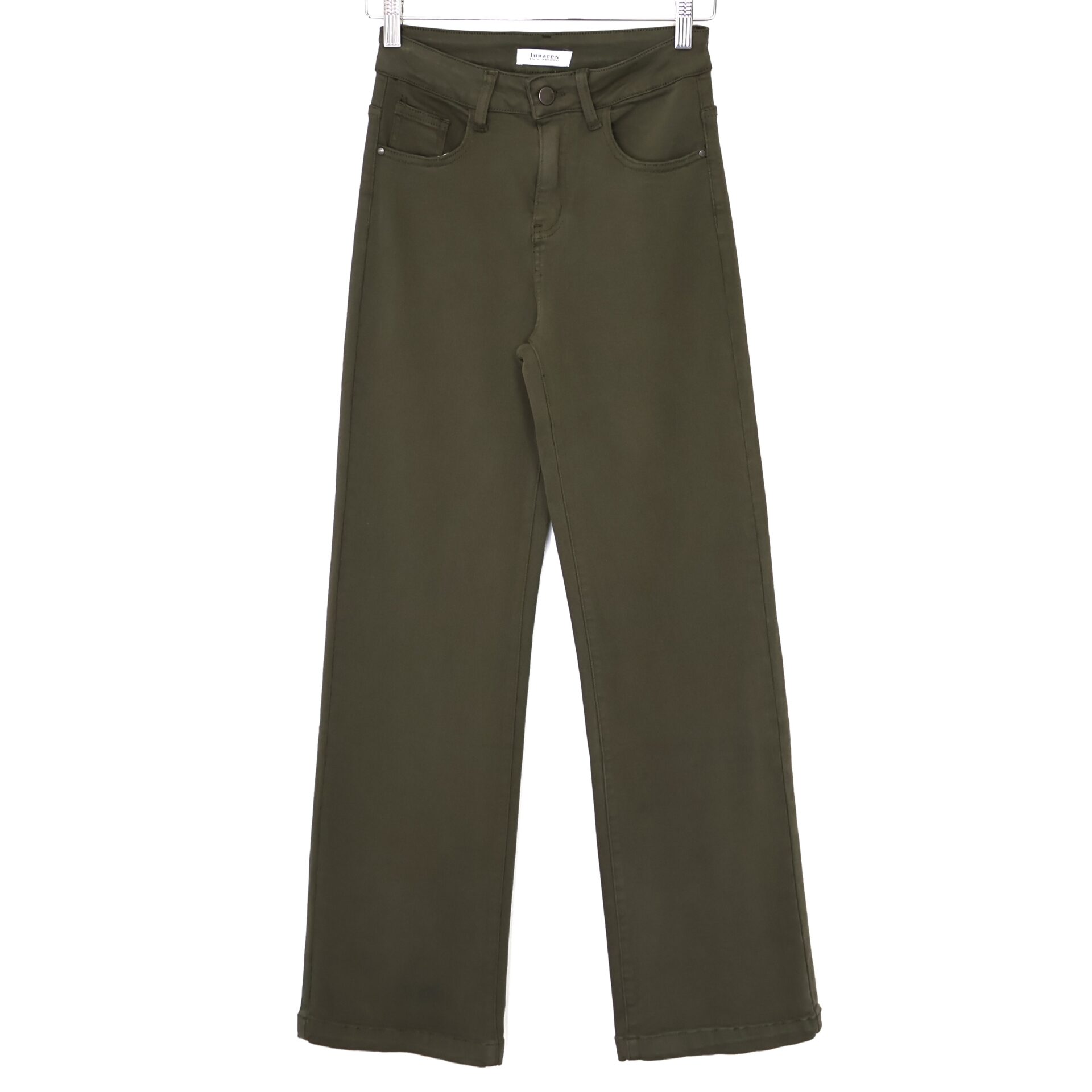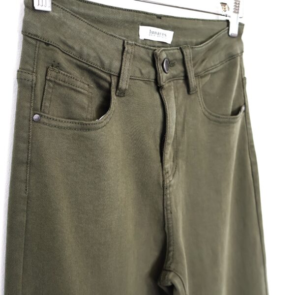 Jeans color verde kaki de corte recto y tiro alto. 5 Bolsillos.