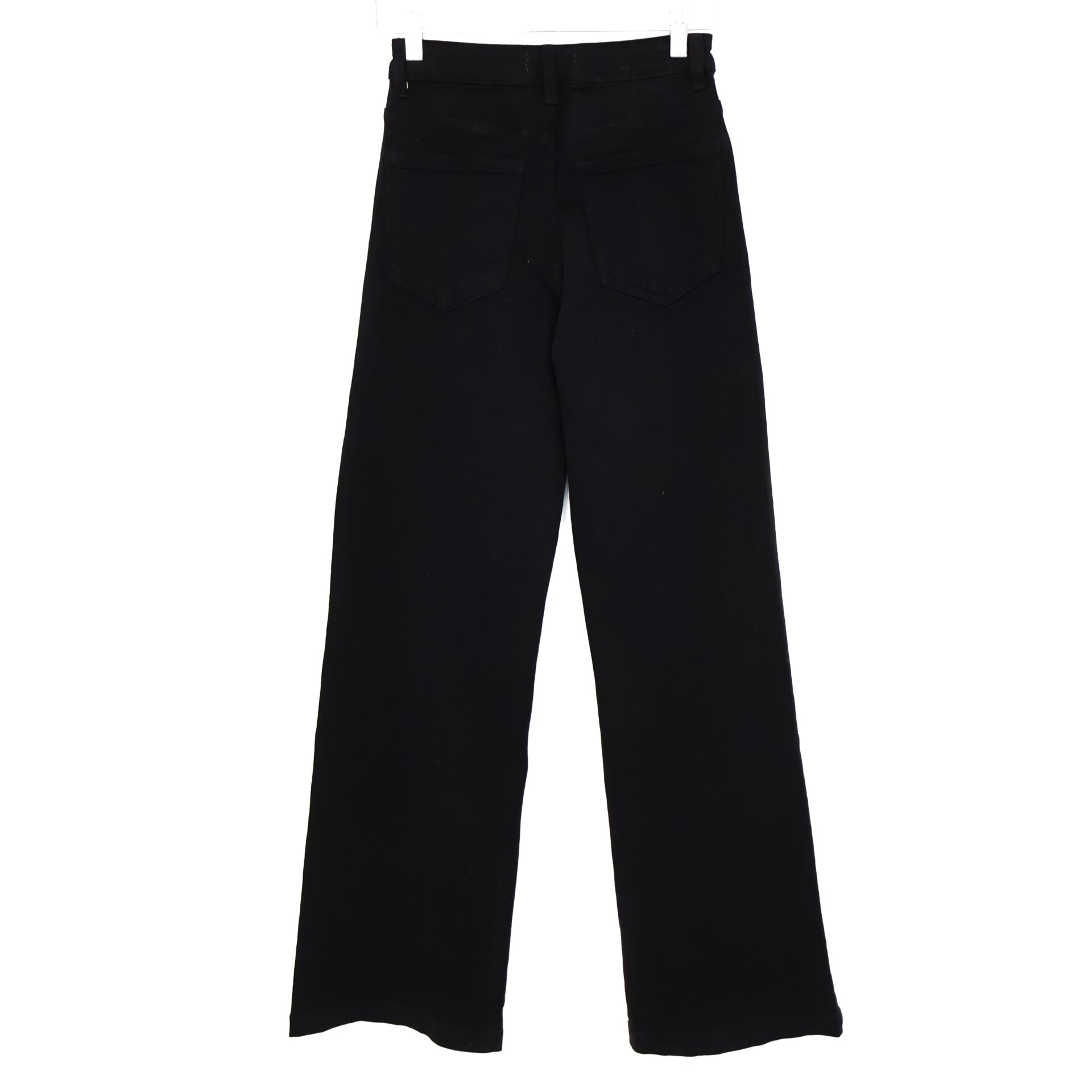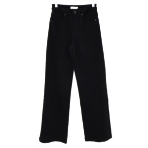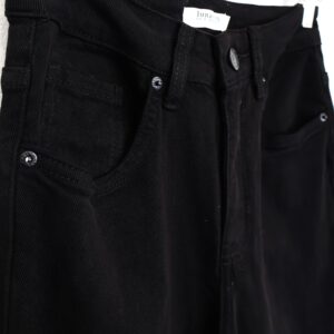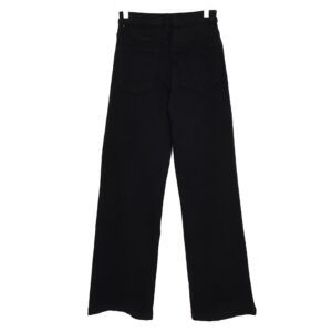 Jeans negro con corte ancho (wide leg) y tiro alto. 5 Bolsillos. Cierre frontal con cremallera y botón. Detalle de bajo rematado.