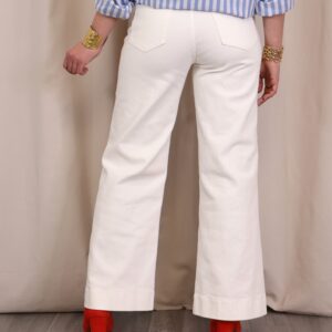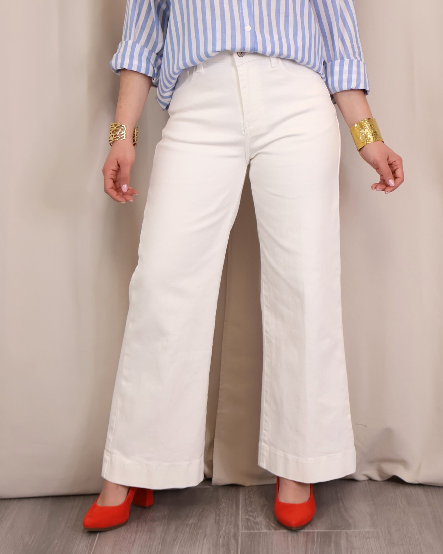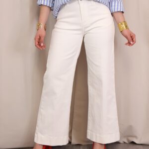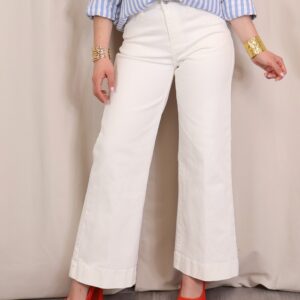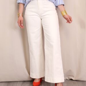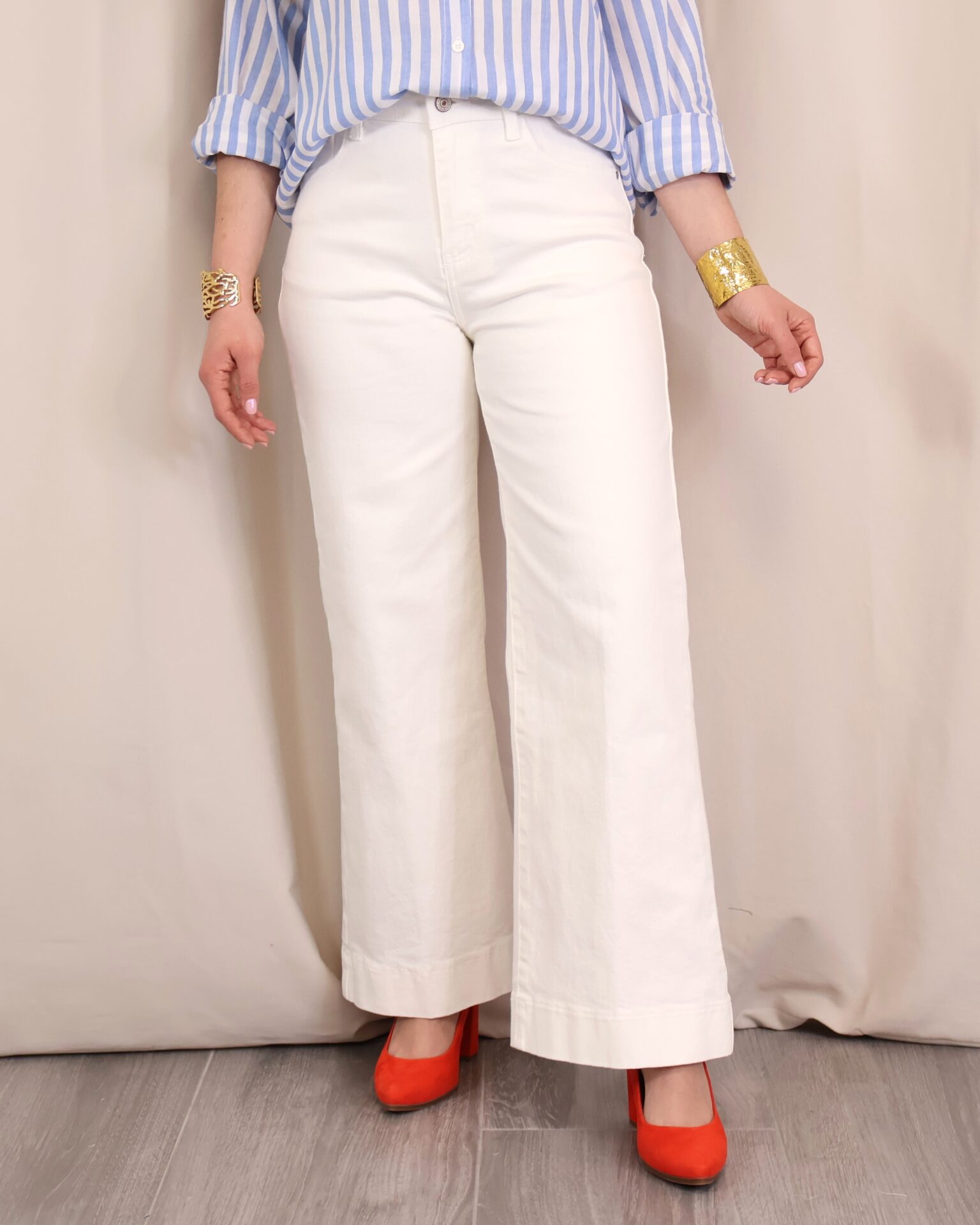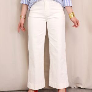 Jeans de corte recto y cropped en color blanco, perfectos para un estilo actual y versátil. Su diseño de tiro alto realza la silueta y aporta comodidad durante todo el día.