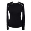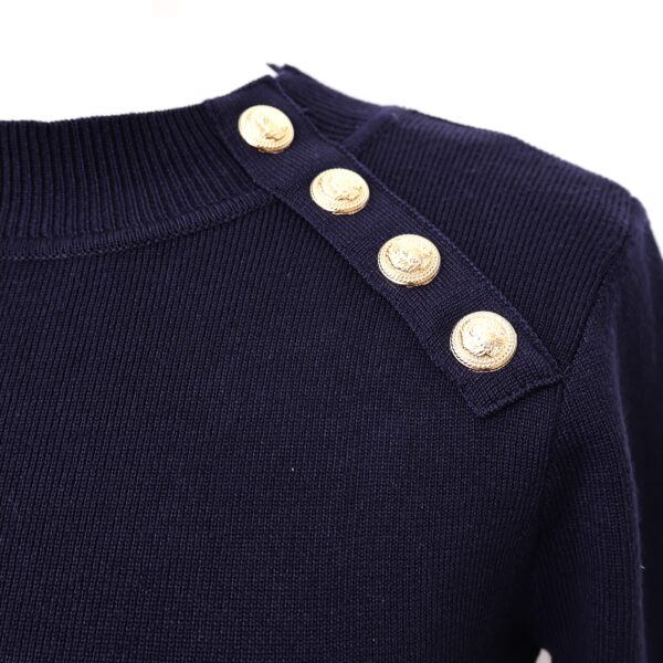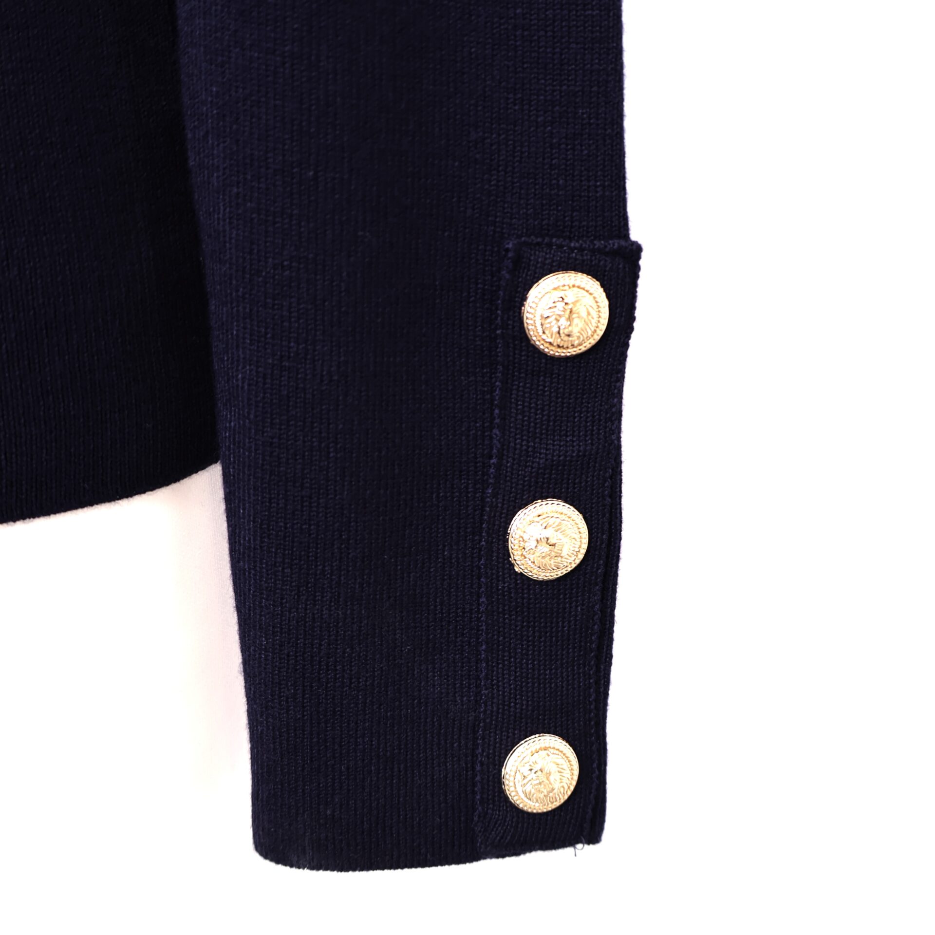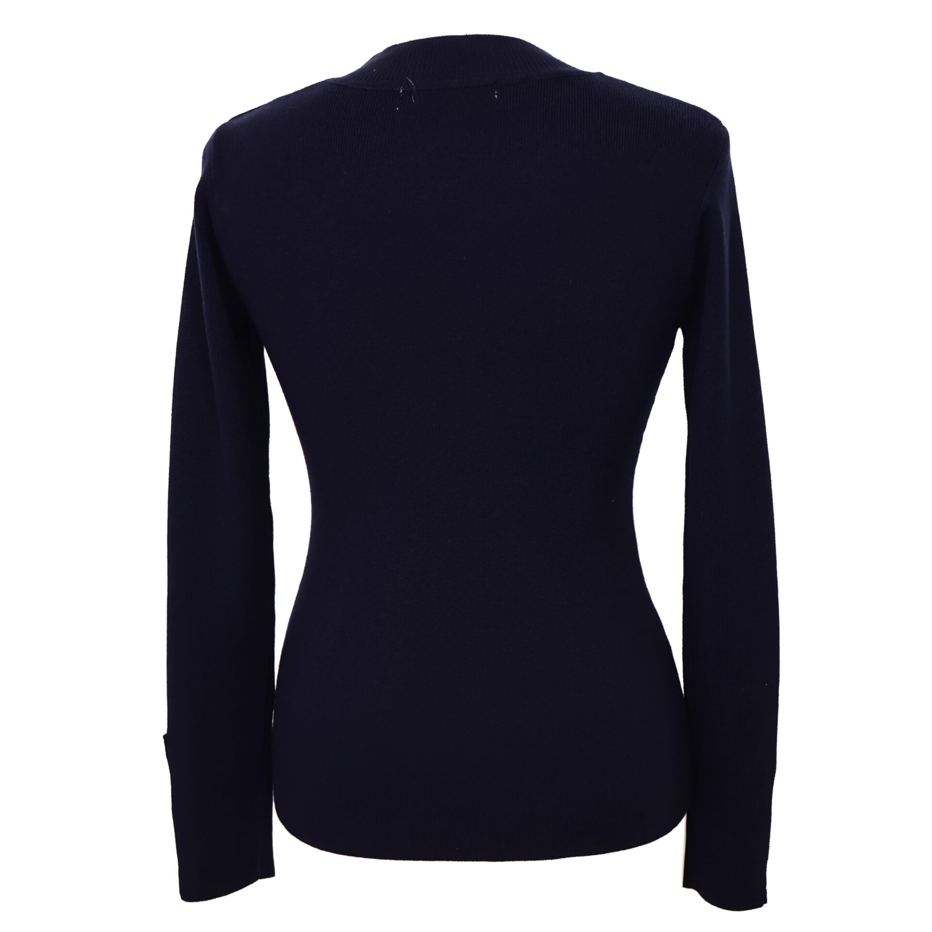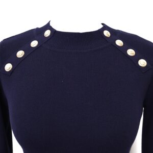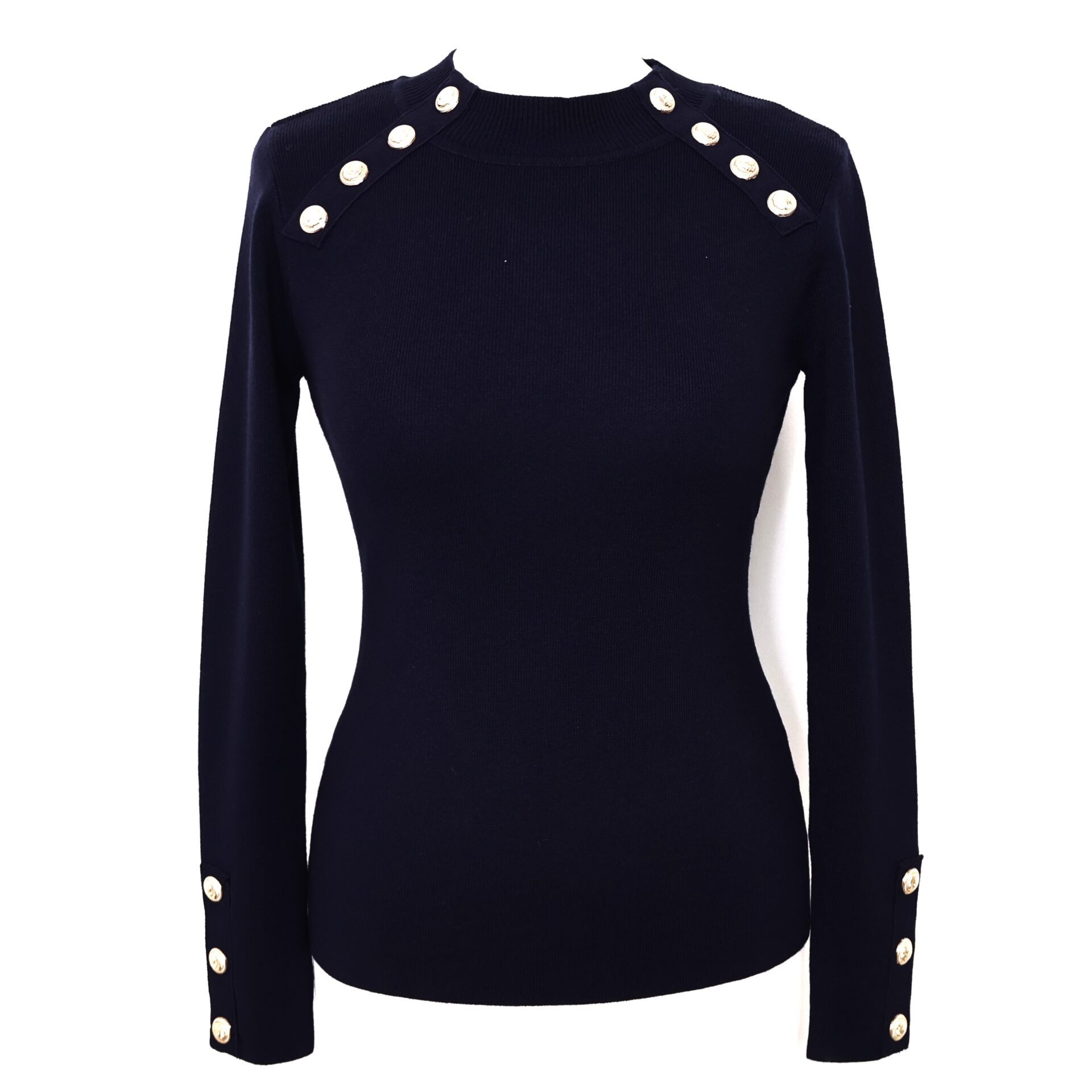 Jersey azul marino de punto elástico. Cuello redondo. Botones decorativos en pecho y mangas.