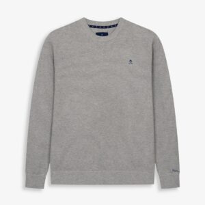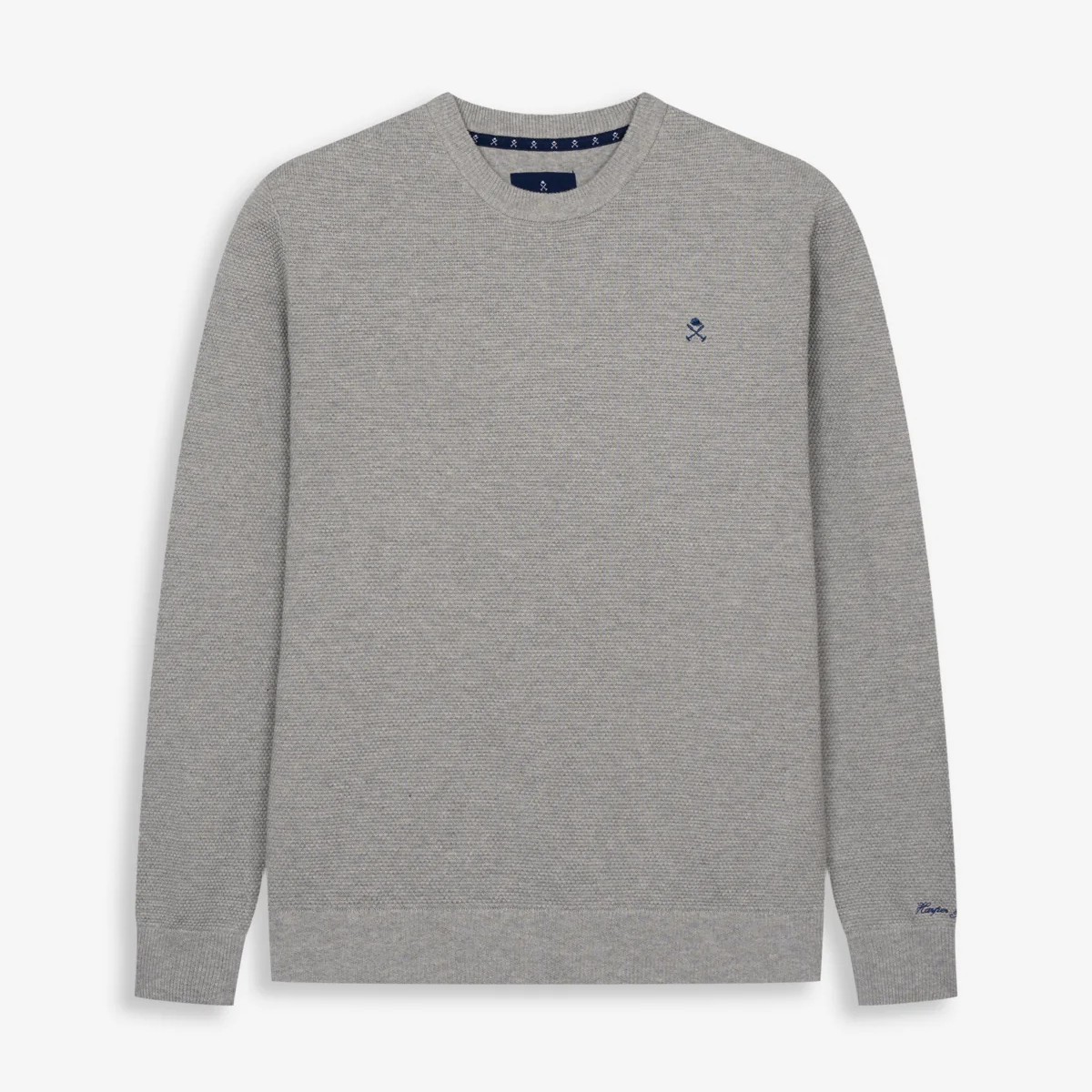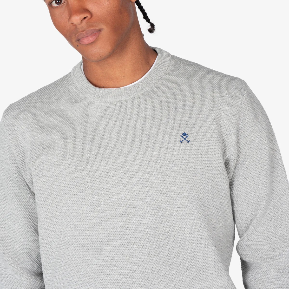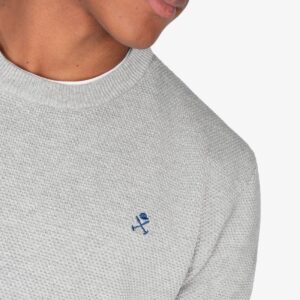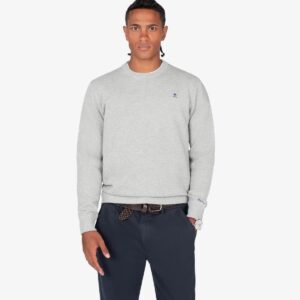 Jersey de cuello redondo confeccionado en 100% algodón con textura piqué, aportando un toque sofisticado. Cuenta con terminaciones acanaladas en cuello, puños y bajo, y el logo bordado en el pecho como detalle icónico.