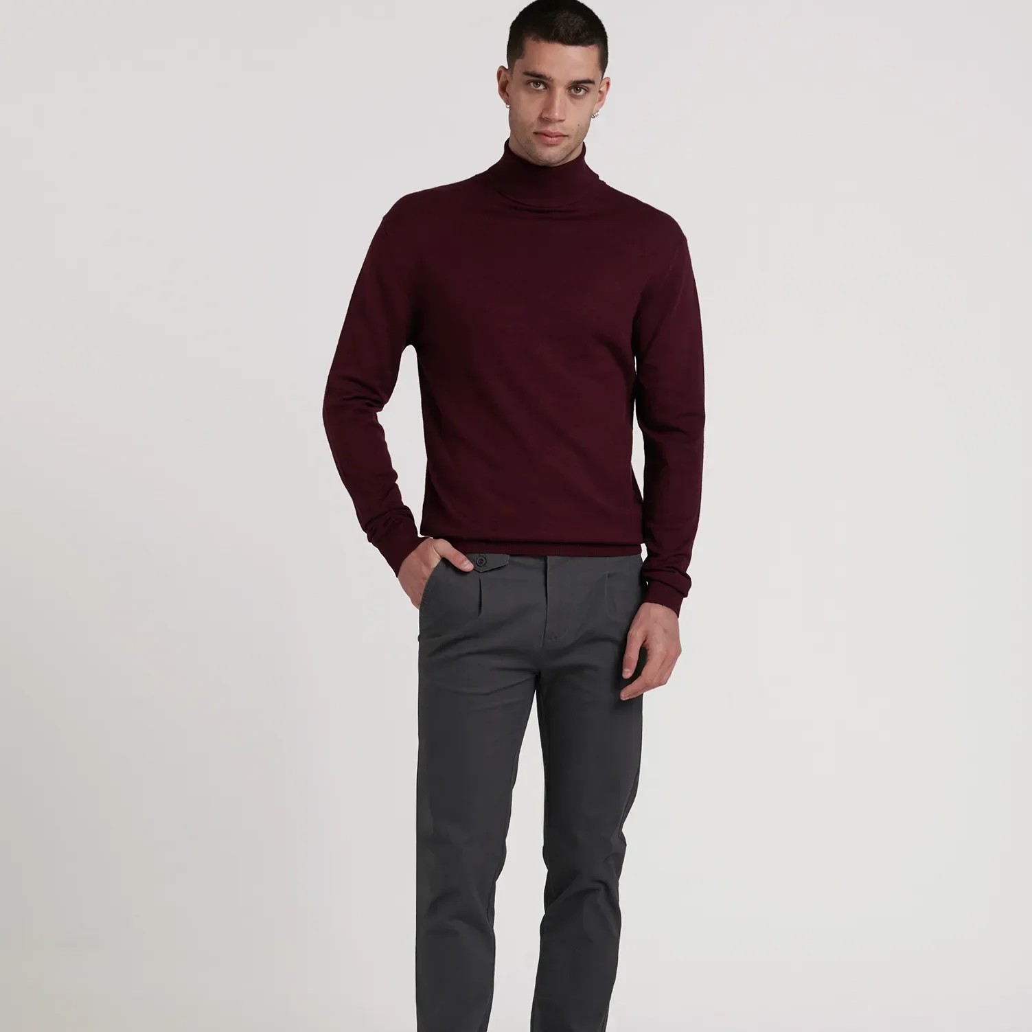 El jersey de cuello alto para hombre es una prenda esencial para los días más fríos, combinando estilo y confort en un diseño atemporal. Su tejido suave y su ajuste elegante lo convierten en una pieza perfecta para cualquier ocasión, desde un look casual hasta uno más formal.