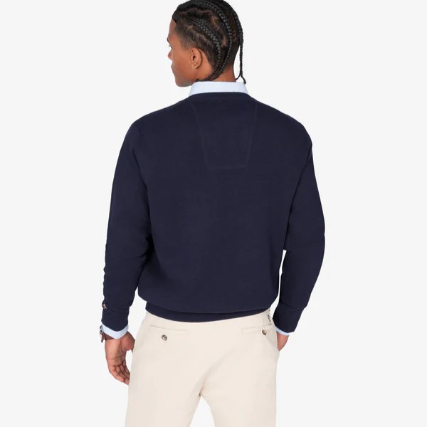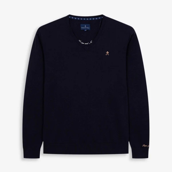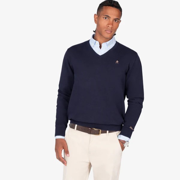 Jersey básico de cuello en pico confeccionado en 100% algodón, que aporta calidez y ligereza a partes iguales. Presenta terminaciones acanaladas en cuello, puños y bajo, junto con el icónico logo bordado al pecho.