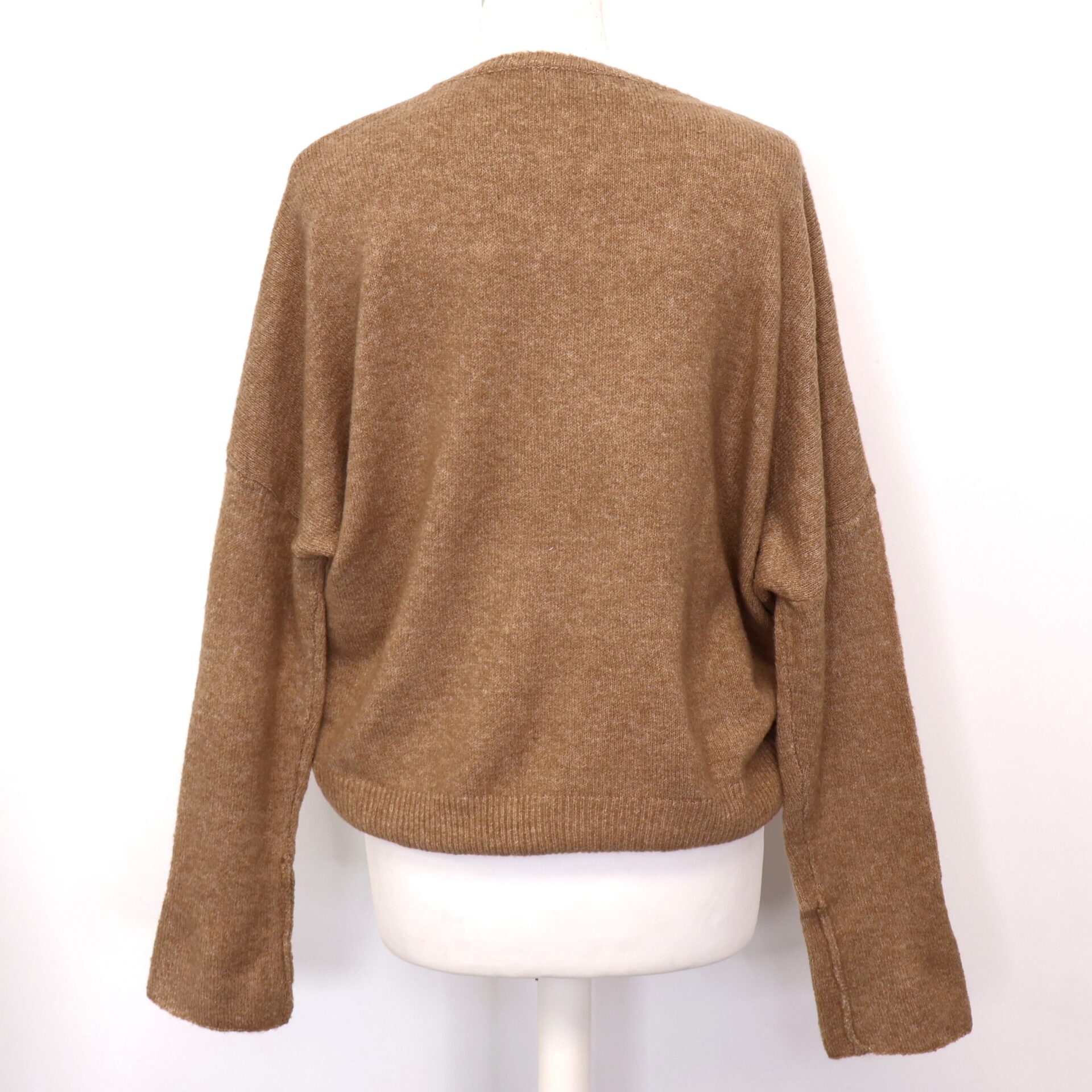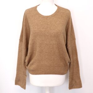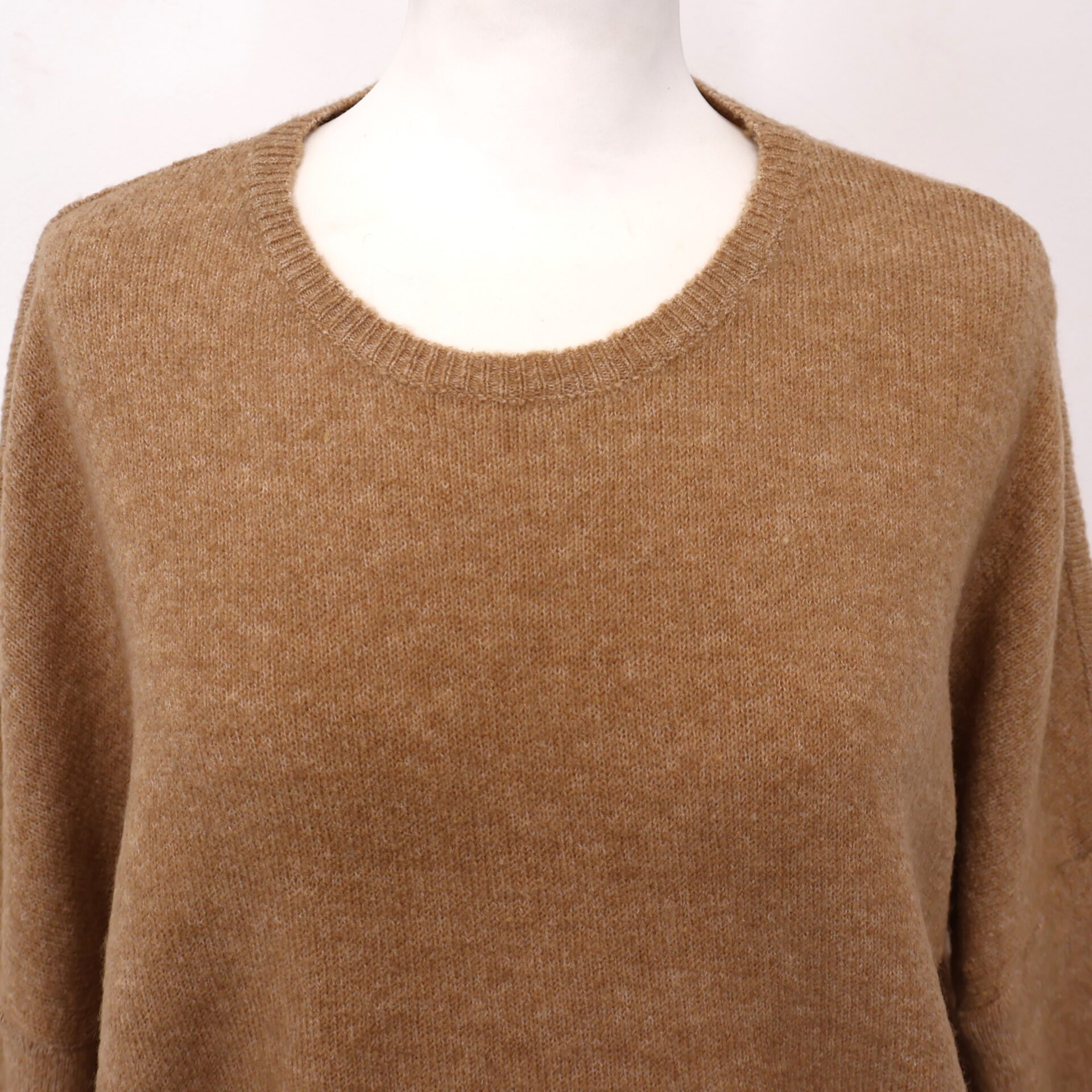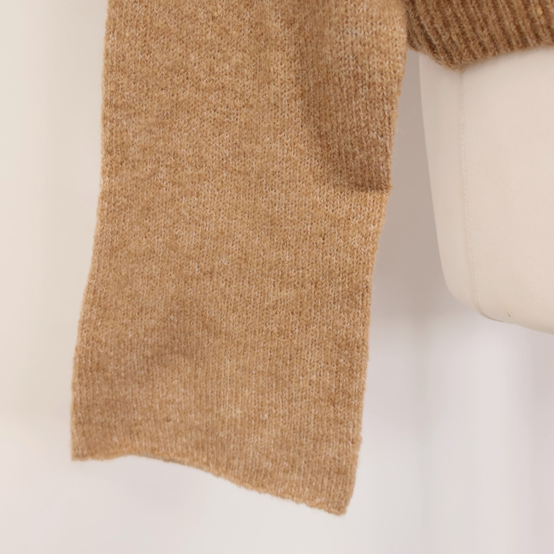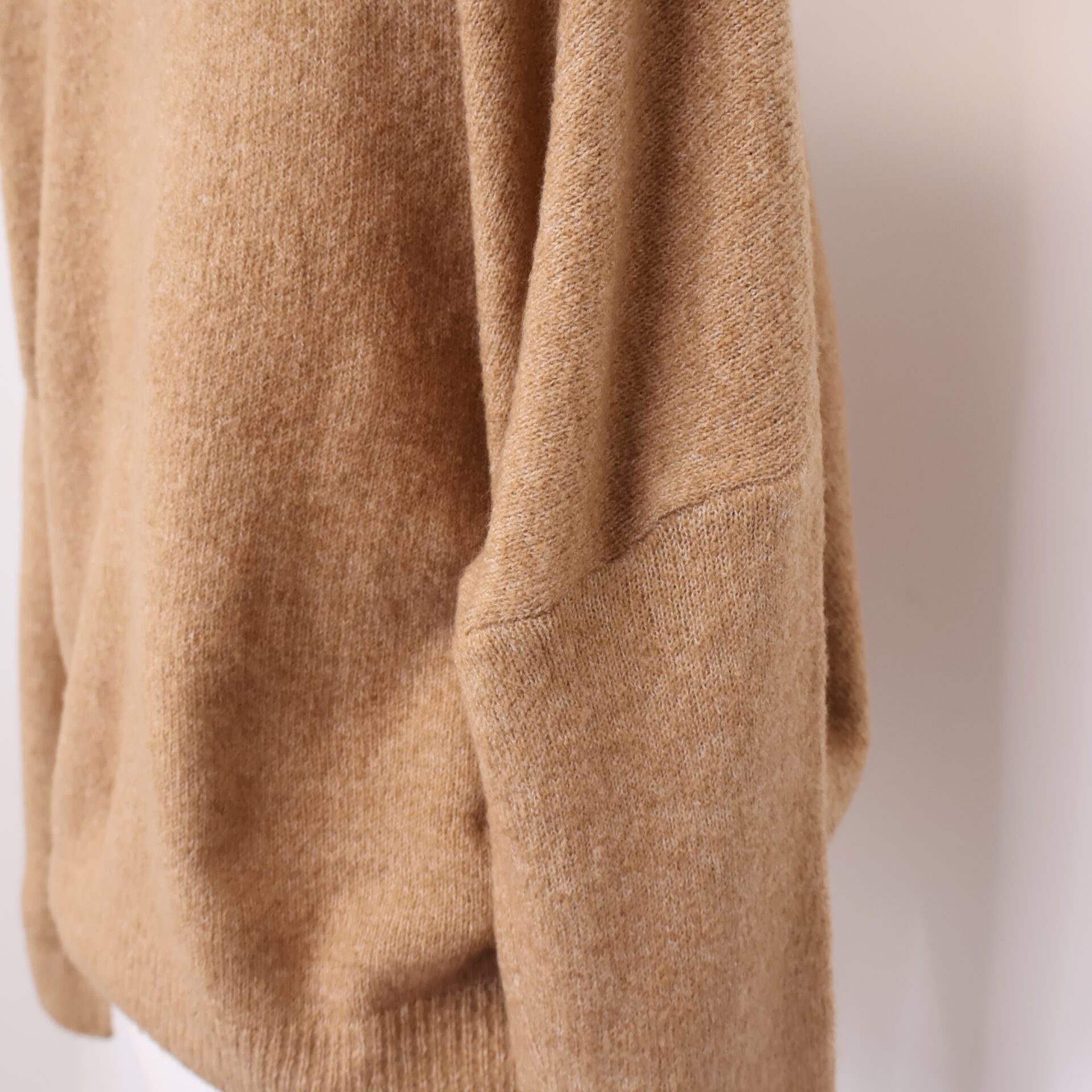 Jersey de punto en color camel con cuello caja, tejido elástico y corte oversize con manga larga caída