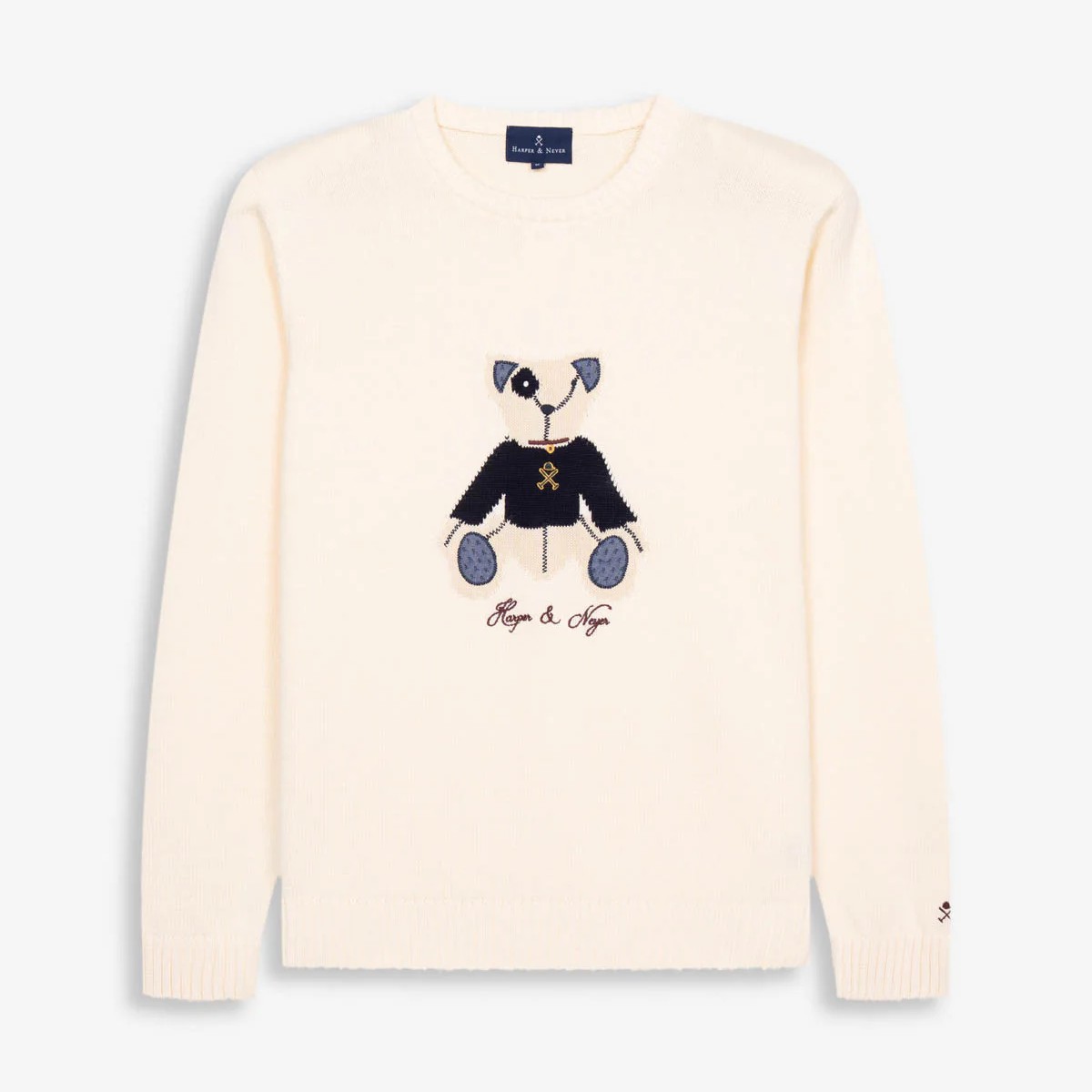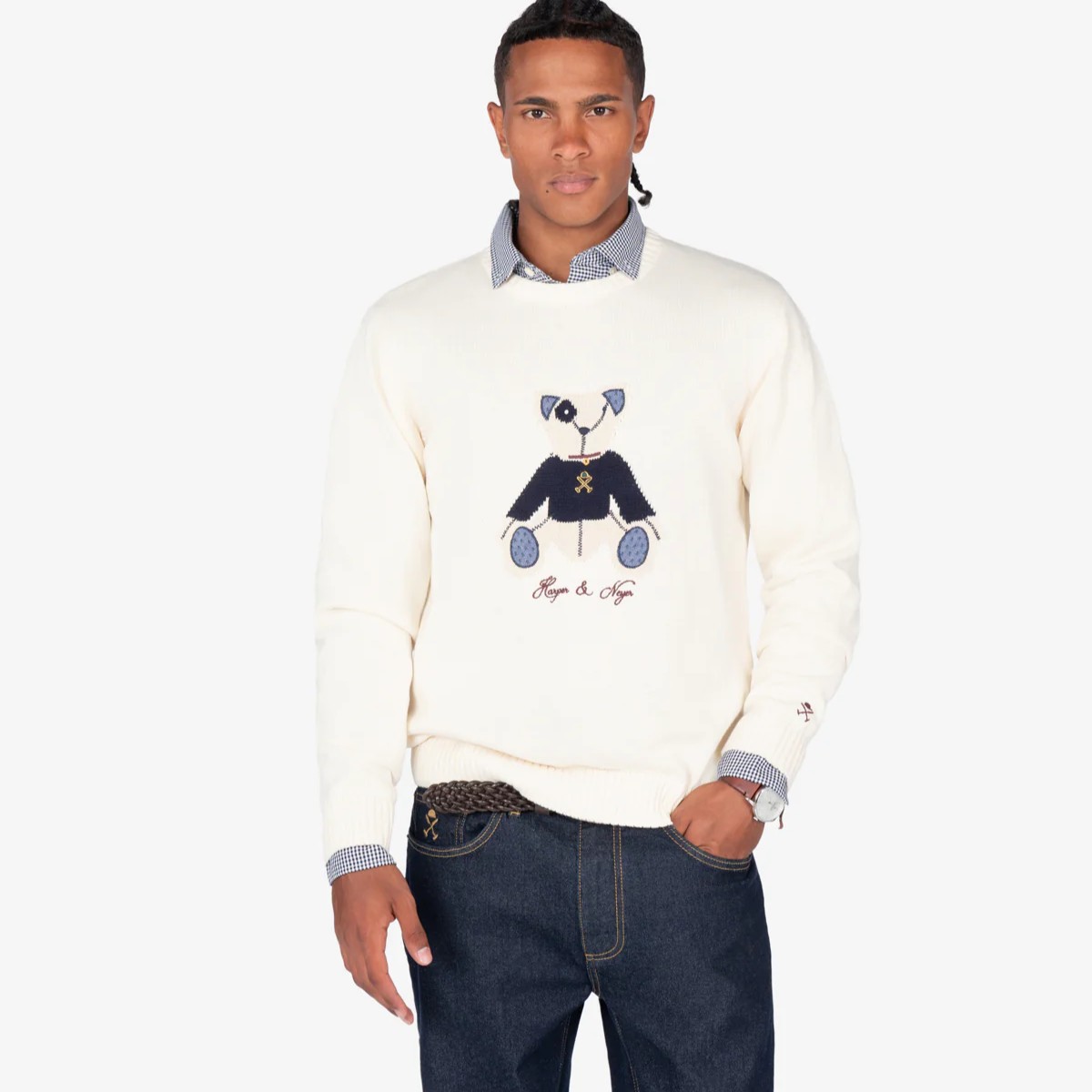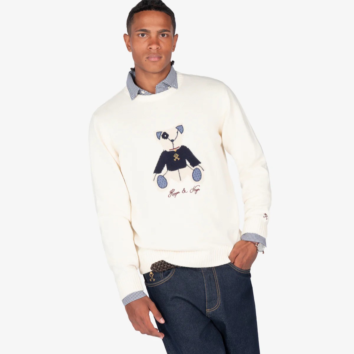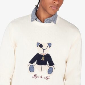 Jersey de cuello redondo confeccionado en 100% algodón que aporta suavidad y transpirabilidad. Su diseño destaca por el bordado de nuestro icónico oso Arthur, un detalle que refuerza el espíritu preppy de la colección. Los remates en canalé en cuello, puños y bajo garantizan un ajuste perfecto y mayor durabilidad.
