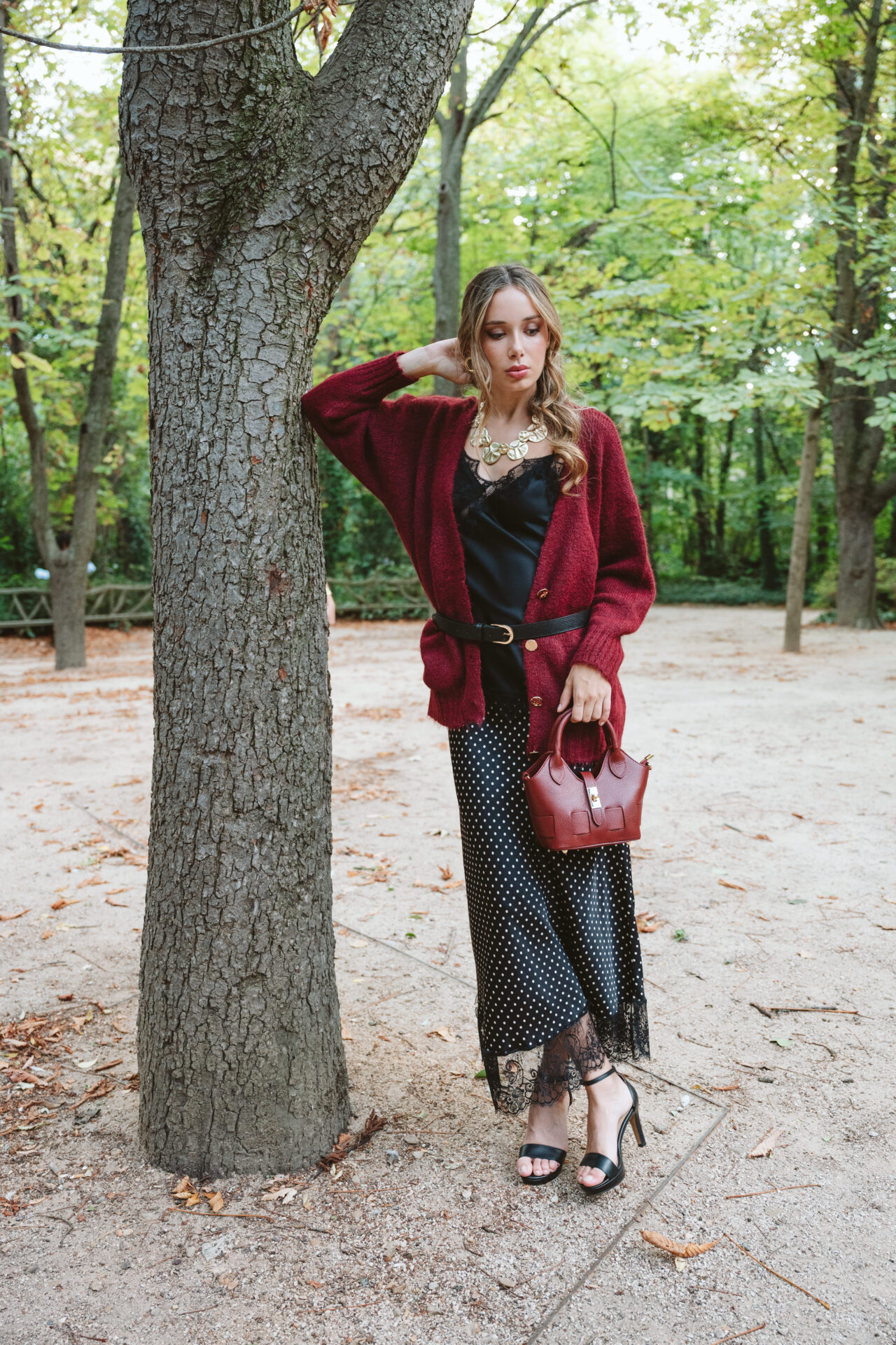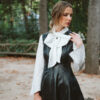 Lencera satinada negra de corte asimétrico con puntilla en el borde del escote. Tirantes ajustables.