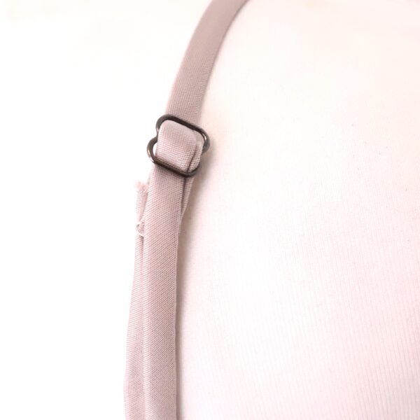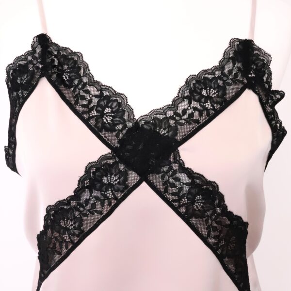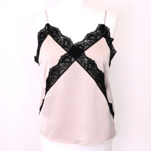 Lencera satinada nude con puntilla cruzada en la parte del pecho a contraste en negro. Tirantes ajustables.