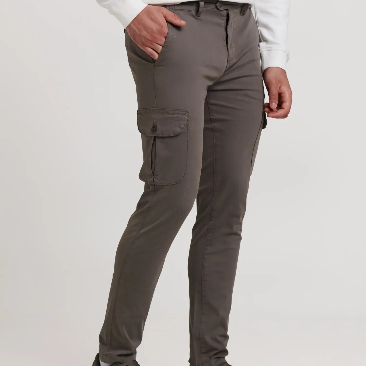 El pantalón chino cargo Z07 es uno de nuestros básicos más demandados por su diseño versátil y la comodidad que ofrece. Con un corte slim que estiliza la figura, aporta un ajuste moderno sin renunciar a la libertad de movimiento.