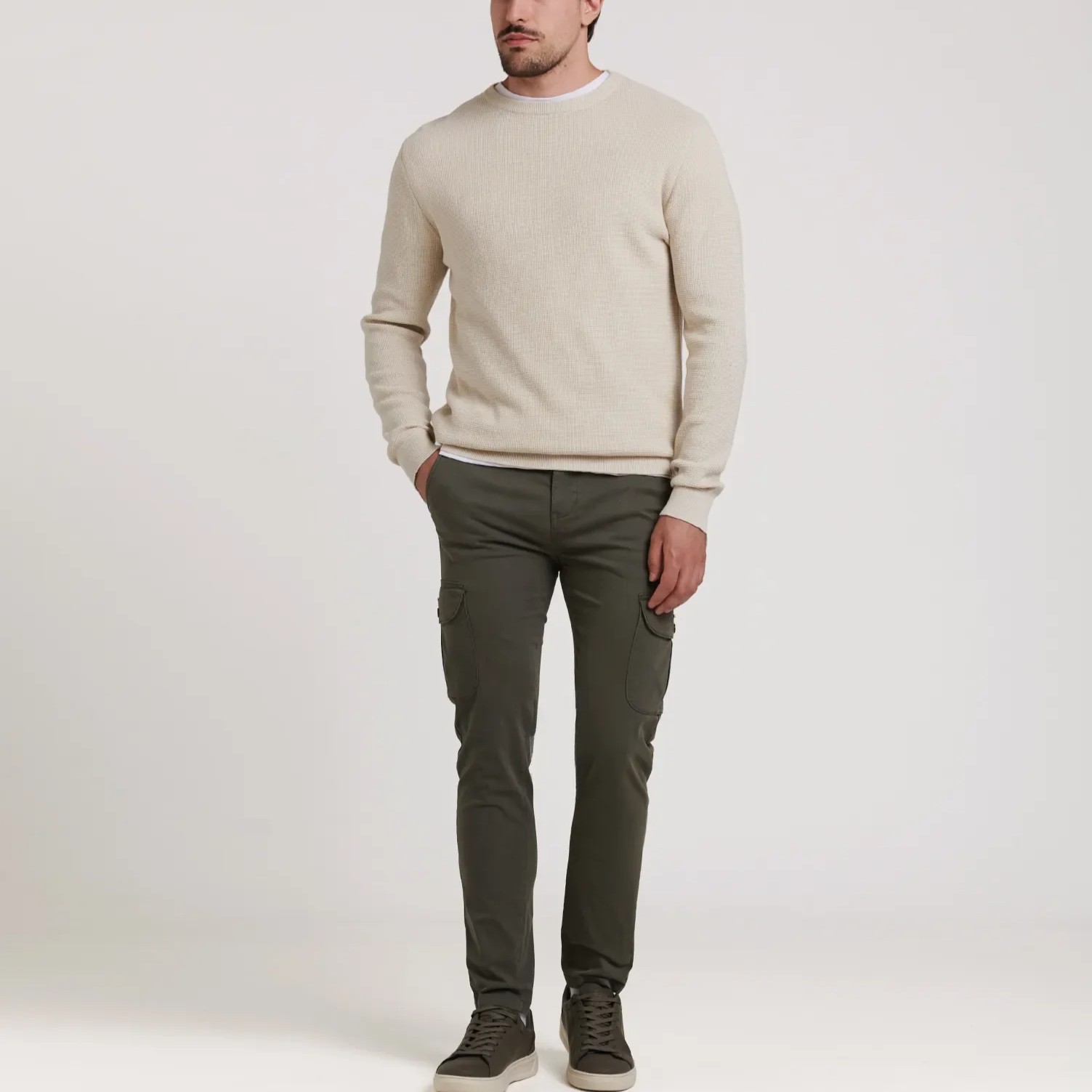 El pantalón chino cargo Z07 es uno de nuestros básicos más demandados por su diseño versátil y la comodidad que ofrece. Con un corte slim que estiliza la figura, aporta un ajuste moderno sin renunciar a la libertad de movimiento.