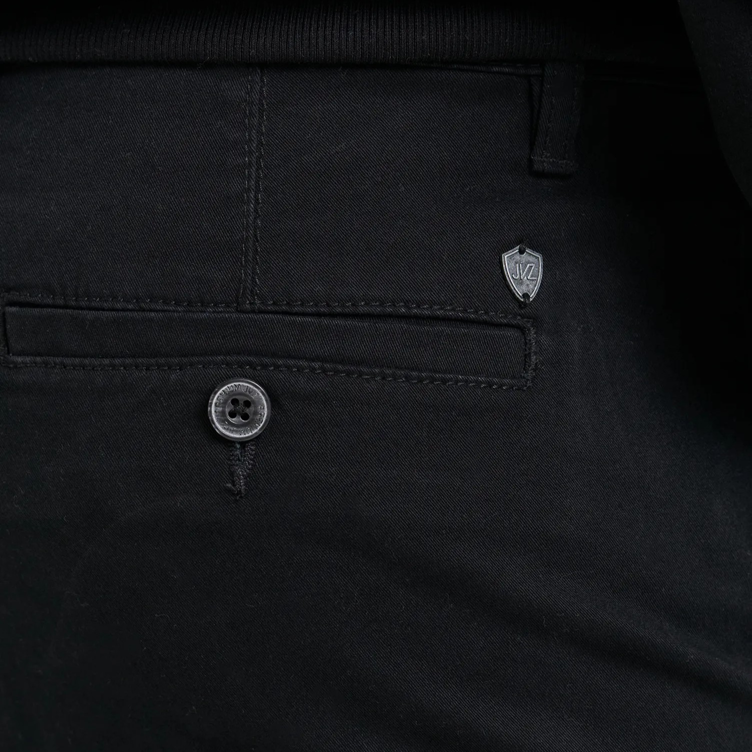• Bolsillos traseros de vivo con cierre de botón.