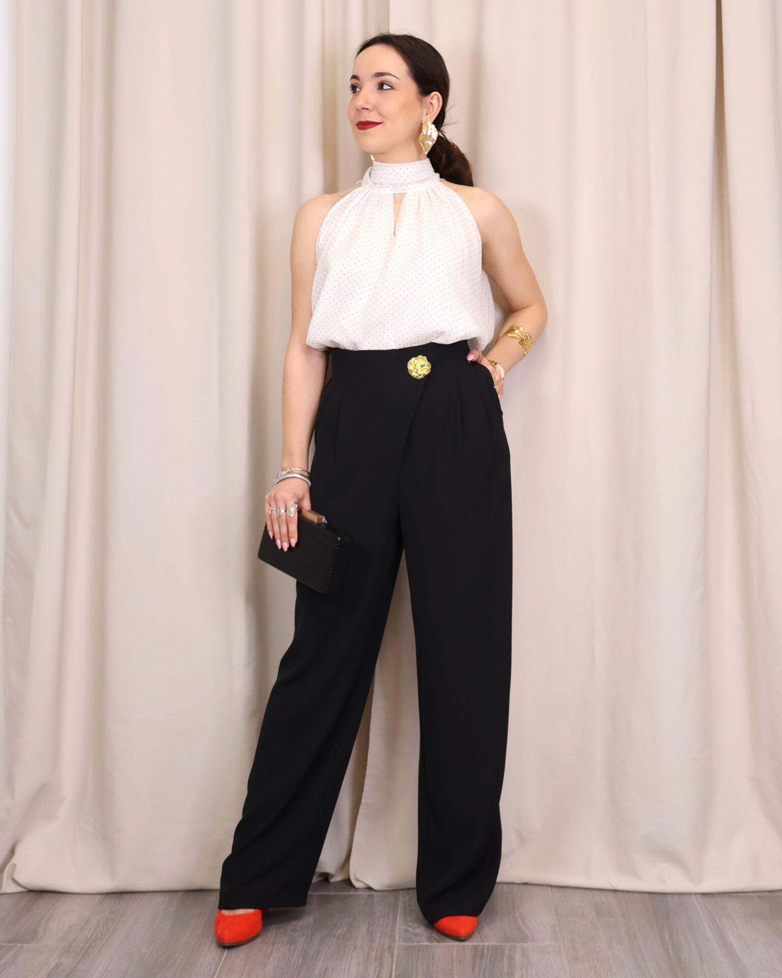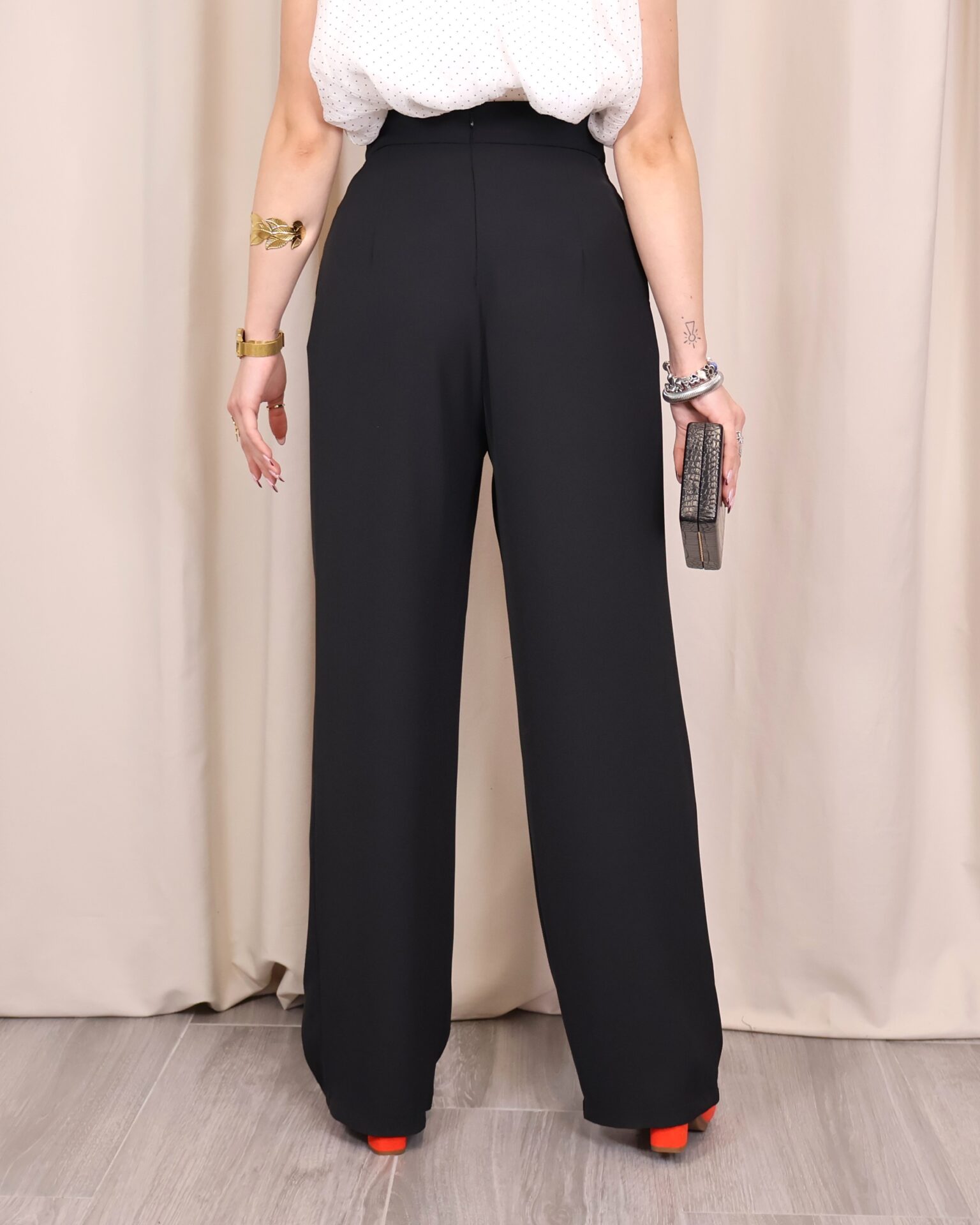 Ideal para combinar con tacones de color o sandalias metalizadas, este pantalón es la opción perfecta para lograr looks modernos, elegantes y con personalidad.