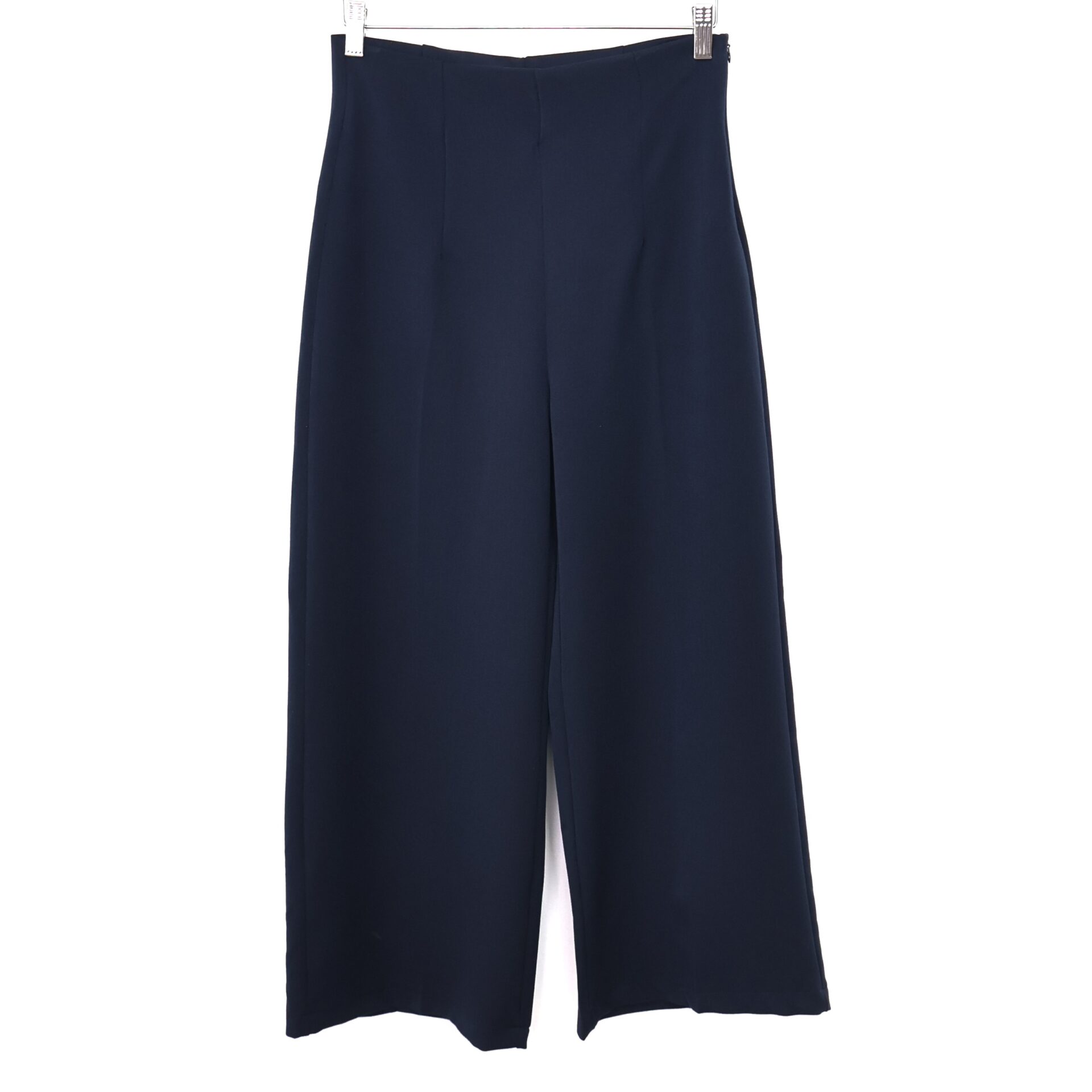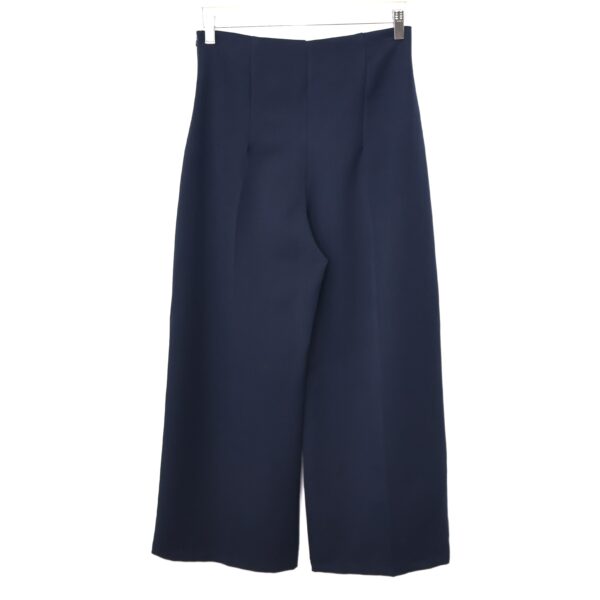 Pantalón azul marino de corte cropped y tiro alto. Cierre lateral con cremallera invisible.