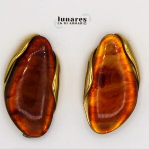 Pendientes nacarados en tonos caramelo y dorado. Forma ovalada.