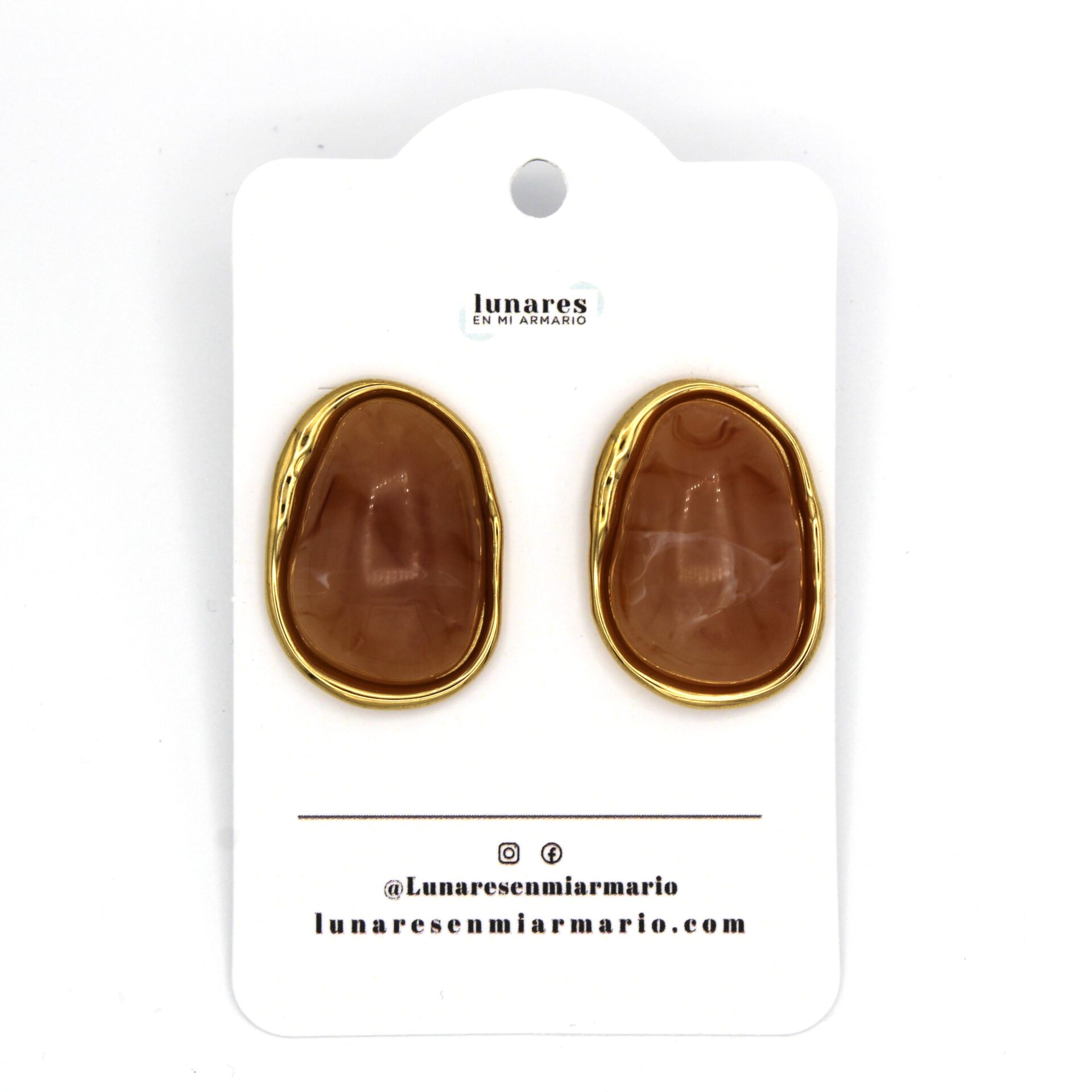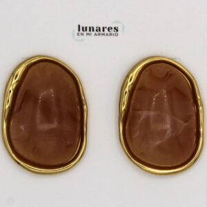 Pendientes nacarados en tonos ámbar y dorado. Forma ovalada.