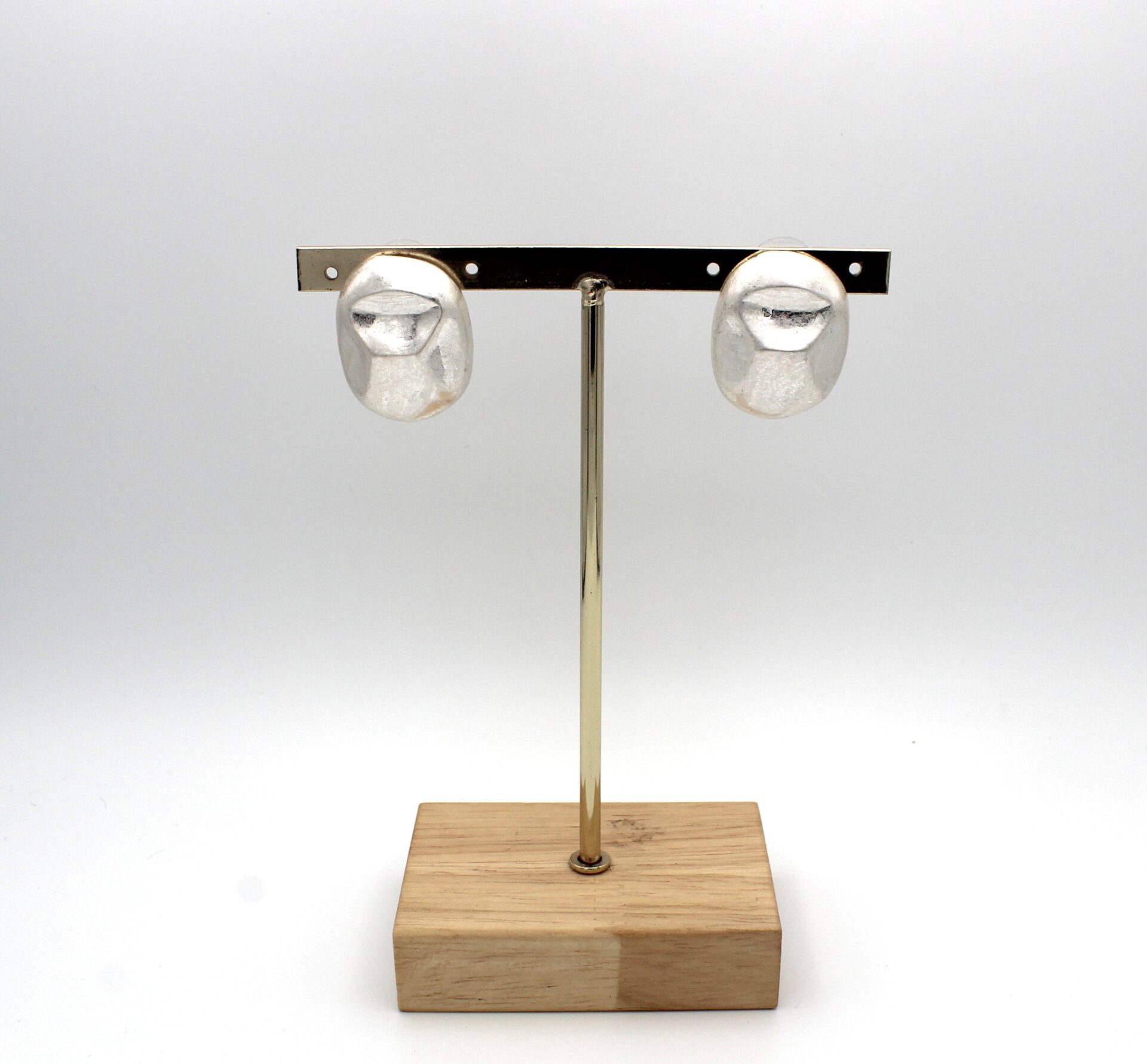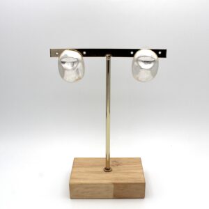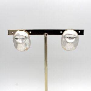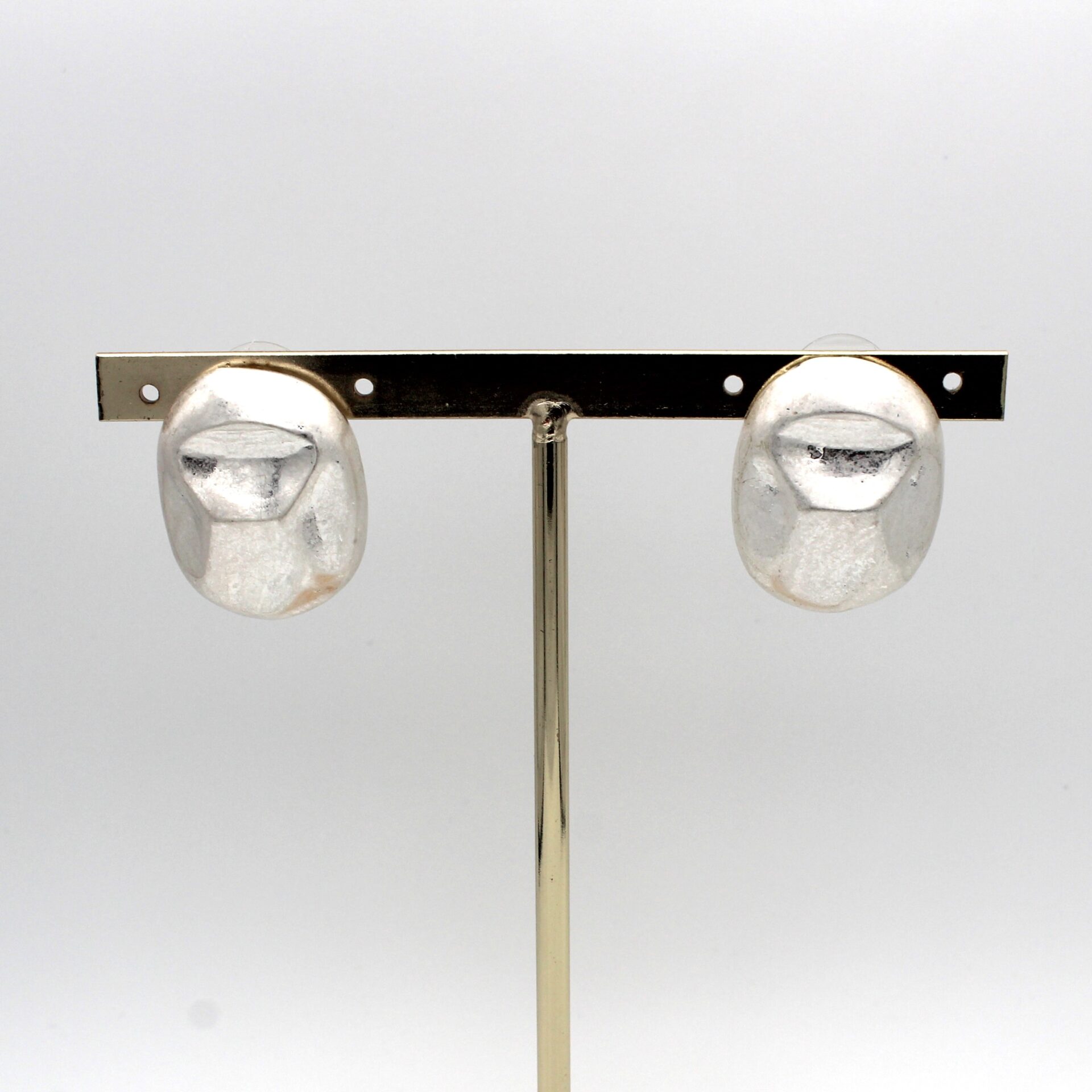 Pendientes en forma circular alargada en tono plata desgastado. Cierre a presión.