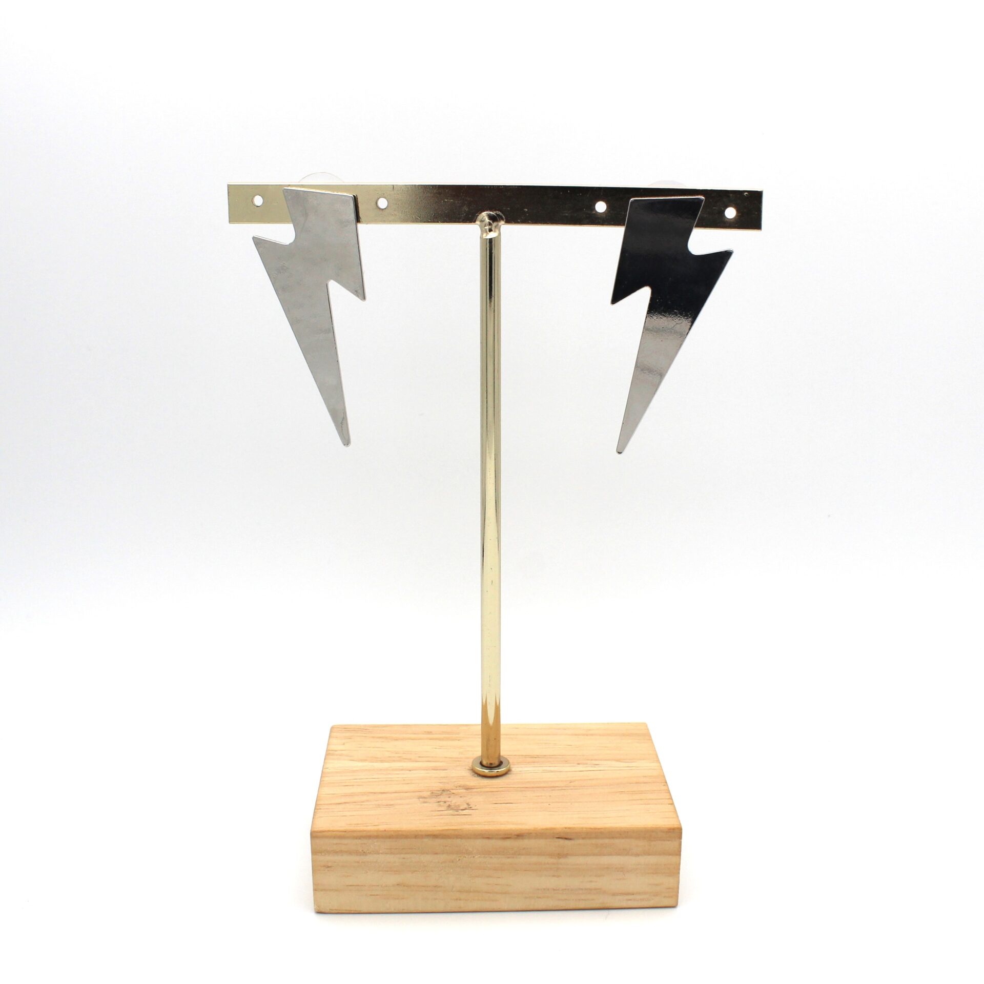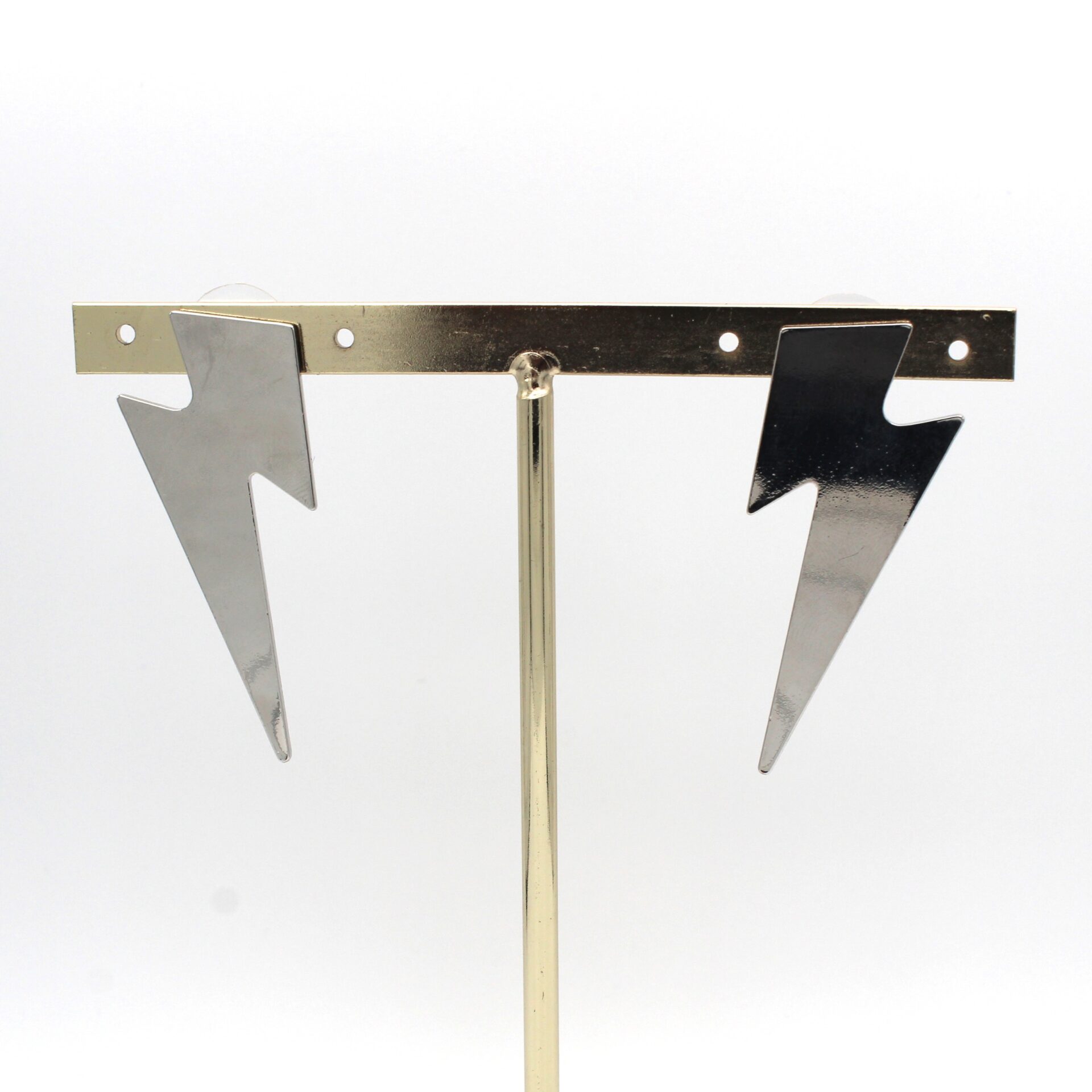 Pendientes en forma de rayo en tono plata. Cierre a presión.