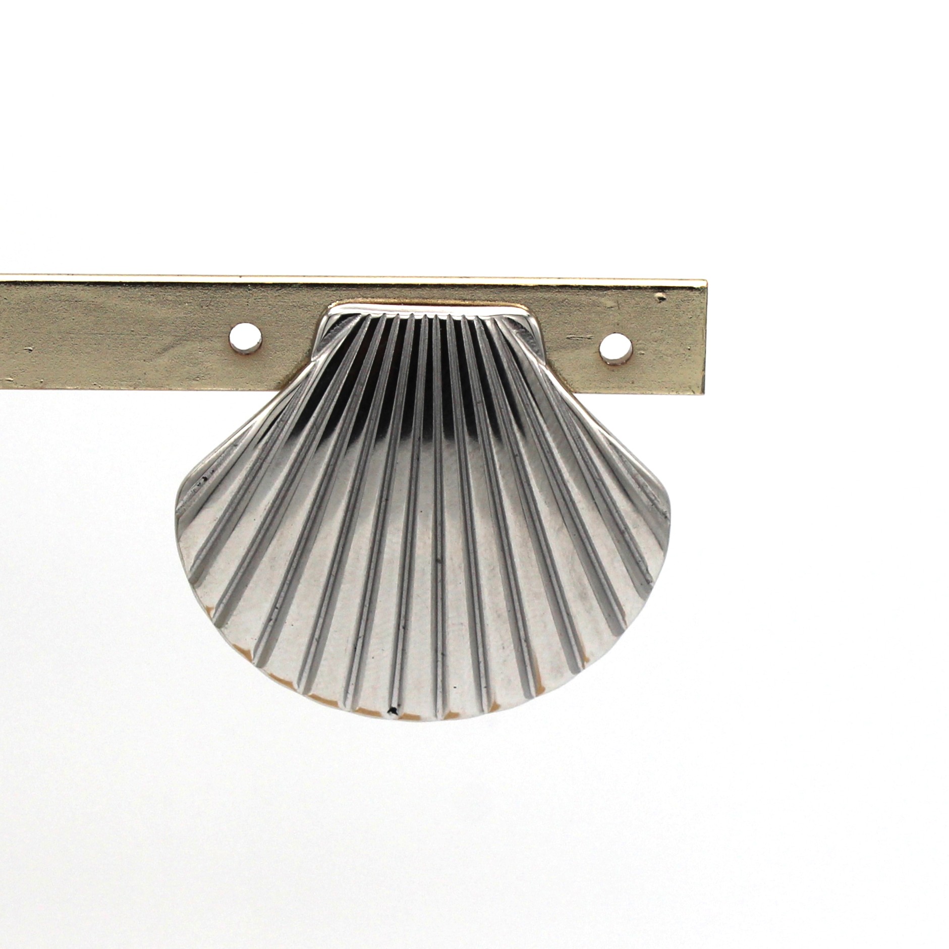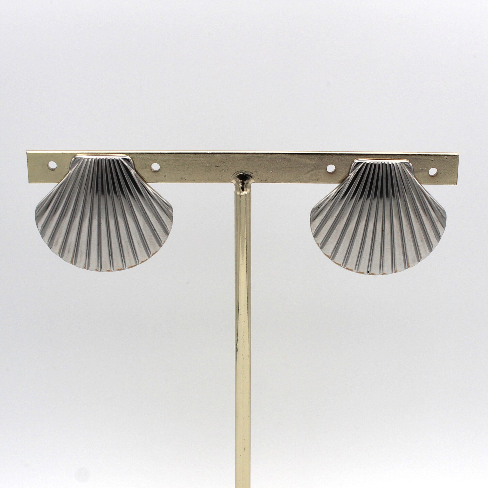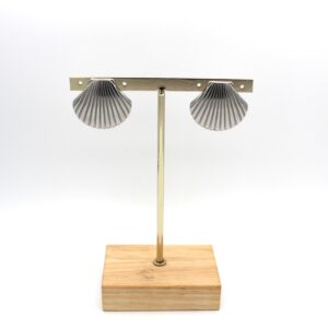 Pendientes en forma de concha en tono plata con relieve. Cierre a presión.