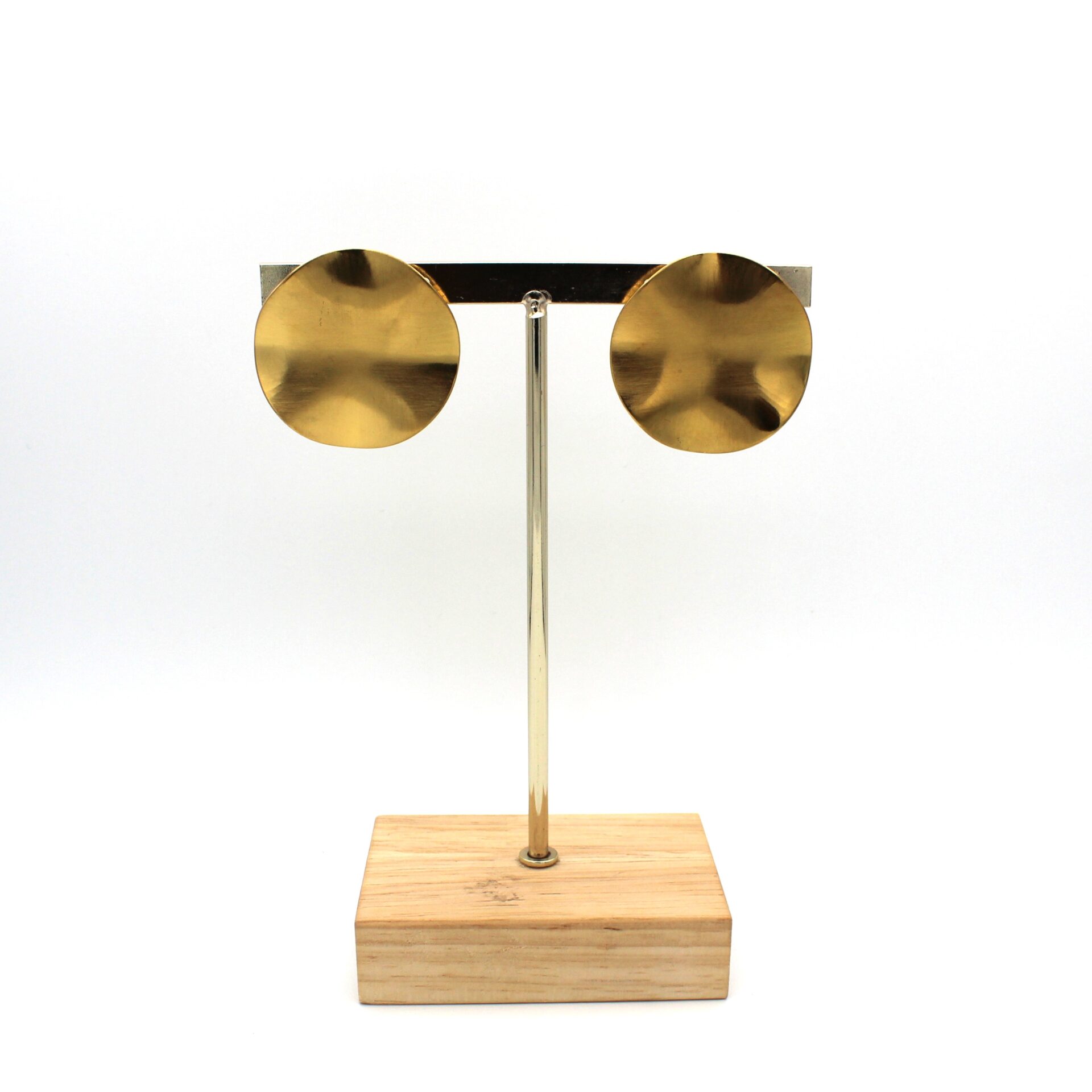 Pendientes en forma de círculo en tono dorado. Cierre a presión.