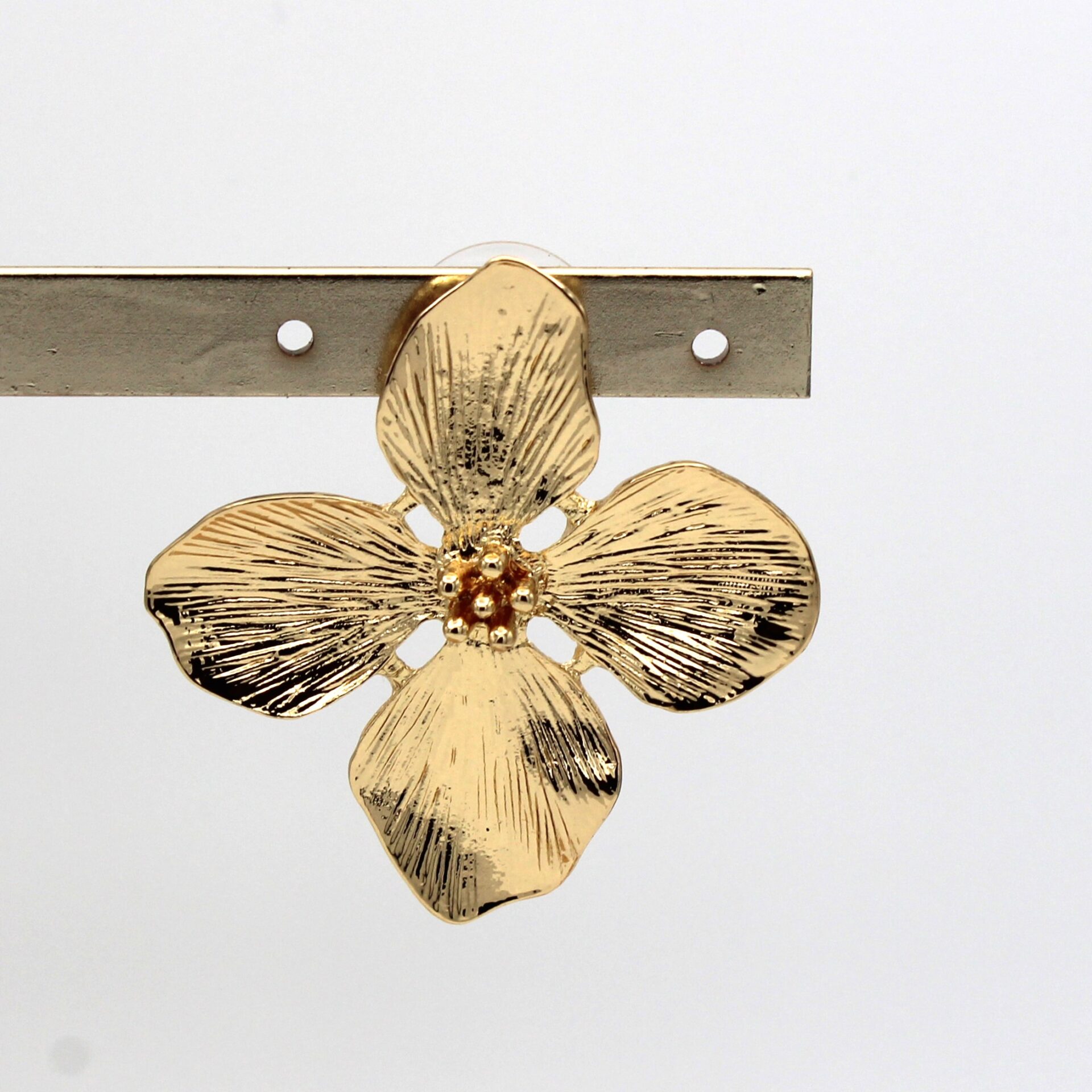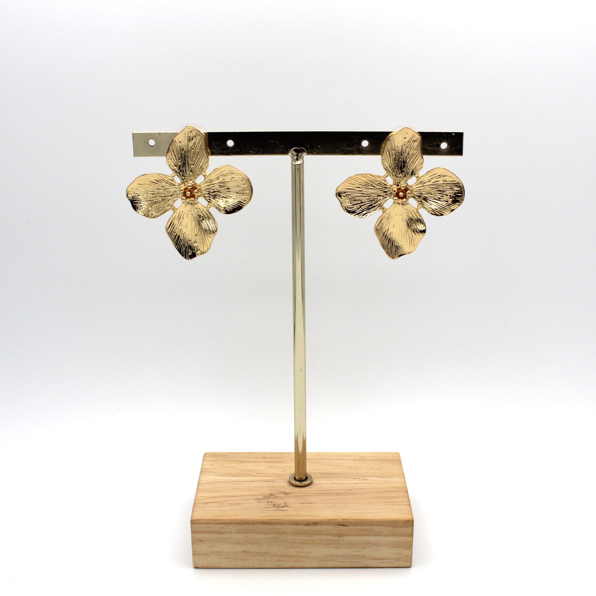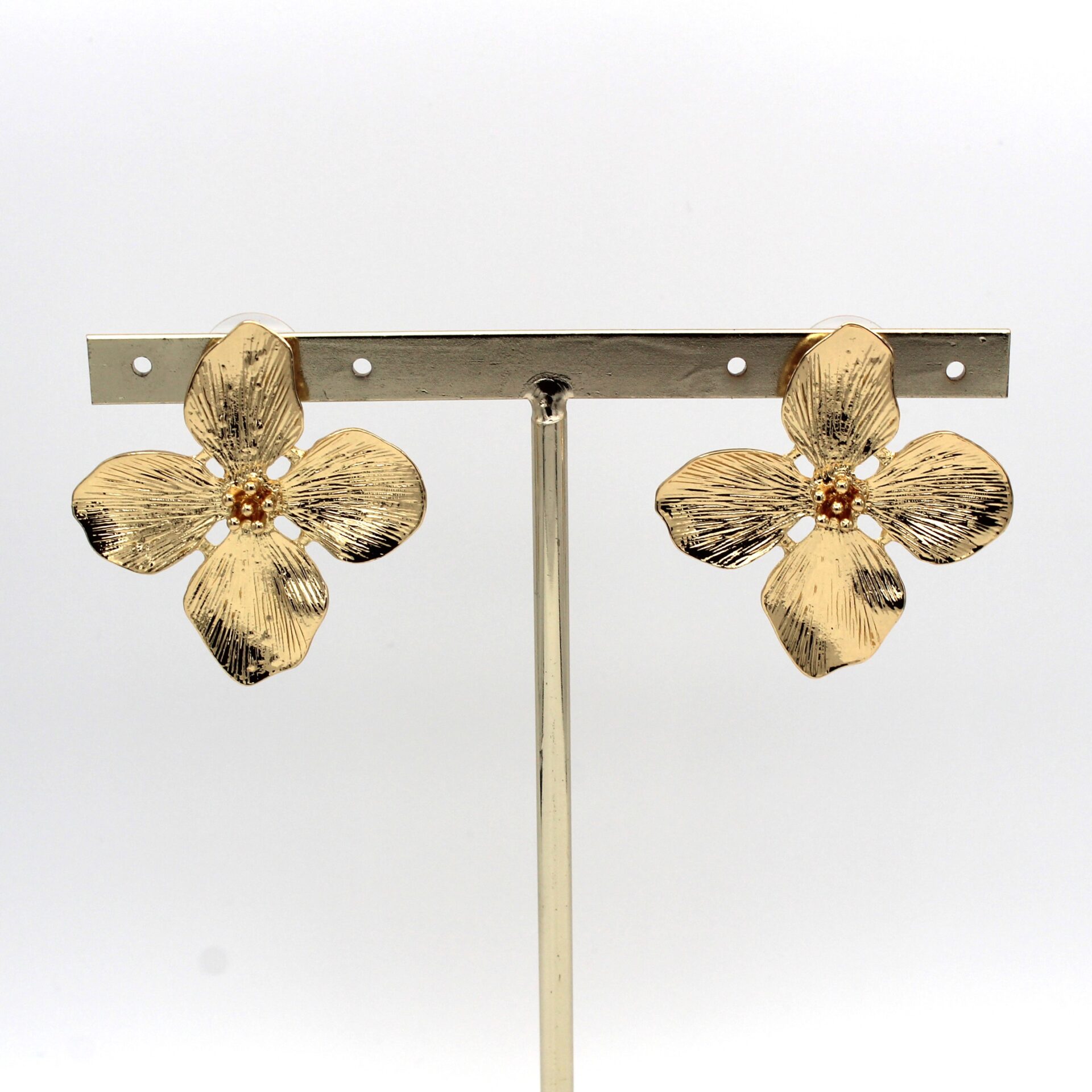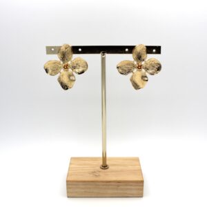 Pendientes en forma de flor en tono dorado con relieve. Cierre a presión.