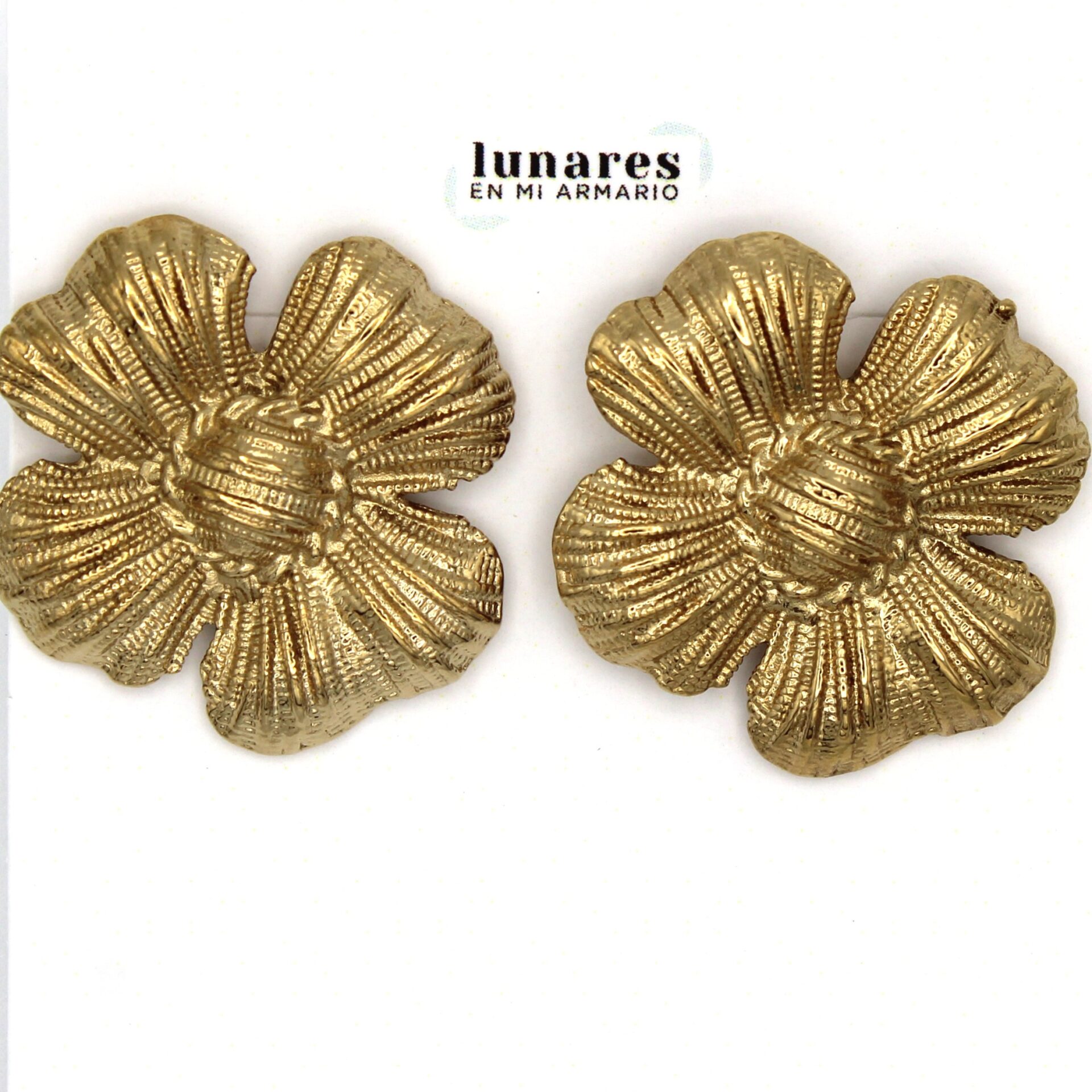Pendientes en forma de flor en tono dorado con relieve. Cierre a presión.