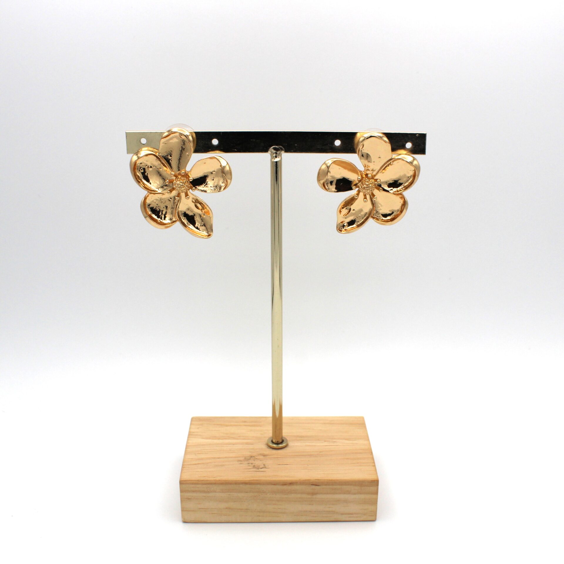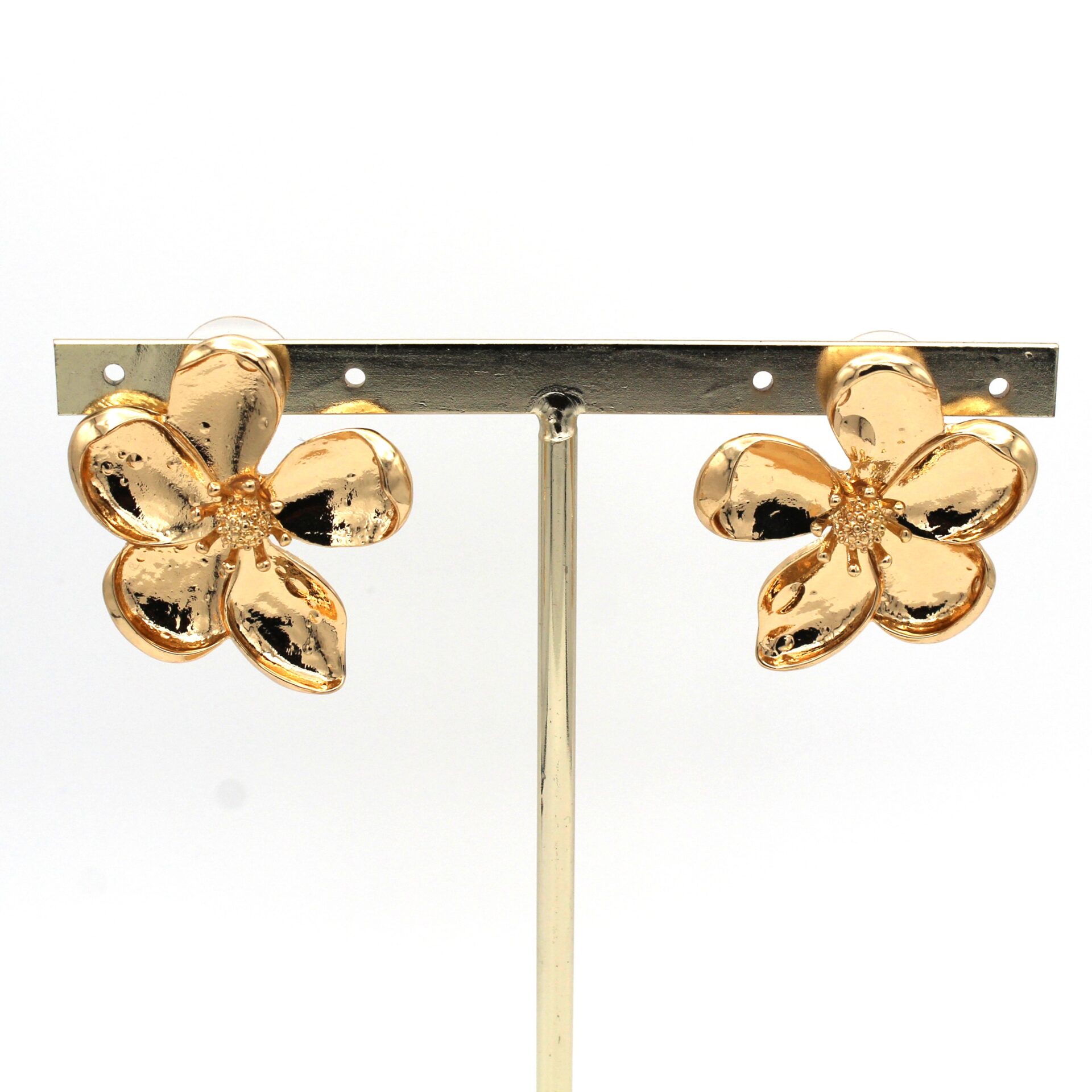 Pendientes en forma de flor en tono dorado con relieve. Cierre a presión.