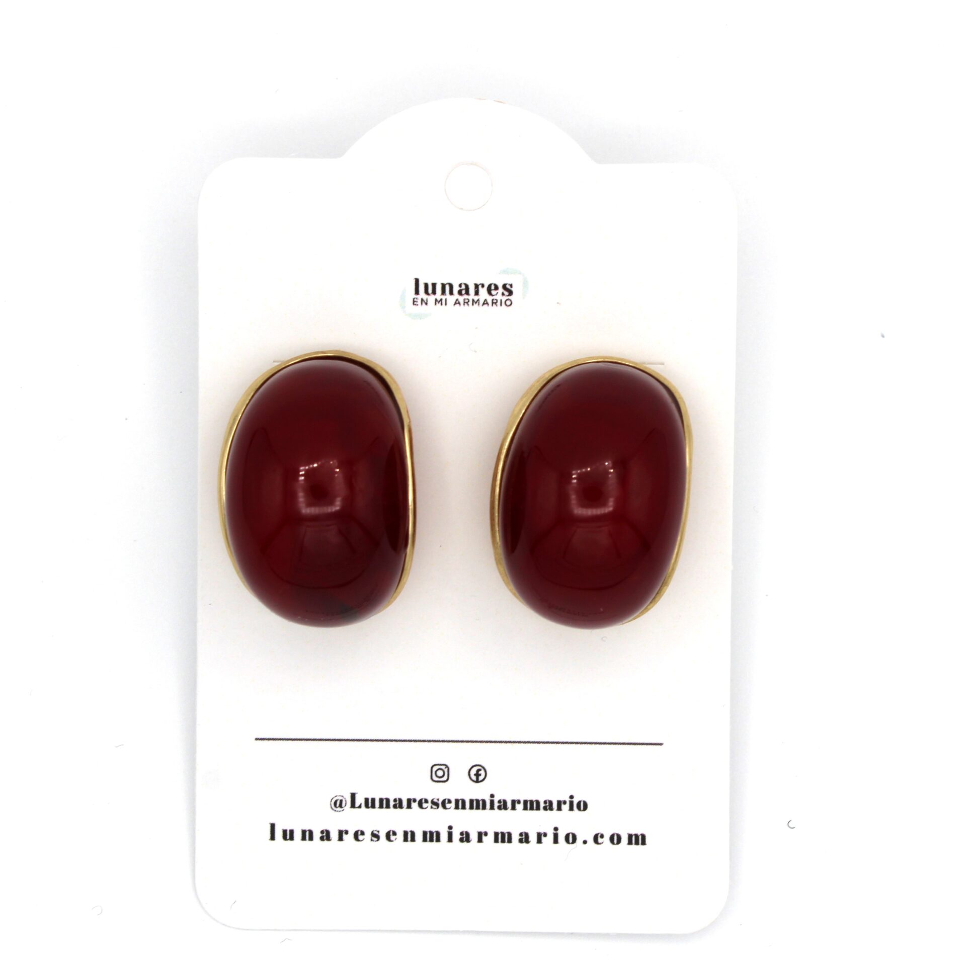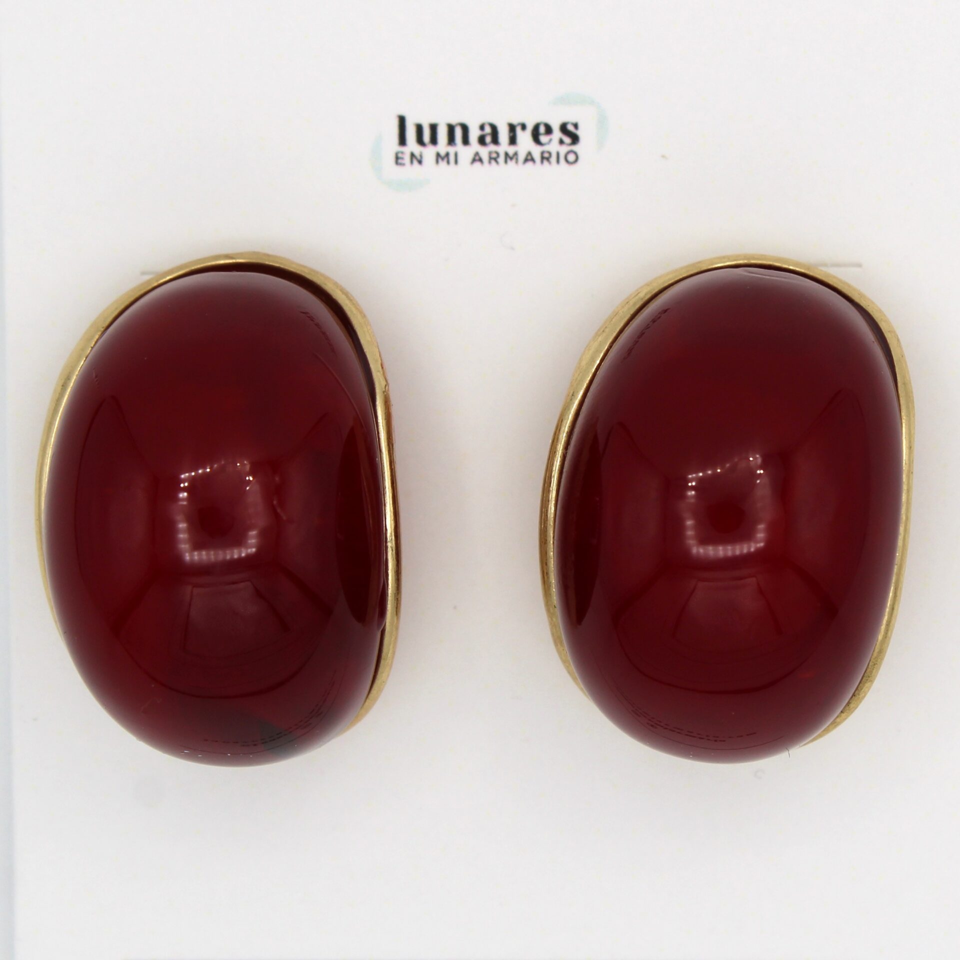 Pendientes nacarados en tonos granate y dorado. Forma de medio aro ancho.