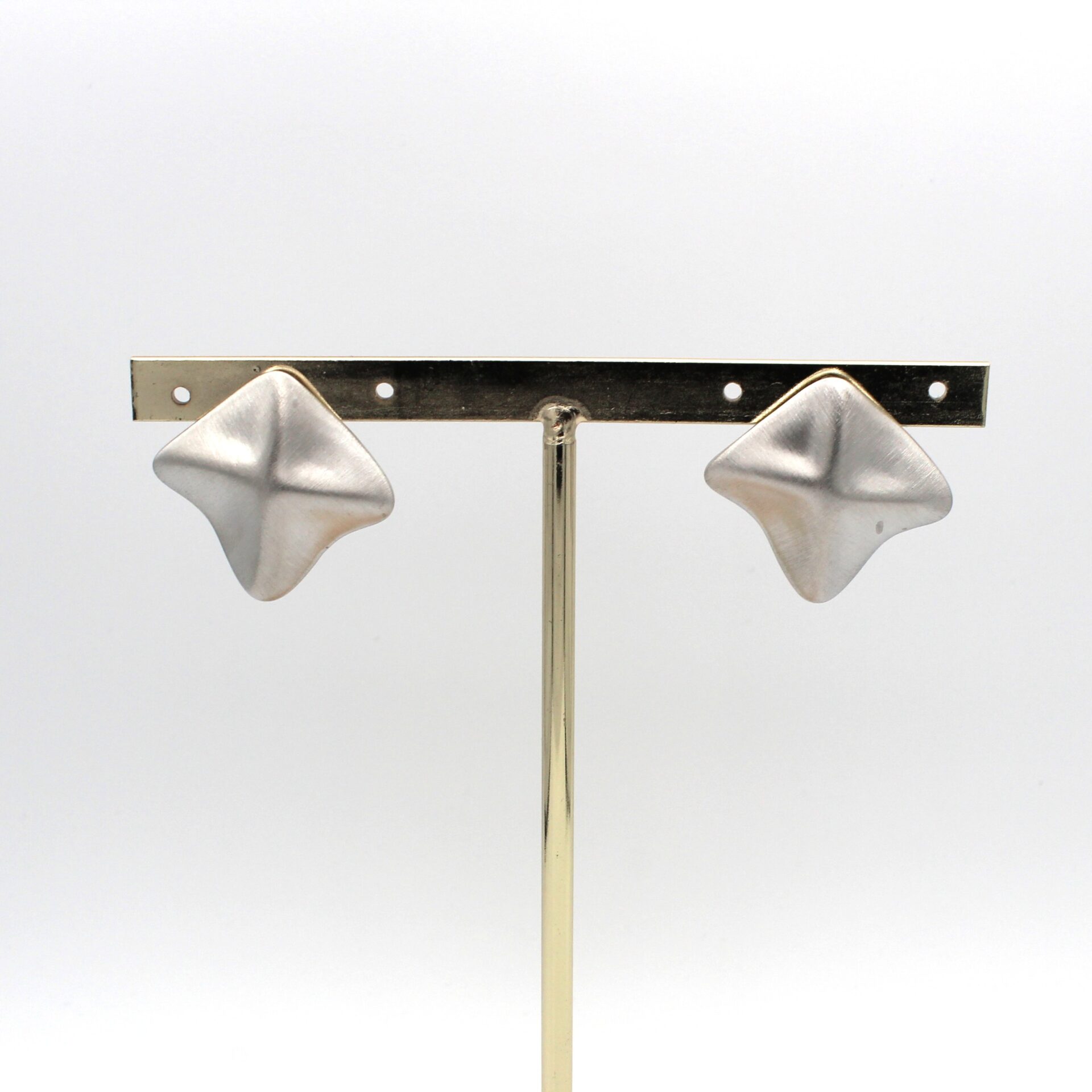 Pendientes en forma de rombo en tono plata desgastado. Cierre a presión.