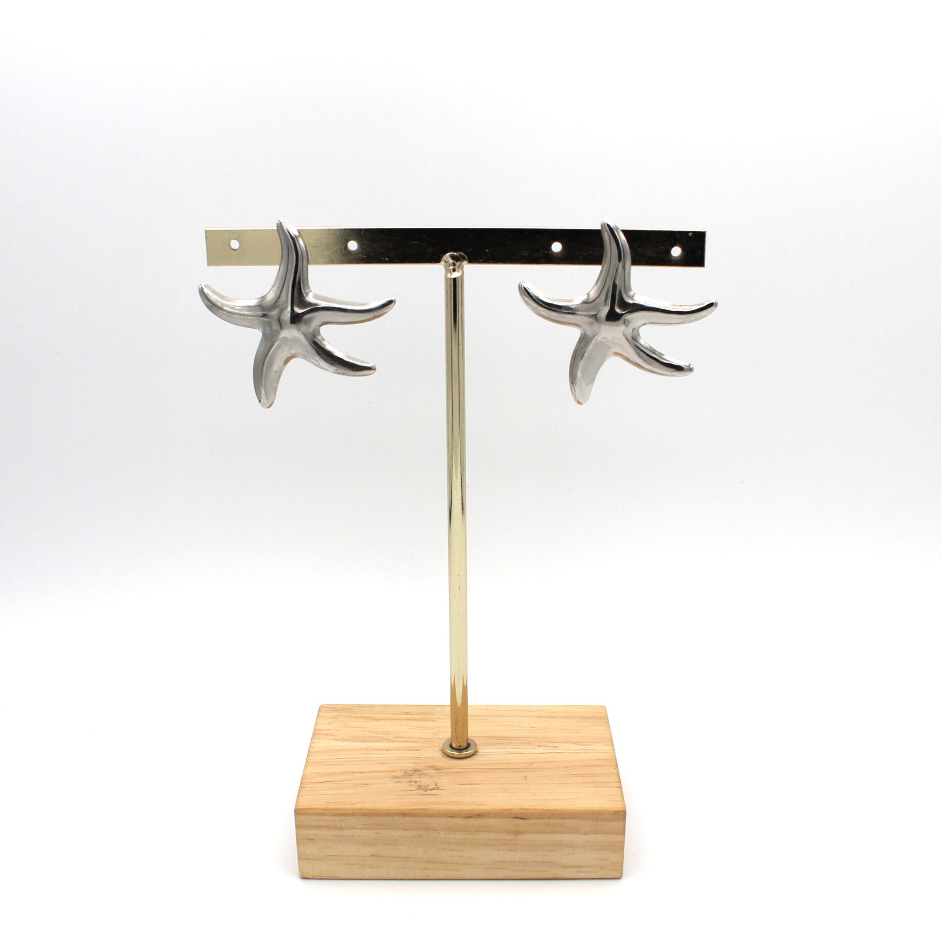 Pendientes en forma de estrella en tono plata. Cierre a presión.